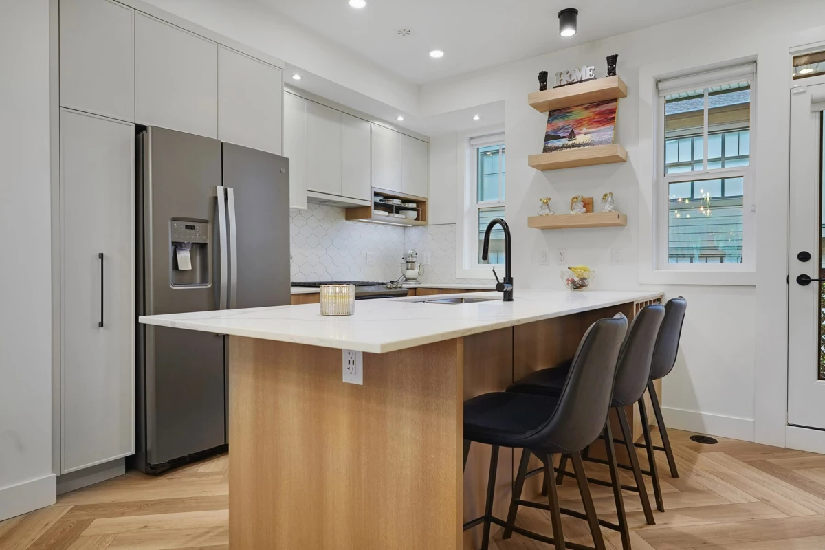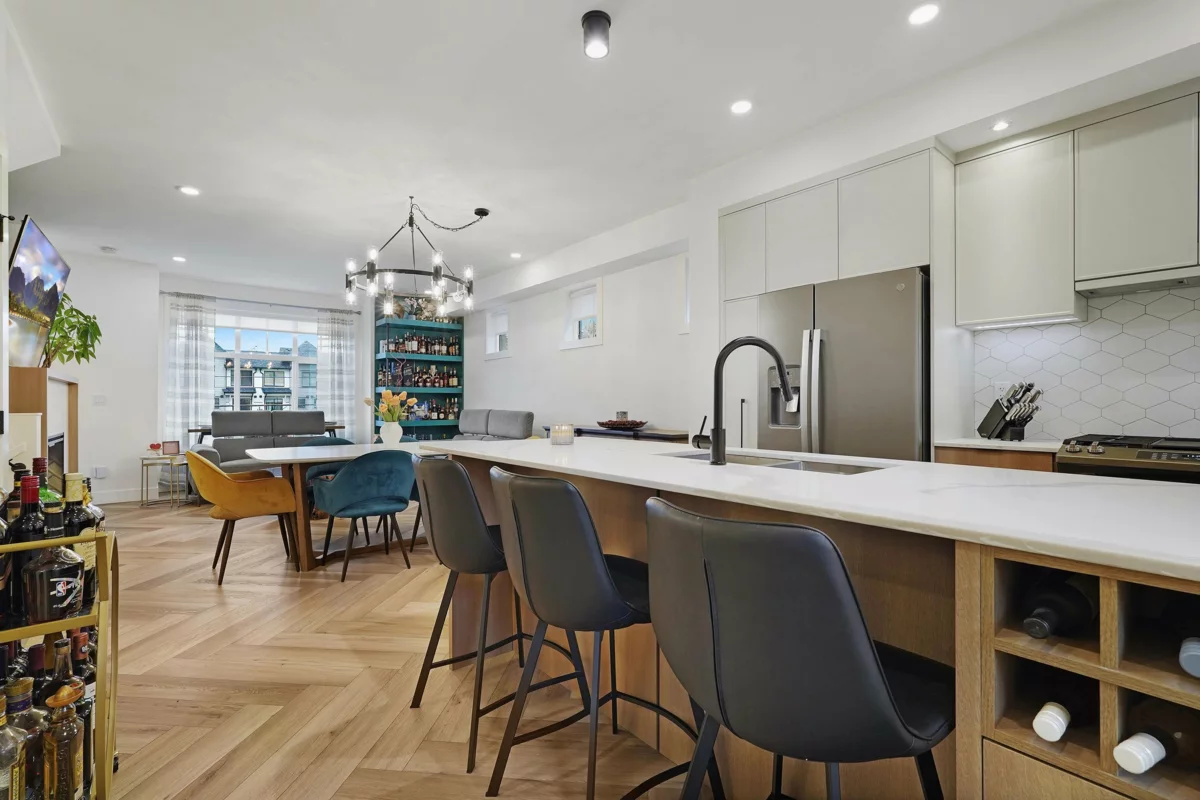 Welcome to THE LOOP in sought-after Grandview Heights, built in 2023 by Gramercy Developments. This 4 bed, 3 bath corner townhome offers a spacious, modern layout with over $50,000 in upgrades by the current owner. Features include tall ceilings, central A/C, herringbone flooring, tankless hot water, and a cozy fireplace with custom accent walls. The chef-inspired kitchen showcases an oversized quartz island, high-end stainless steel appliances, and a 5 burner gas stove. The side by side double garage includes epoxy flooring and great storage. Enjoy access to The Hideaway clubhouse, The Locker fitness centre, and the scenic Loop walking trail, all steps to schools, parks, shops, dining, and transit.