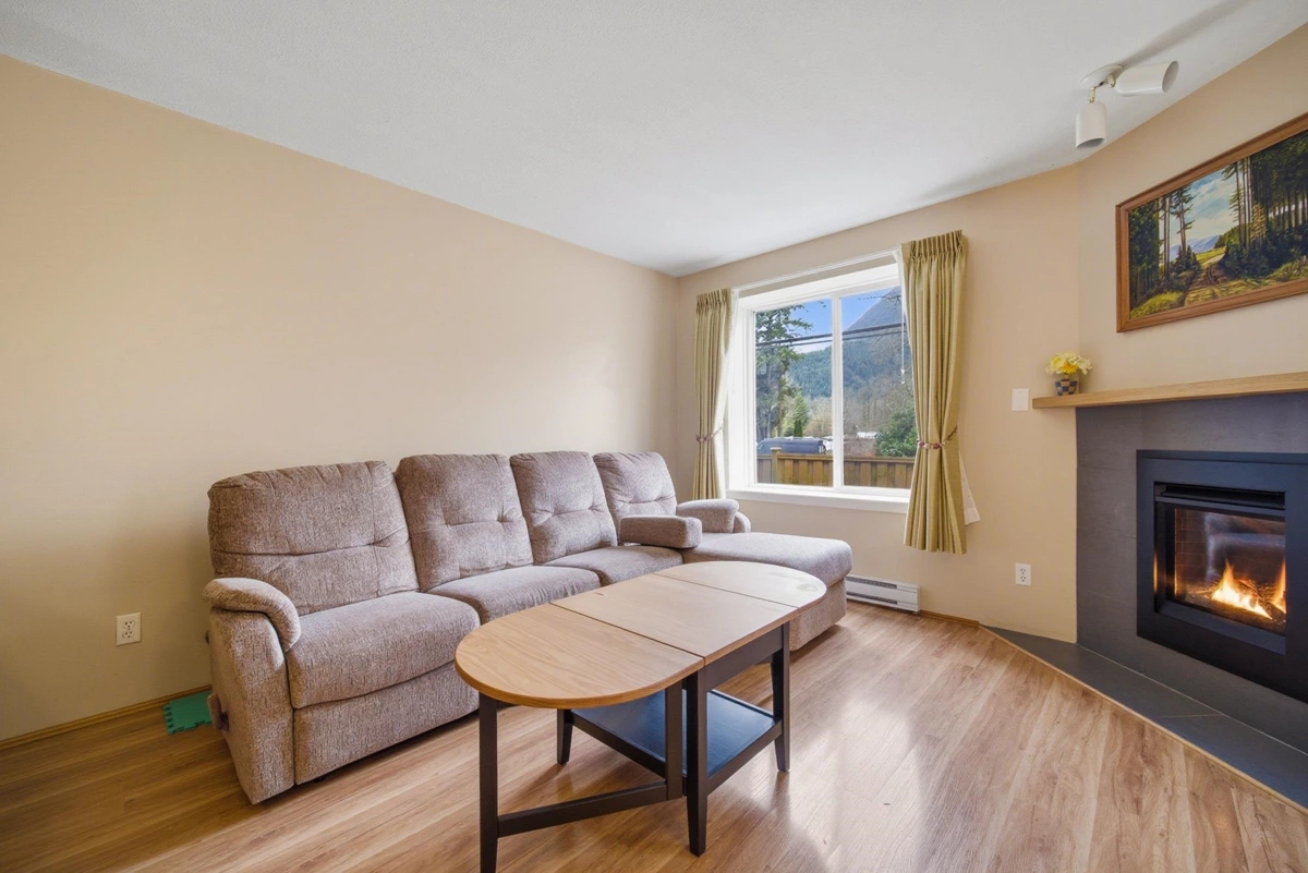 Welcome to Viking Ridge! This well-maintained 3 bed, 2 bath townhome is tucked into a quiet cul-de-sac location with no drive-by traffic. Featuring a functional 2-level layout with full-sized bedrooms and a fenced backyard facing the mountains, this well-kept family home is located right next to Mamquam Elementary. Updates include new kitchen countertops& sink, refreshed main bathroom, new powder room vanity sink, and an upgraded high-efficiency airtight gas fireplace. Garage parking + an extra assigned stall, and a crawl space provide excellent storage. Proactive strata with windows and patio doors updated, new front doors replaced in 2025, and the complex driveway newly paved in 2025. Move in as is or bring your renovation ideas. Close to shopping, dining, and river trails.OH Feb 8:1-4pm