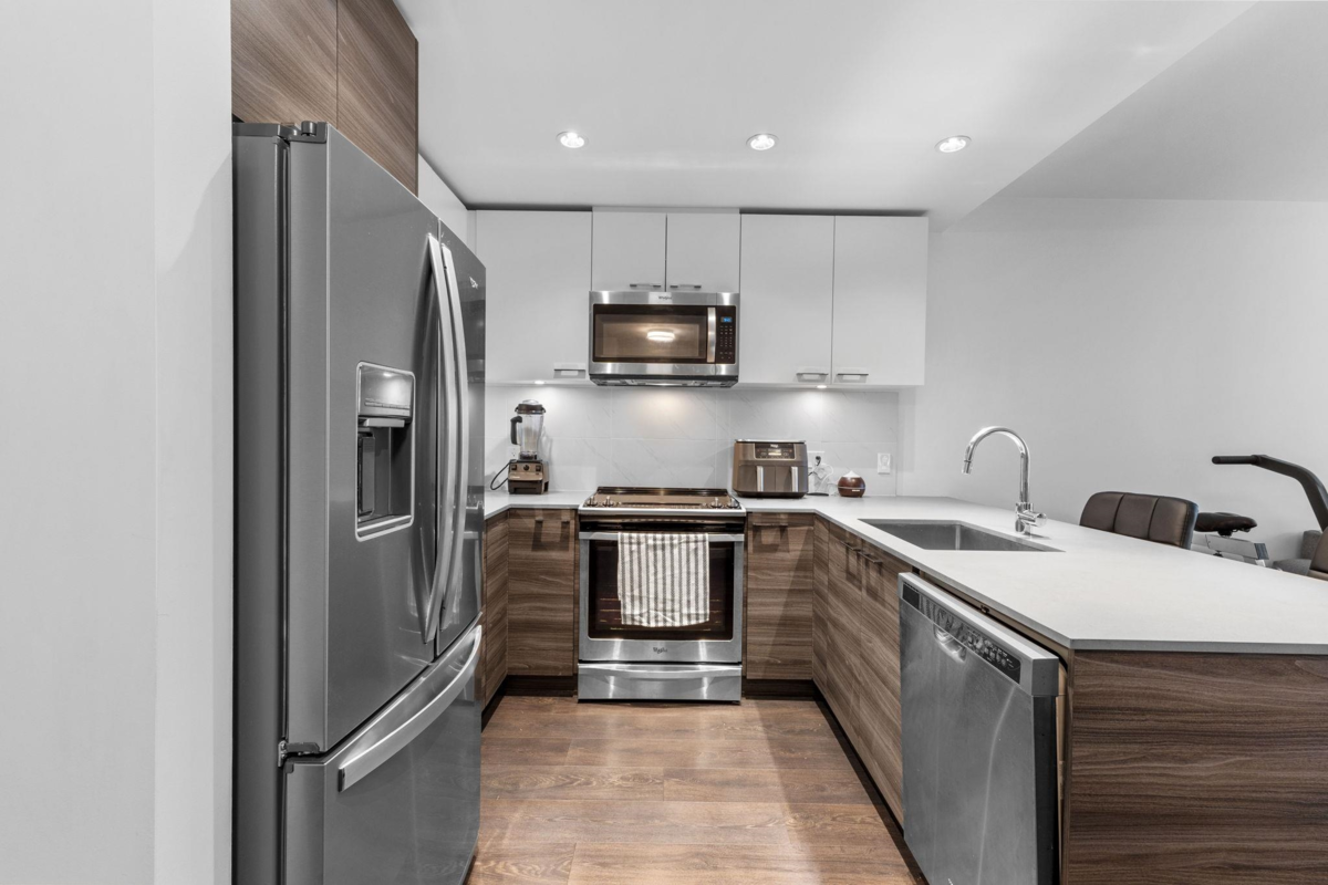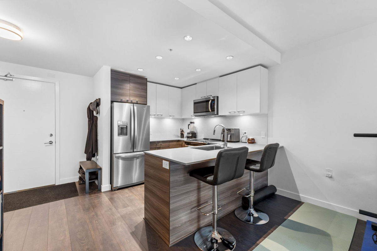 Welcome to Dwell HQ by Porte Homes! This spacious 1 bedroom and 1 bathroom ground floor unit offers 694 sqft of modern living space + BONUS 155 Sq Ft PATIO! Nestled within the serene interior of the complex, with direct access to exclusive amenities, including a gym, outdoor table tennis, and a stylish clubhouse. Located in the heart of Surrey, you'll be minutes from groceries, major highways, SkyTrain, and shopping malls, making everyday errands a breeze. Weather you're a professional or someone looking for a vibrant community, this home offers the lifestyle you've been dreaming of.
