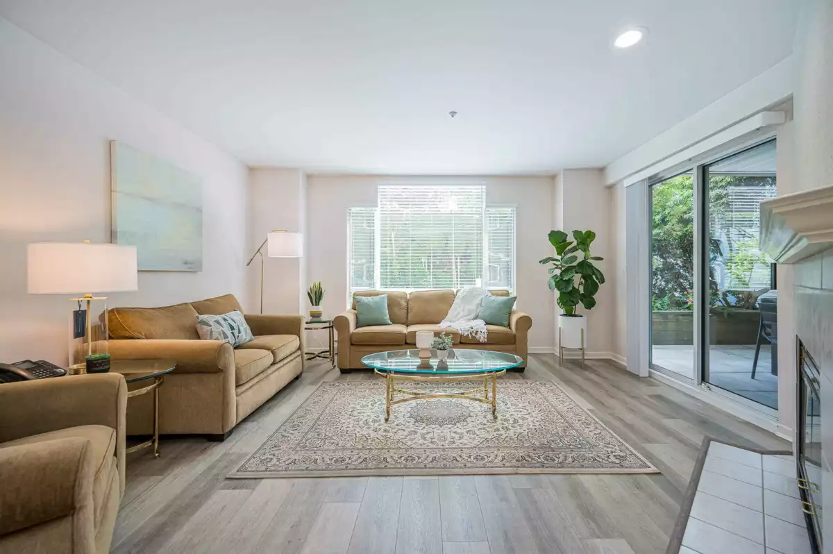 Welcome to this stunning 2 bed, 2 bath condo with 1126 sqft of living space, featuring a beautiful extra large private patio perfect for bbqing, entertaining and large furniture. You will be greeted by a spacious and open floor plan with an inviting atmosphere.The dining area is perfect for hosting dinner parties and leads to the kitchen which is equipped with new s/s appliances and ample storage, adjacent is more storage or an office. Located in a vibrant community, this condo is just minutes away from golfing, schools, rec center, public transit, West Coast Xpress, parks, shopping, and dining. It's also kid and pet-friendly. Make sure to notice the new flooring and 2" faux wood blinds. Don't miss out on this amazing opportunity to live in the heart of Pitt Meadows! Call today!