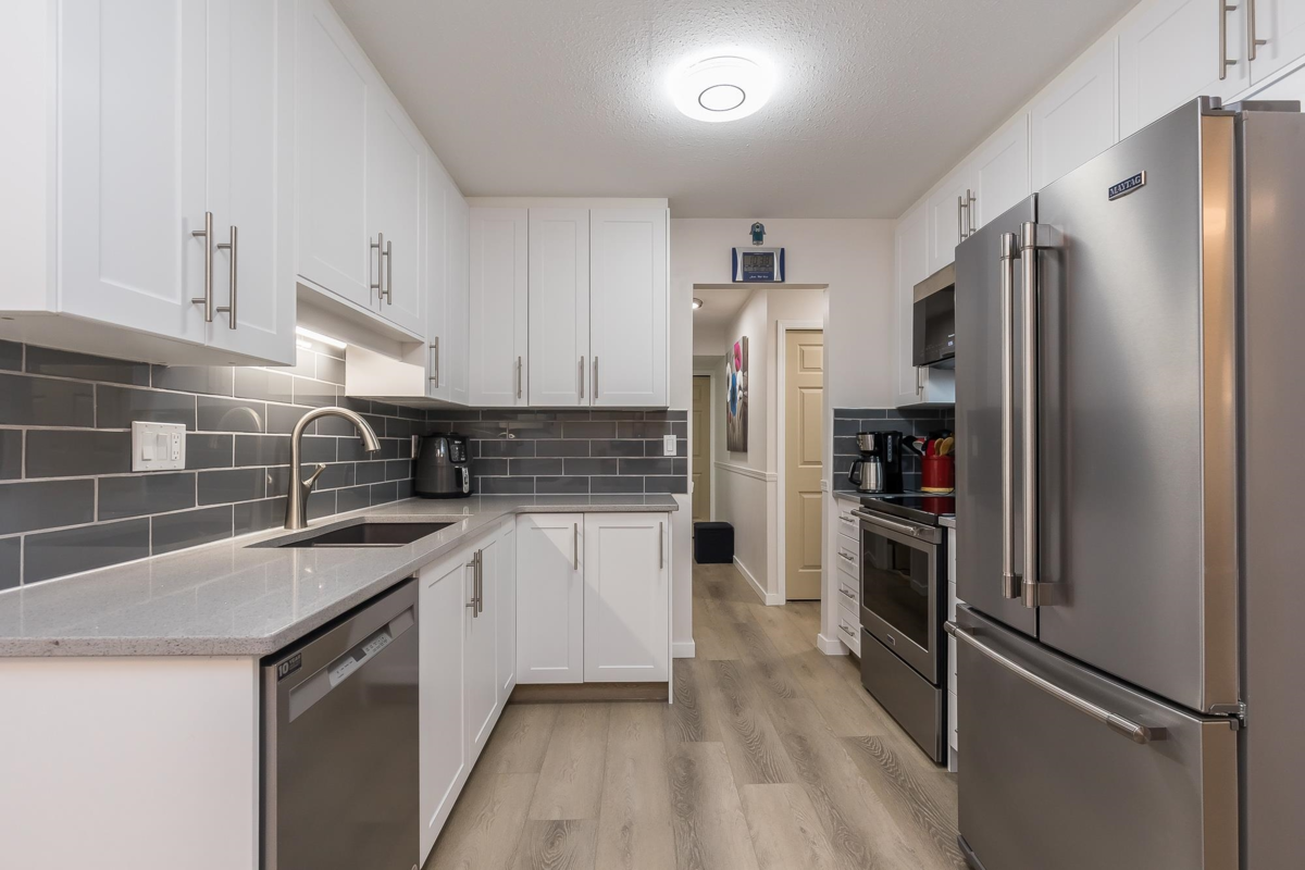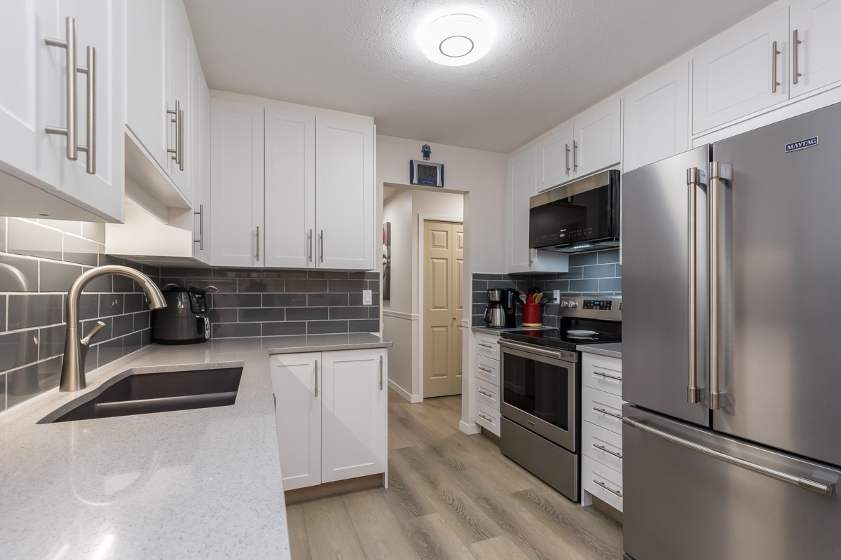 Gorgeous! 2 Bed & 2 Bath Completely Renovated End Unit Condo in 55+ Park Place. New Kitchen with White Soft Close Cabinetry, New Corian Counters, New Tile Back Splash, New Sink, New OTR Microwave and New SS Maytag Appliances. New High-End Laminate, New High-End Carpet in Bedrooms. Both Bathrooms are Updated. New Full Size, Side by Side LG Washer & Dryer. New Designer Paint on Walls, Ceilings, Doors & Trim. Resort Style Amenities include: Indoor Pool, Spa, Sauna, Guest Suite, Gym, Wood Working Shop & Huge Amenities Room. Excellent Central Location, Close to Superstore, West Oaks & Seven Oaks Malls, Restaurants, Mill Lake & More. This Unit is Ground Floor Entry, But The Balcony is Above Ground. Strata Fee Includes Heat & Hot Water. This is the one you want, This unit is a 10! Call Today!