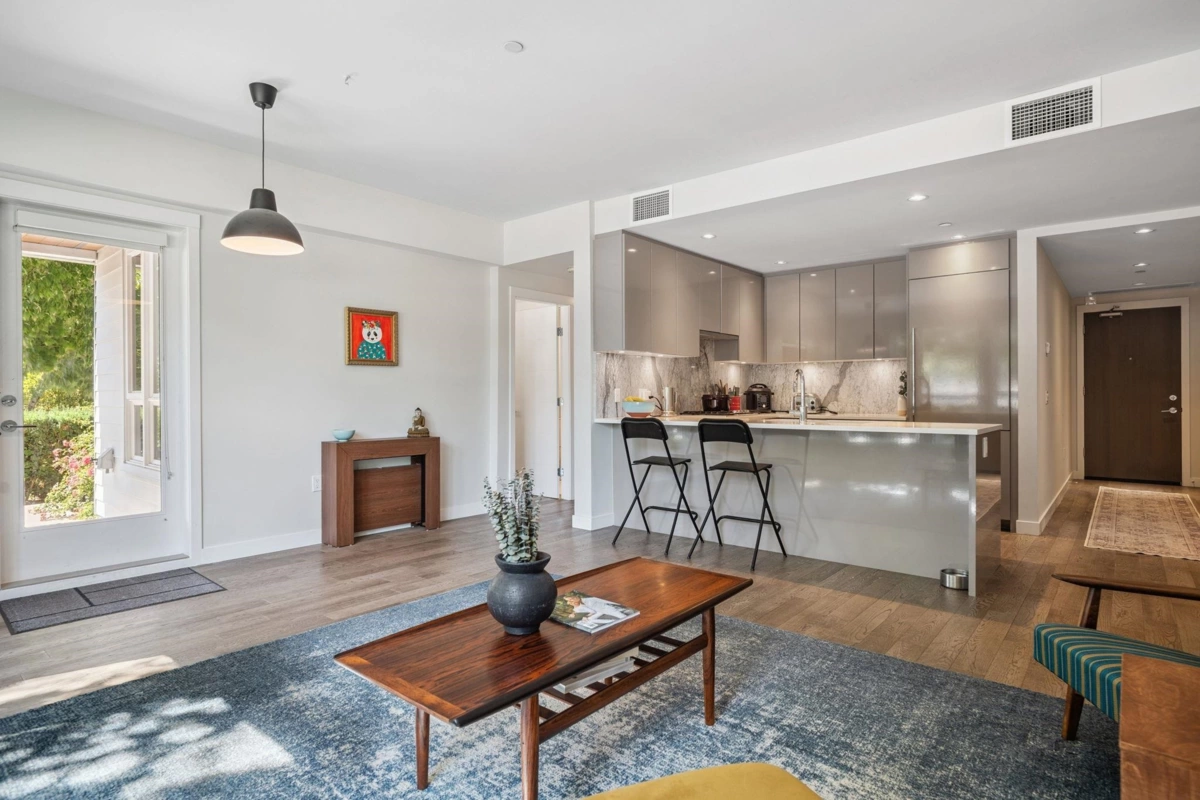 ELEGANCE & LUXURY in the heart of Cambie Corridor in a luxury boutique building, BENNINGTON HOUSE. Rare to come to market is this CORNER 2 bed + DEN + desk nook, 2 bath ground-level residence. This bright and spacious 934 sqft home features a chef-inspired kitchen w/ quartz countertops paired w/ Bianco pearl marble backsplash and premium Bosch appliances including an integrated fridge & gas cooktop. Enjoy the added comfort of AIR CONDITIONING, stunning spa-like baths as well as a private, garden level patio equipped with gas connection--perfect for entertaining outside. DEN is great storage or office space. Just one block from King Edward SkyTrain, with Queen Elizabeth Park, shops, and cafes nearby. EPIC LOCATION & PRICE for newer & modern. 1 parking, 1 storage. Welcome to the good life!