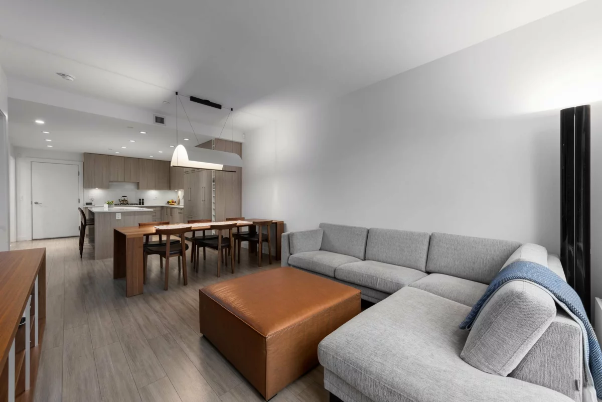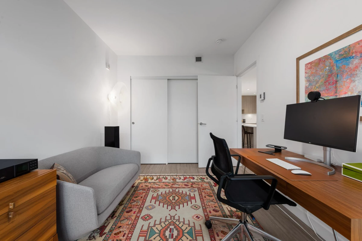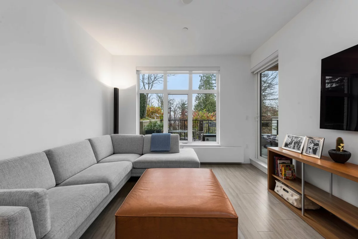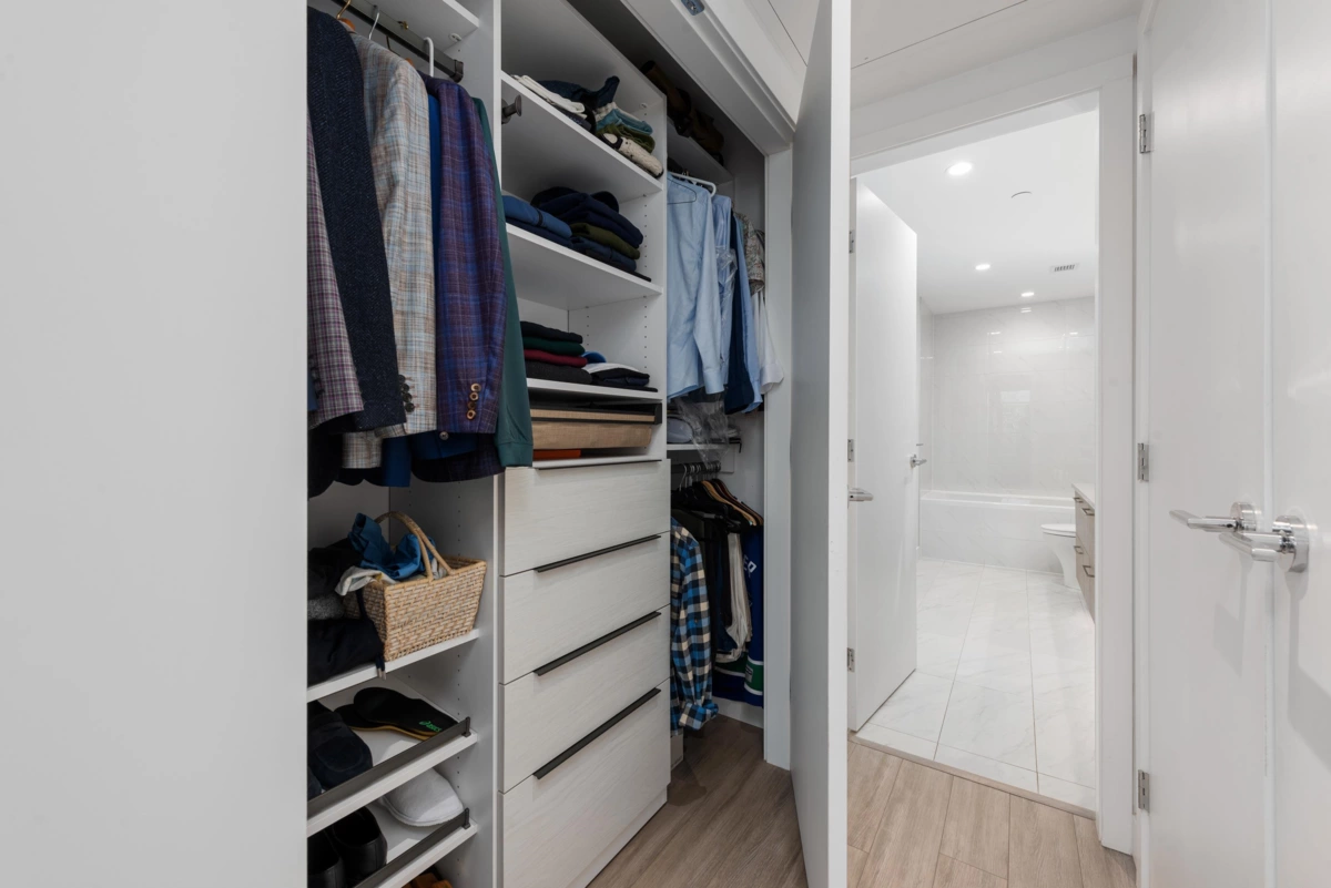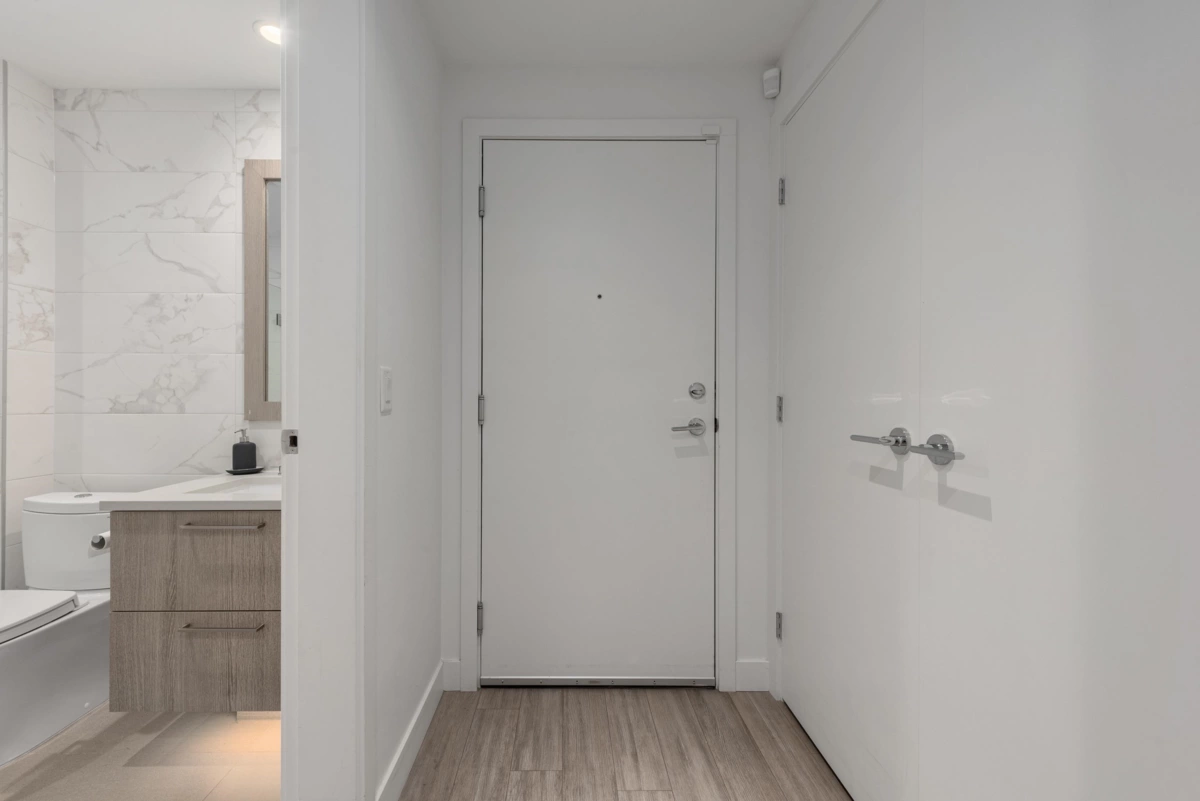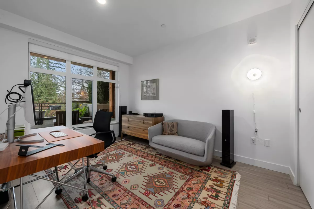 PARKFRONT PERFECTION AT GREEN ON QUEENSBURY– Luxurious 2-level, 3 bed, 3 full bath, 1,548 sq.ft. townhome with private front door opening directly onto Queensbury Park. Enjoy a sunny south-facing patio ideal for morning coffee or evening dining, plus true townhouse ease with direct access from the parkade and your two parking stalls into a practical mudroom—no elevators needed. Inside, an open, light-filled layout features overheight ceilings and a sleek modern kitchen with integrated Fisher & Paykel appliances, pantry, and wine storage. Spa-inspired bathrooms, large closets, and dual California Closets in the main bedroom add everyday comfort. Residents enjoy a fitness centre, guest suite, and social lounge with patio, just steps to the Spirit Trail and Lower Lonsdale.Two storage lockers