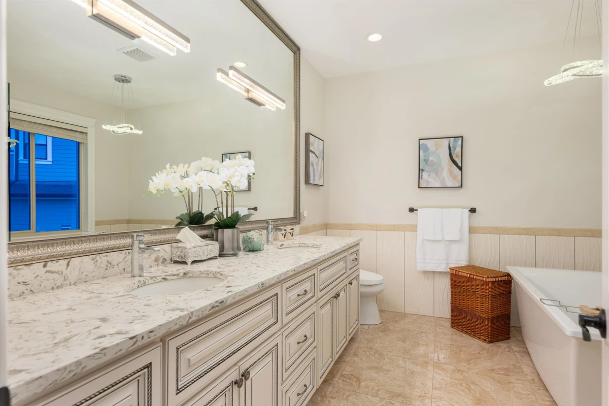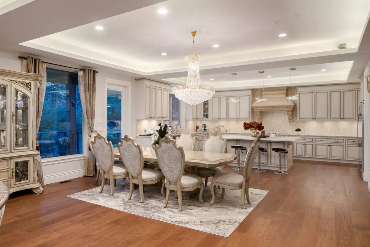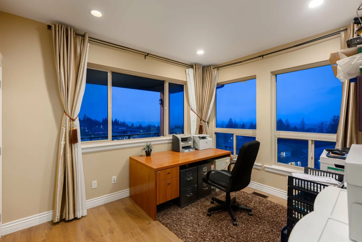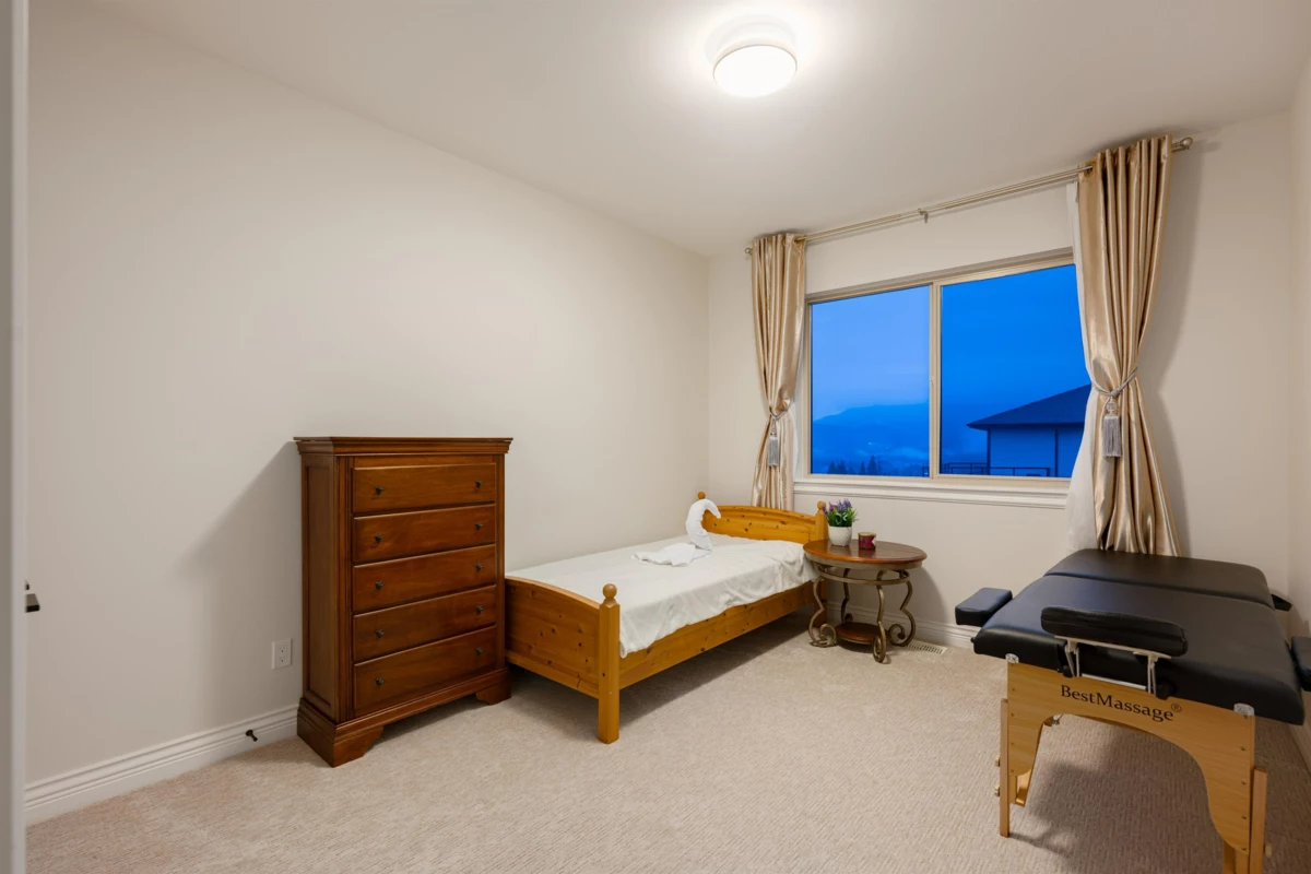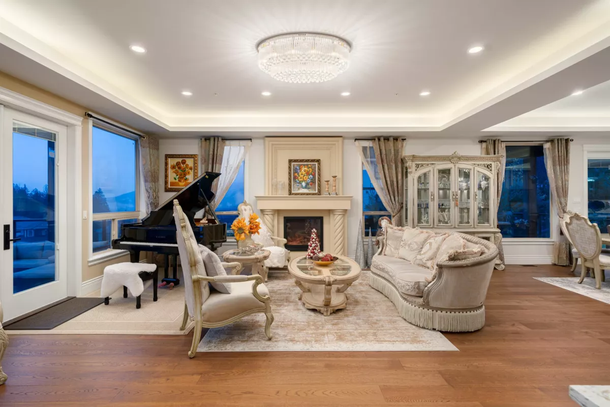 Prestigious Grant Hills Luxury Estate with stunning panoramic views of the Fraser Valley and Golden Ears Mountains. This 5,814 sq. ft. custom home on a 17,119 sq. ft. corner lot features A/C, radiant heat, central vacuum, and a triple garage with extra parking. The open-concept main level offers a bright living room with two wraparound sundecks, an antique-style kitchen with top-quality appliances, a wok kitchen, a primary bedroom with full bathroom, and a guest room/office. Upstairs includes a family room with bar and sundeck, a second primary with spa ensuite and balcony, an office, and three more bedrooms. The basement has a theatre/extra room and a one-bedroom legal suite. Enjoy multiple decks, a playground, rose garden, flower beds, and gazebo. Short drive to Meadowridge School.