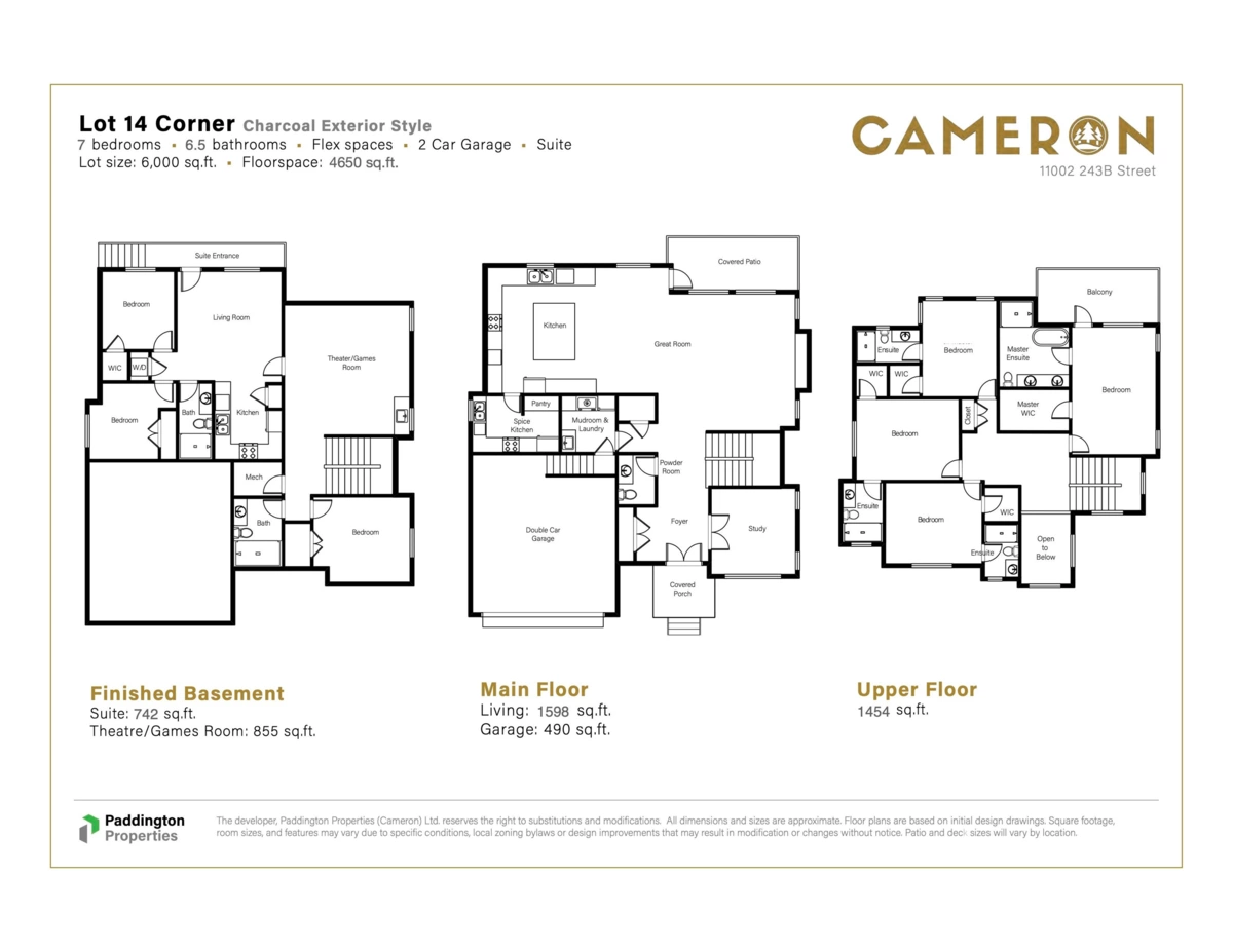 Discover modern luxury at Cameron by Paddington Properties. This brand new dream home is situated on a prized 6000 sq.ft. corner lot. Experience soaring 10 ft ceilings on the main floor, oversized windows and a functional floor plan both indoors & outdoors. Enter through the grand foyer to the expansive living areas, executive office, gourmet kitchen, prep kitchen, and a sensational great room with direct access to the expansive covered deck. The upper level features a primary suite with a private balcony, walk-in closet, & a 5 piece spa ensuite and 3 add'l bedrooms all with their own walk-in closets and full ensuite baths. The lower level offers a guest room with an adjacent full bath, a large flexible recreation room, and a two bedroom legal suite w/separate entry. (photos of show home)