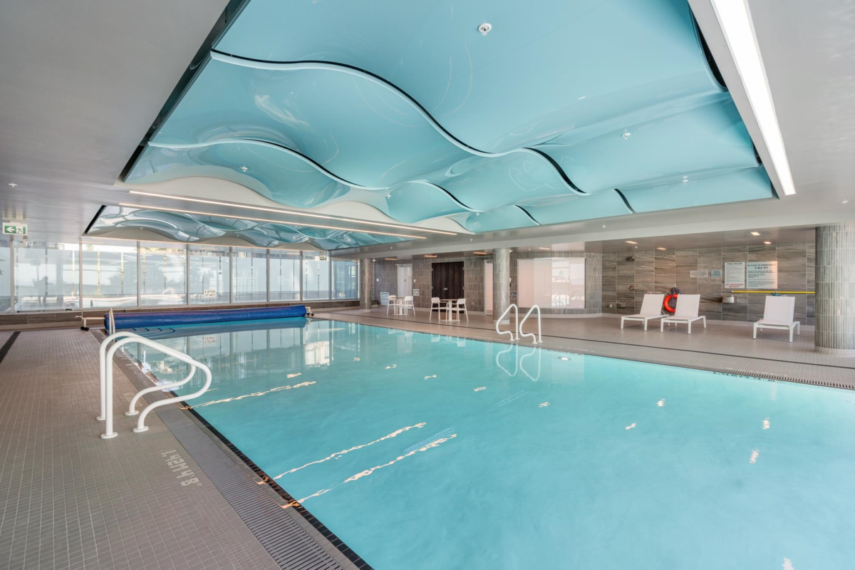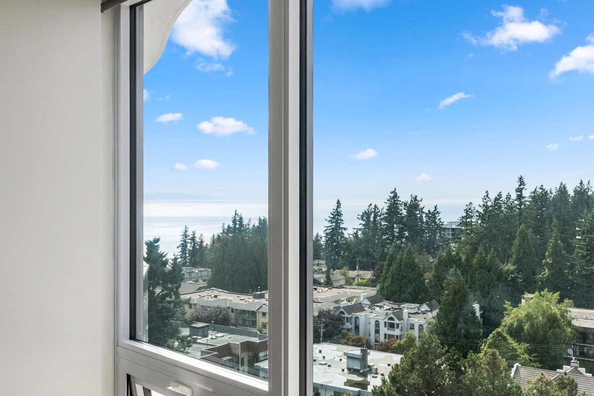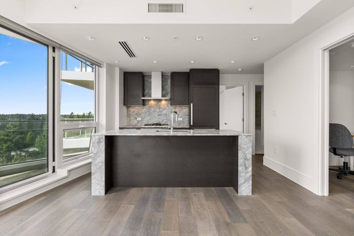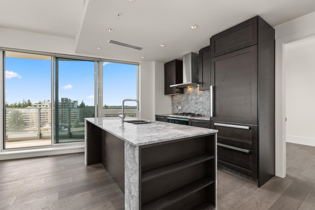 FOSTER MARTIN! Stunning ocean view from this one-bed plus den condo. Enjoy 831 sq ft of gracious living with spectacular, breathtaking views from the suite or the large 143 sq ft balcony. Lovely gourmet kitchen has an island & integrated appliances that will inspire the inner chef in you. Primary bedroom, full-size washer/dryer & den/flex space offers multiple uses. Gorgeous, spacious bathroom with tub & fully tiled separate shower. Live in the lap of luxury, close to everything. This development has amenities galore - full-time concierge, fitness center, recreation center, indoor/outdoor pool & hot tub. Nothing to do but move in!