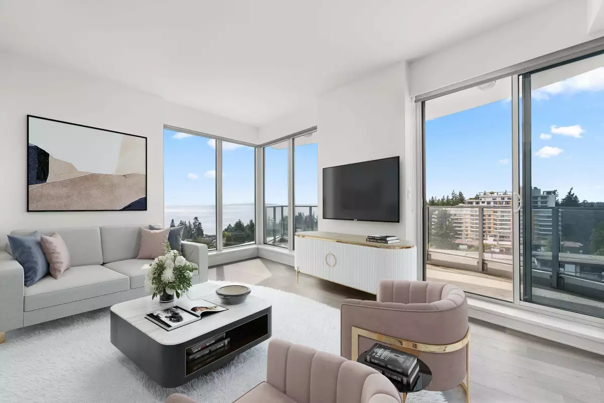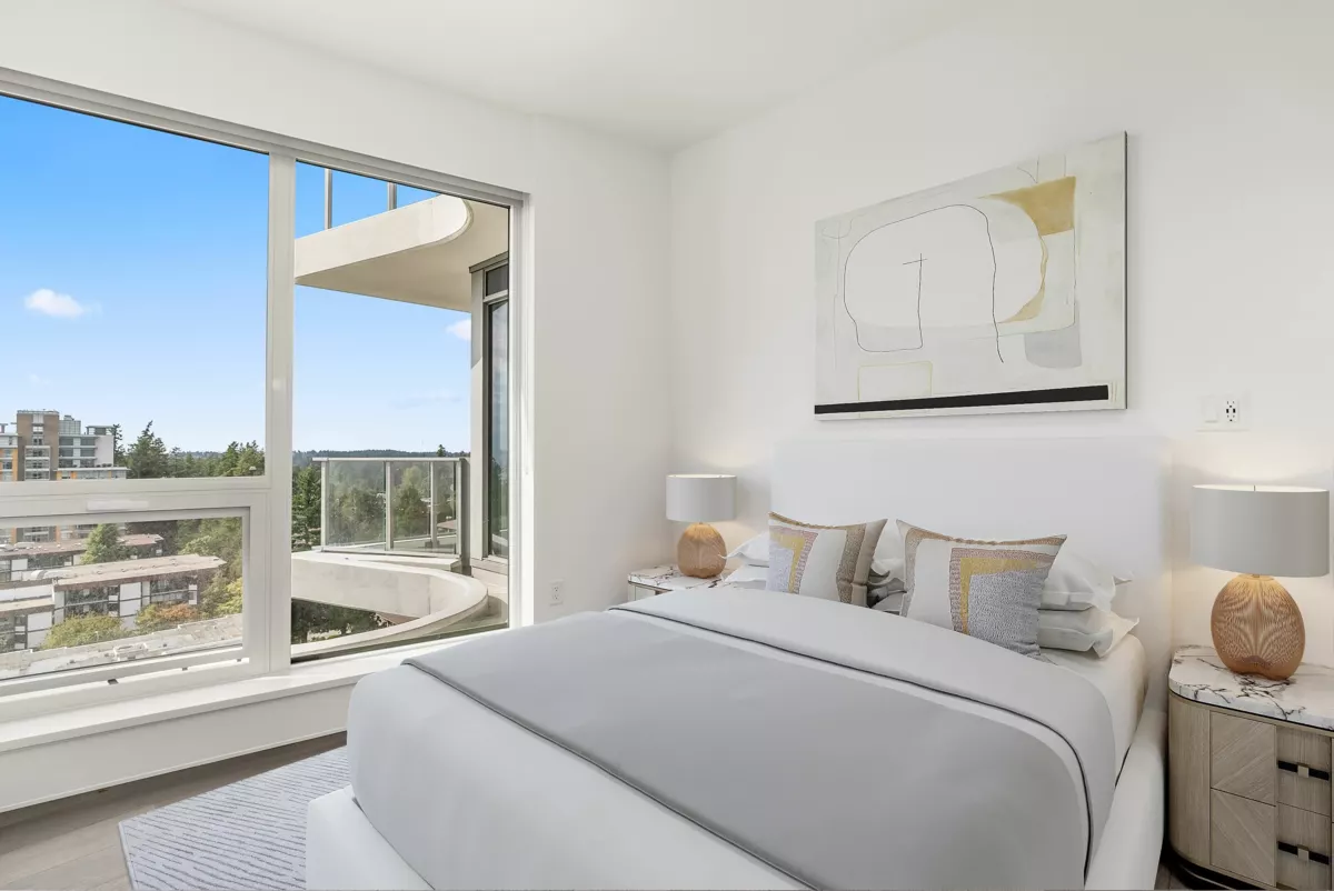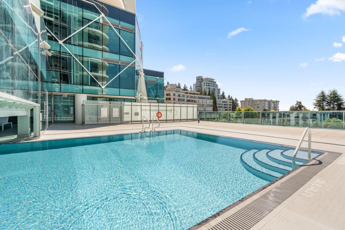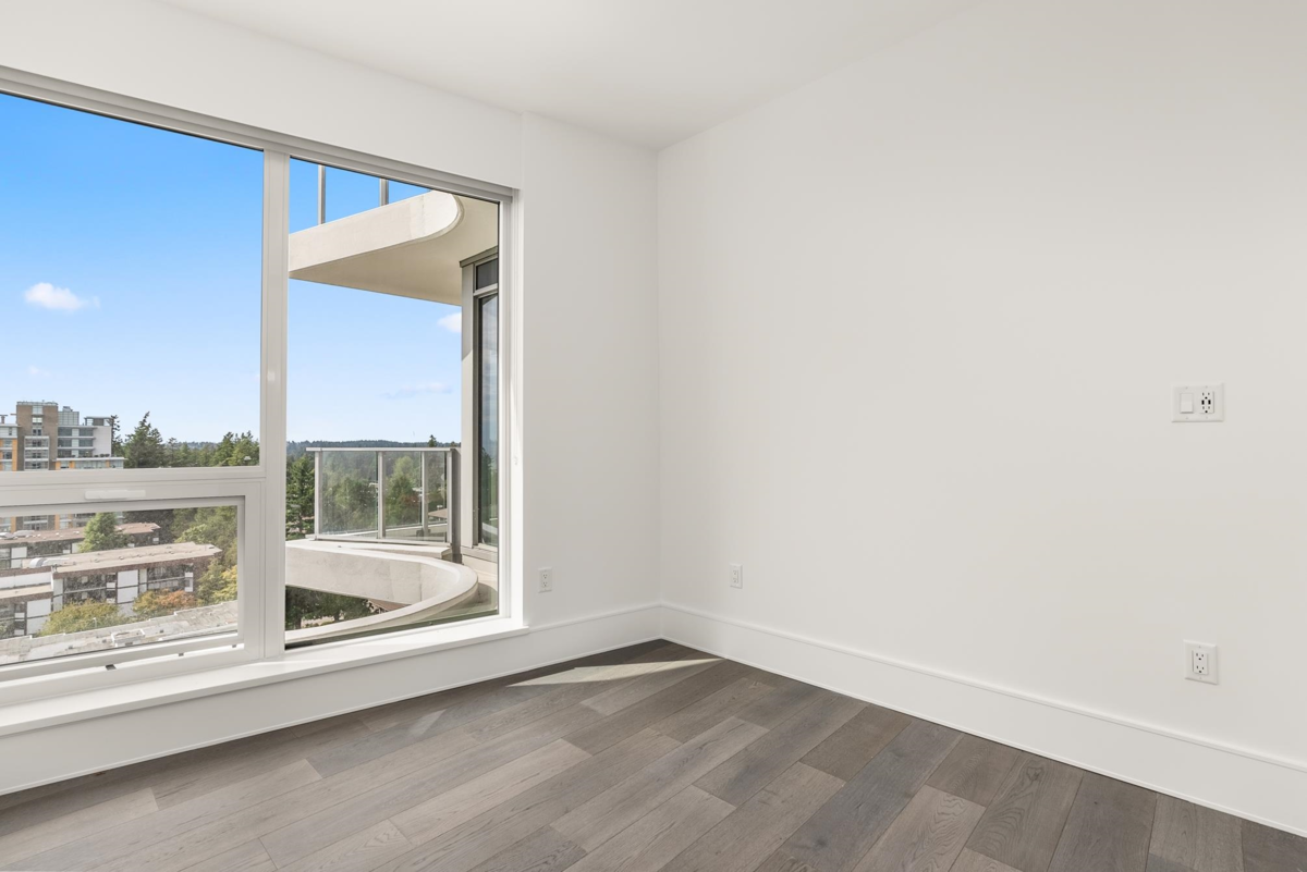FOSTER MARTIN! Stunning ocean view from this one-bed plus den condo. Enjoy 831 sq ft of gracious living with spectacular, breathtaking views from the suite or the large 143 sq ft balcony. Lovely gourmet kitchen has an island & integrated appliances that will inspire the inner chef in you. Primary bedroom, full-size washer/dryer & den/flex space offers multiple uses. Gorgeous, spacious bathroom with tub & fully tiled separate shower. Live in the lap of luxury, close to everything. This development has amenities galore - full-time concierge, fitness center, recreation center, indoor/outdoor pool & hot tub. Nothing to do but move in!