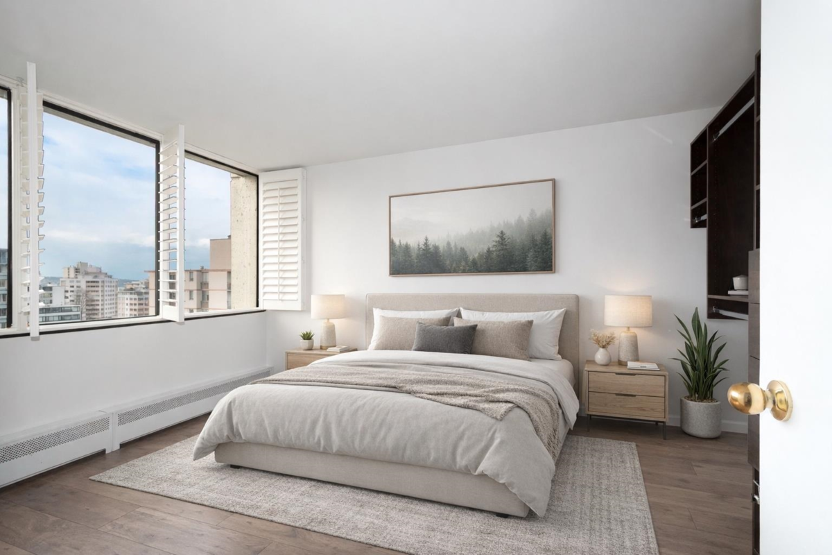 A bright, thoughtfully refreshed 2 bedroom corner residence in the heart of the West End, filled with natural light and open city outlooks. Large windows create an airy, inviting atmosphere, while the efficient layout offers generous living and dining spaces with no wasted square footage. A rare enclosed balcony provides valuable flex space—ideal for a home office, reading nook, or year-round retreat. Freshly painted and move-in ready. Proactive, well-managed strata with heat included, plus amenities including an outdoor pool and sauna. Just steps to Denman Street, Stanley Park, the seawall, beaches, shops, cafés, and transit.