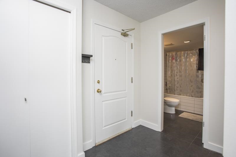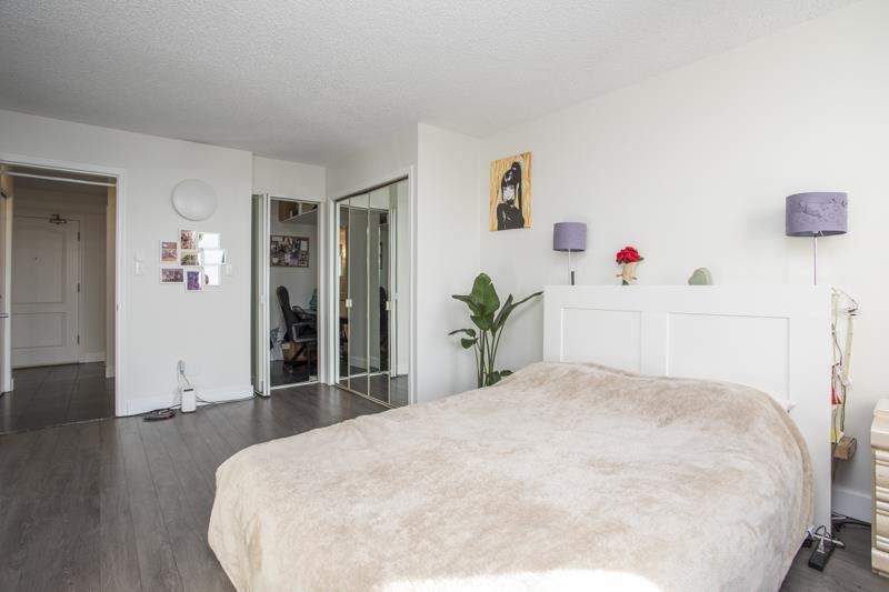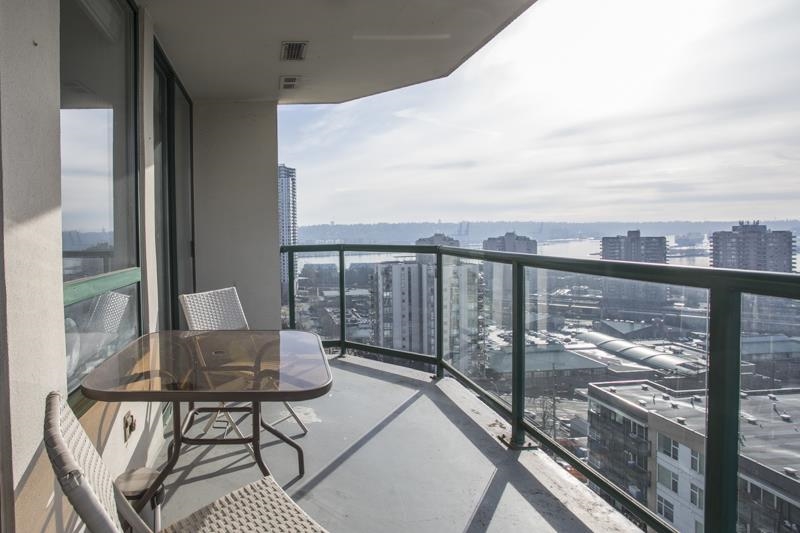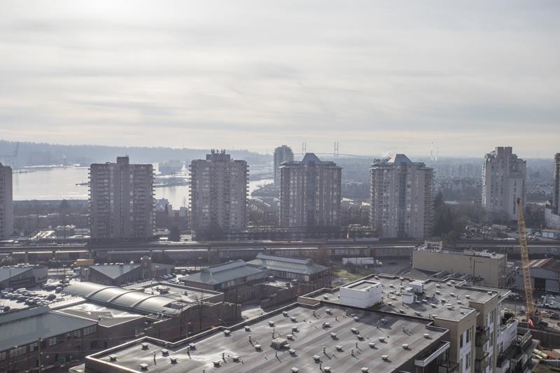 Expansive and private SW view of the Fraser River from every room of this 988 square foot home. Oversized living area offers plenty of flexibility for work from home space, hobbies, and hosting friends and family. Updated flooring throughout, updated appliances, countertops and a fully renovated bathroom. Concrete construction and solid concrete exterior walls bring longevity and peace of mind to go along with the upgraded lobby, elevator, plumbing, and more. Excellent strata, well-run building. Great community and neighbours in a quiet area to call your own, and just a short walk to connect to all the Downtown New West amenities.