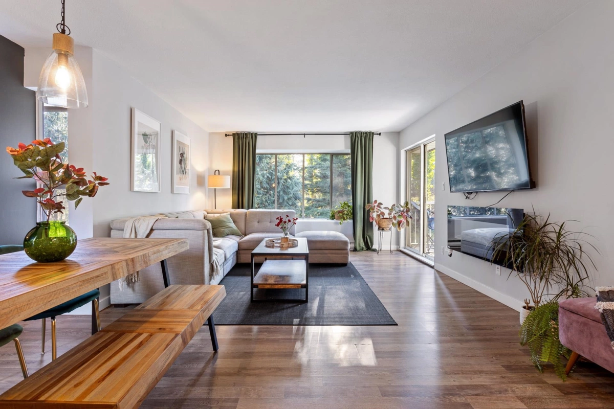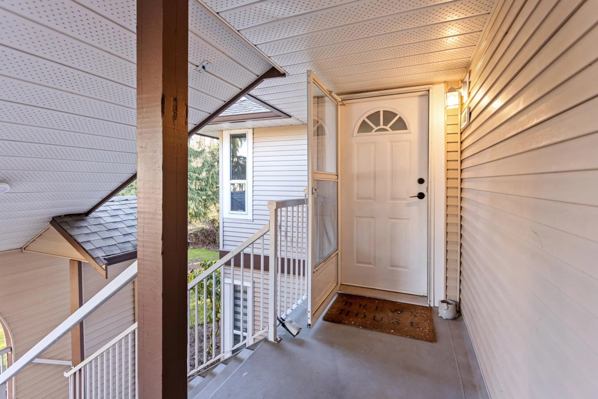 WHY RENT WE YOU CAN OWN, First time buyer or downsizer come see it. This affordable top floor corner townhouse has been renovated and ready for you to move in! A spacious 2-bedroom unit that boasts over 980 square feet of living space! You will love the tastefully renovated kitchen with a walk-in pantry/laundry room with newer stackable washer/dryer. Lounge in your huge living room overlooking the peaceful green space. Good size primary bedroom with a walk-through closet and cheater ensuite to the renovated 4-piece bathroom! Painted and newer flooring throughout. Relax on the private deck surrounded by nature and enjoy a BBQ with family or friends. Private, renovated, centrally located, this place has it all! Close to HWY 1, transit, UFV, shopping, restaurants and schools. Don’t miss out!