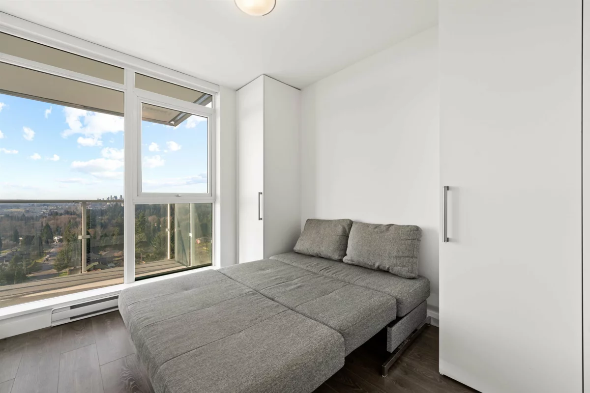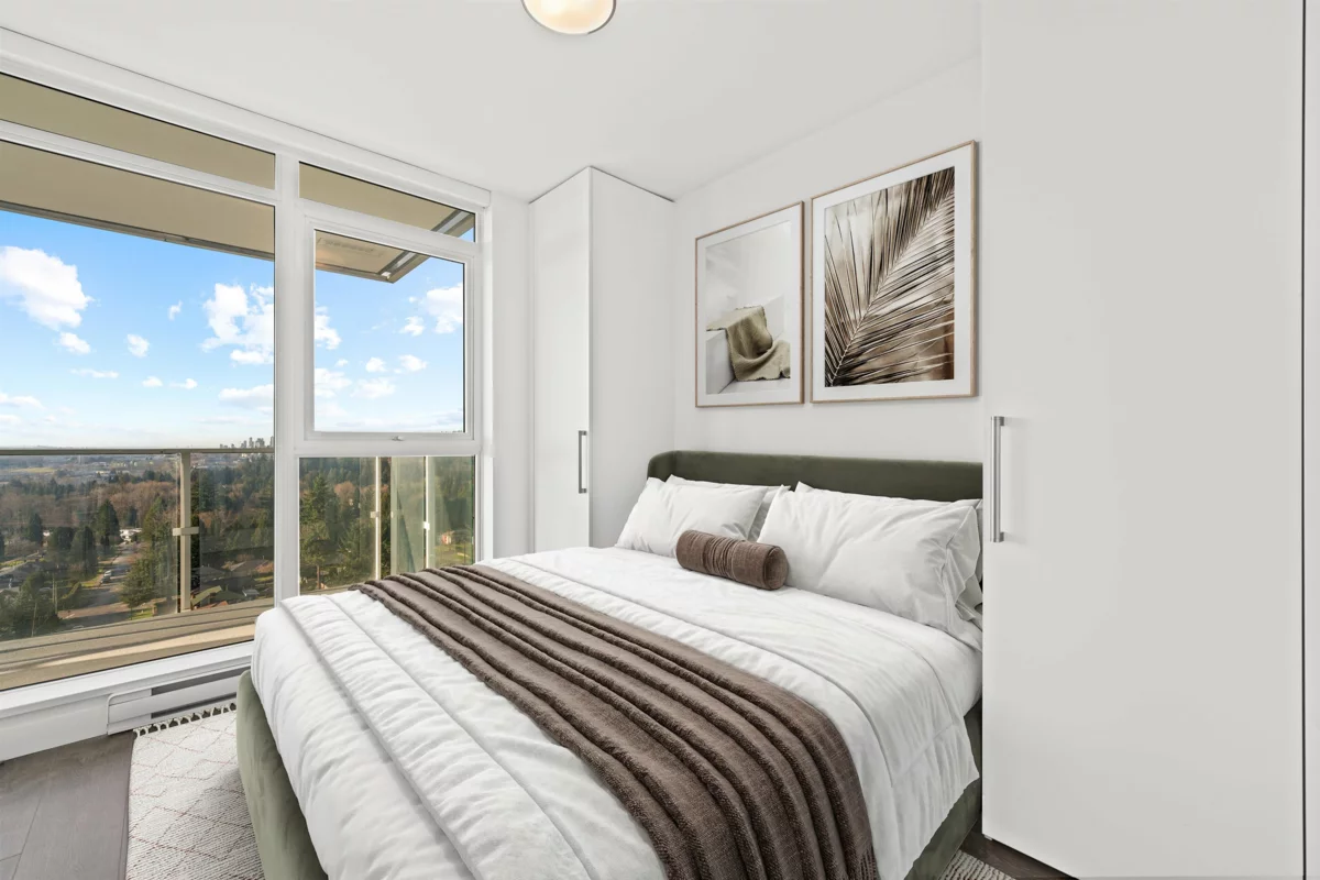 Sunset views, city convenience & smart design come together in this beautifully located Burquitlam home. Perfectly positioned between two SkyTrain stations with quick driving access to HWY 1 & Lougheed HWY, commuting is effortless. Everyday essentials like Walmart, Safeway, cafés, restaurants, Cottonwood Park & Lougheed Mall are nearby, creating a walkable, amenity-rich lifestyle. The home opens to stunning panoramic views of Burnaby Mountain, Burnaby Lake & city skylines toward Metrotown & Brentwood, all framed by a beautiful west-facing exposure with unforgettable sunsets. The functional layout features BOSAspace integrated furniture, a bed that converts into a guest bed & an extendable dining table seating over 6. 1 parking & oversized locker.