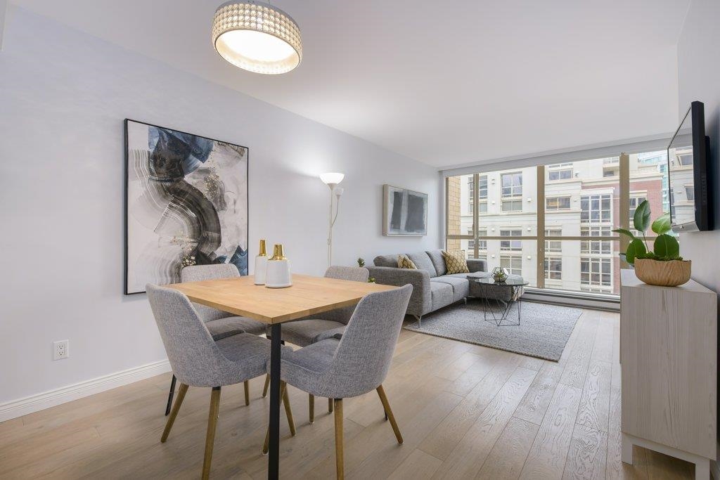 Excellent value with this fully renovated 2 bed 2 bath + den MOVE IN READY home. Gorgeous light and downtown views, you're steps to everything Vancouver/Yaletown has to offer. Large primary bedroom with ensuite bath. Open concept kitchen with plenty of room for a dining room. Awesome layout with room for a home office plus a functional second bedroom to grow into. Excellent building with luxury amenities such as a gym, sauna, hot tub, party room and shared outdoor patio. Also included is secured parking and storage. Not to be missed, this is a stellar opportunity.