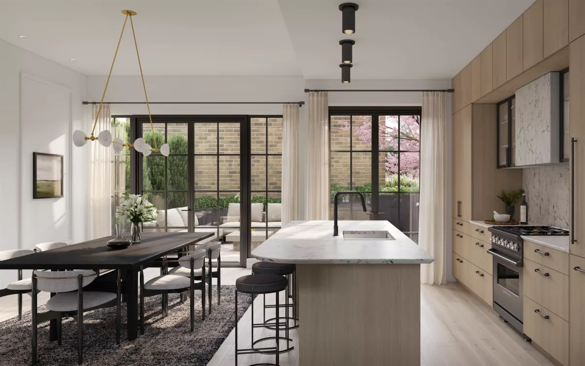 King & Columbia- A boutique collection of 1,3, and 4 bedroom modern brownstone homes. Nestled in Rylie Park's charm, with timeless architecture and thoughtful design creating an indoor and outdoor living experience. This beautiful corner unit allows lots of natural light throughout the townhome. PRIVATE PARKING GARAGE- with direct access to the suite, and an extra 100 sq ft of storage.
