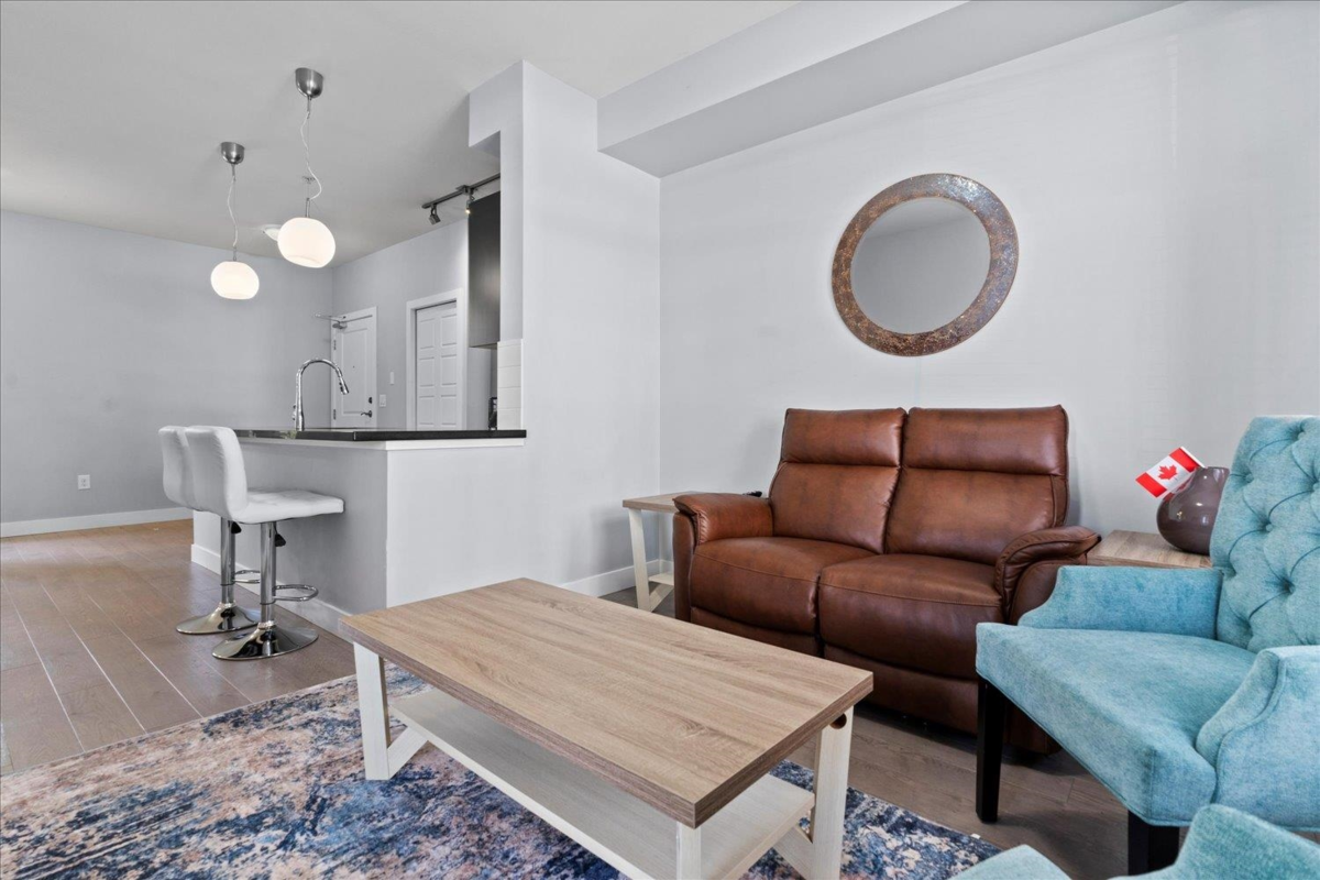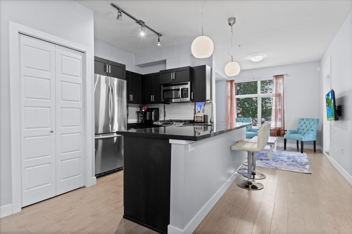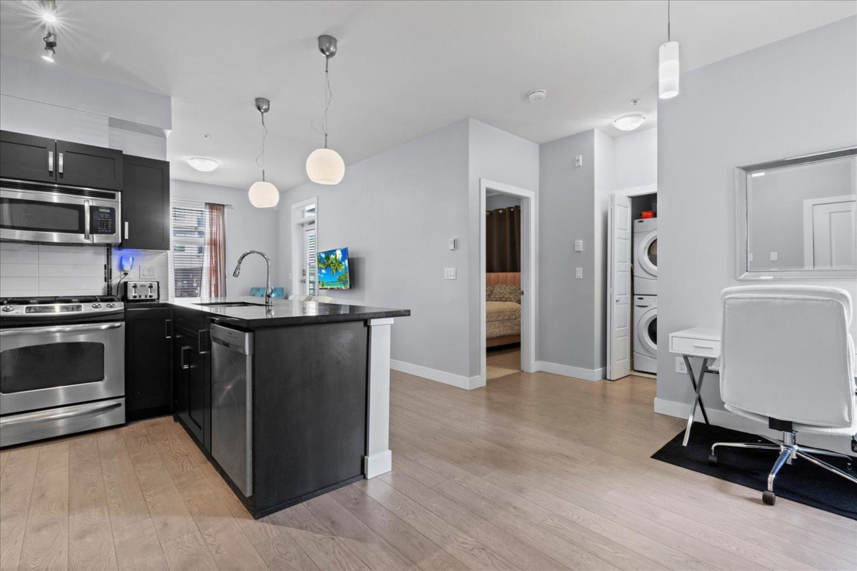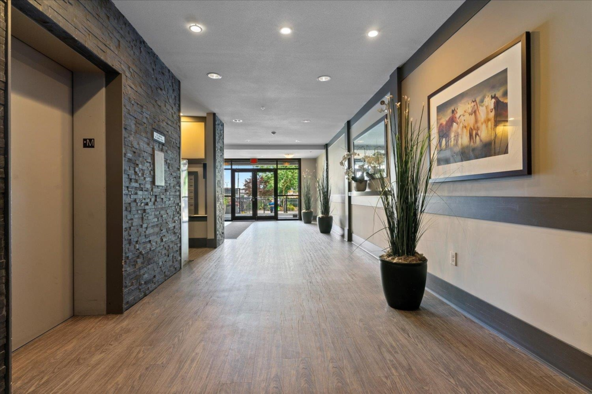 Ground-Floor Corner Unit in the Heart of Langley City! Welcome to Varsity—a bright, modern 1 bed + 1 bath condo with tall windows, open-concept layout, and an elevated ground-level patio for easy indoor-outdoor living. Enjoy a stylish kitchen with stainless steel appliances, granite countertops, and soft-close cabinetry. This secure and pet-friendly building , 2 pets no size or breed restrictions, includes 1 underground parking stall and 1 storage locker. Walk to Willowbrook Mall, shops, restaurants, parks, and schools. Future SkyTrain station just minutes away makes this a smart investment! Experience comfort, convenience, and lifestyle in one of Langley’s most walkable locations.