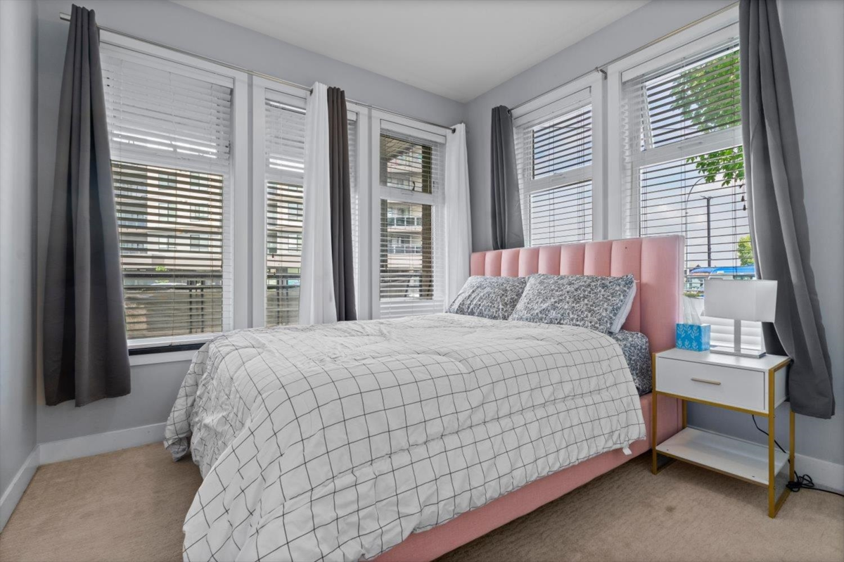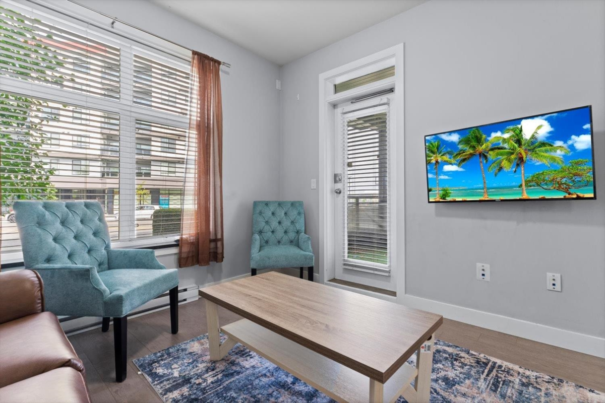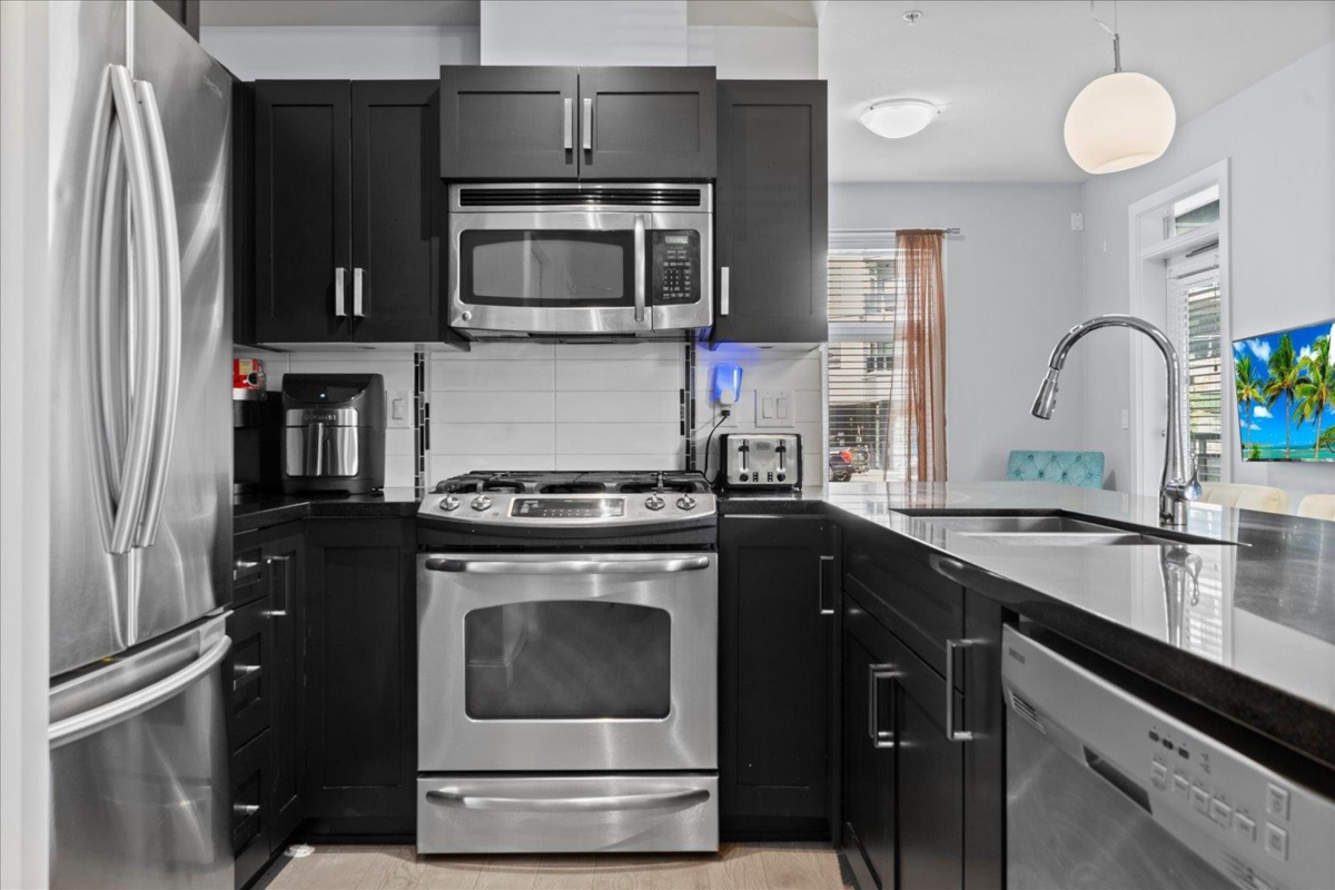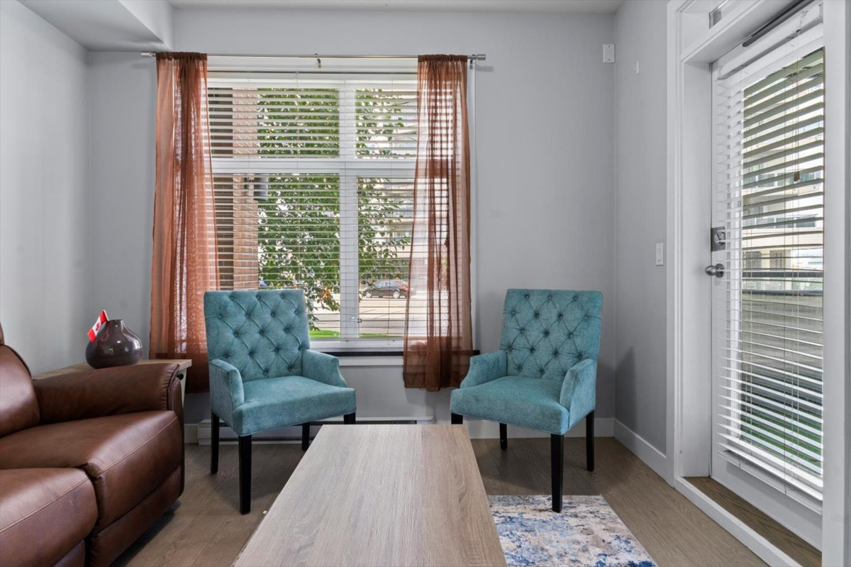 Ground-Floor Corner Unit in the Heart of Langley City! Welcome to Varsity—a bright, modern 1 bed + 1 bath condo with tall windows, open-concept layout, and an elevated ground-level patio for easy indoor-outdoor living. Enjoy a stylish kitchen with stainless steel appliances, granite countertops, and soft-close cabinetry. This secure and pet-friendly building , 2 pets no size or breed restrictions, includes 1 underground parking stall and 1 storage locker. Walk to Willowbrook Mall, shops, restaurants, parks, and schools. Future SkyTrain station just minutes away makes this a smart investment! Experience comfort, convenience, and lifestyle in one of Langley’s most walkable locations.