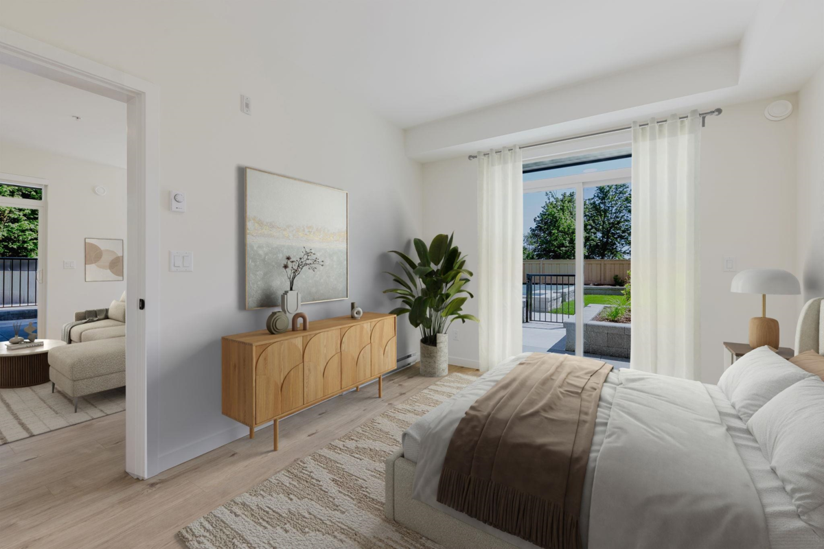 Welcome to Vista! This large 989 sq ft ground-level 2 bed + den, 2 bath home offers open-concept living with 9' ceilings, oversized windows, and beautiful courtyard views. Enjoy a stylish kitchen with quartz counters, stainless steel appliances, and ample storage. Relax on your private patio or enjoy Vista’s top-tier amenities: a rooftop deck, fitness centre, kids’ play zone, and lounge. Includes secure underground parking. Close to parks, trails, shopping, and more! Move in ready!