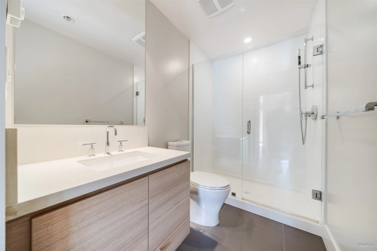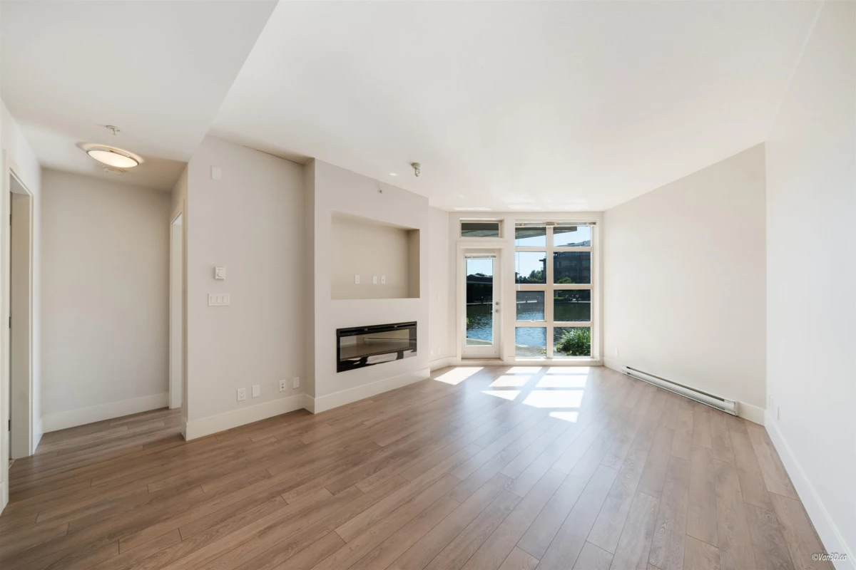 DON'T MISS THIS ONE, SOUTHWEST ' GROUND LEVEL ' ONE & DEN WITH TWO BATHROOMS ON THE PONDS WATER FEATURE! Fresh paint thru - out! hard surface flooring in all rooms, a stone center island accents the gas equipped kitchen, full sized stainless steel appliances, retractable hood fan & plenty of cabinets. The living features a linear fireplace & direct access to patio area & BBQ. 2 spa - like bathrooms, one is an ensuite for the Primary bedroom. All windows face the shimmering water feature of the infinity ponds. The interior den is very spacious for either an office, bike space, nursery or guest room. Destiny has a state of the art Gym & clubhouse, throw away your Gym Card, this one has it all. Located steps to Mtn Bike/Hiking trails, minutes to Deep Cove water sports, Cates Park beaches.