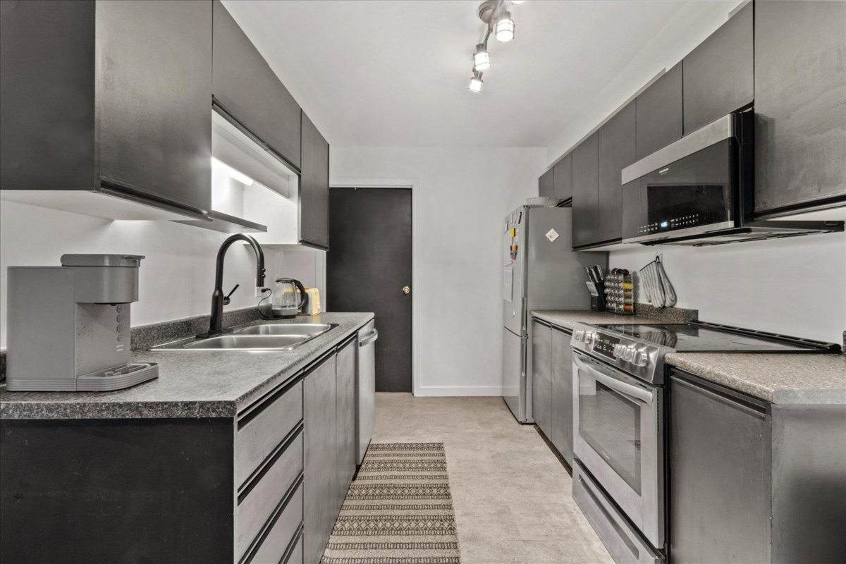 Come and discover this recently updated 1 bed, 1 bath ground level condo boasting a spacious open floor plan! The modern kitchen features stainless steel appliances and ample storage, complemented by a separate in-suite laundry room for added convenience and storage. Enjoy a peaceful retreat in your large cozy bedroom with generous closet space. Centrally located to all amenities including shopping, recreation, restaurants, & easy highway access. Enjoy the warm summer nights on your own large 25x16 patio! This home offers the perfect blend of comfort and convenience, come and check this one out today!