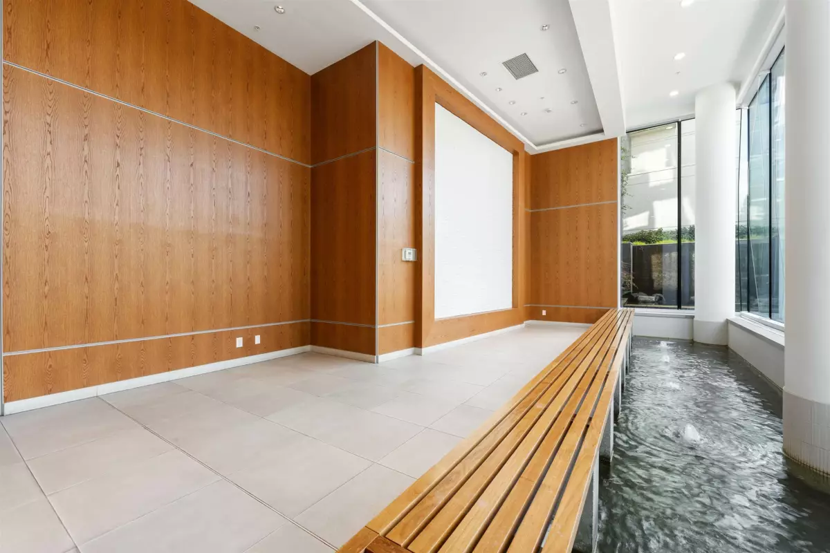 3 Bedroom + 3 Full Bathroom floorplan all on one level (two master bedrooms). No wasted space open floor plan, and each bedroom is paired with its own full bathroom. High end Bosch appliances. All rooms are individually Heat and A/C controlled. Enjoy yourself with the indoor pool, hot tub, sauna, gym and yoga studio. Or walk out to a private 2-acre park with water features and playground on the 6th floor. Walking distance and conveniently located in between Canada Line. 2025 - New carpets and newly painting throughout. Two Parking stalls (Tandem style).