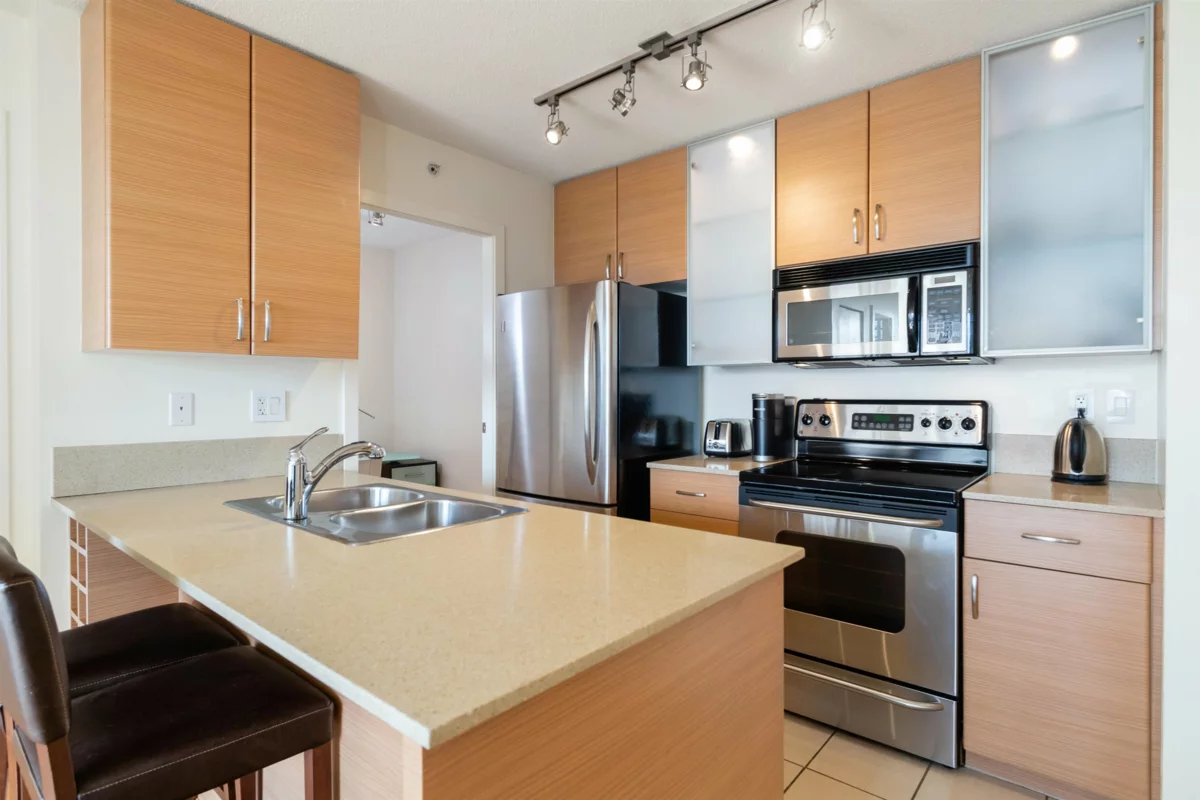 Getting around is easy, thanks to the proximity of public transportation options. The Northbound Cambie St @ Nelson St bus station is just 0.2 km away, providing convenient access to the city's public transit system.