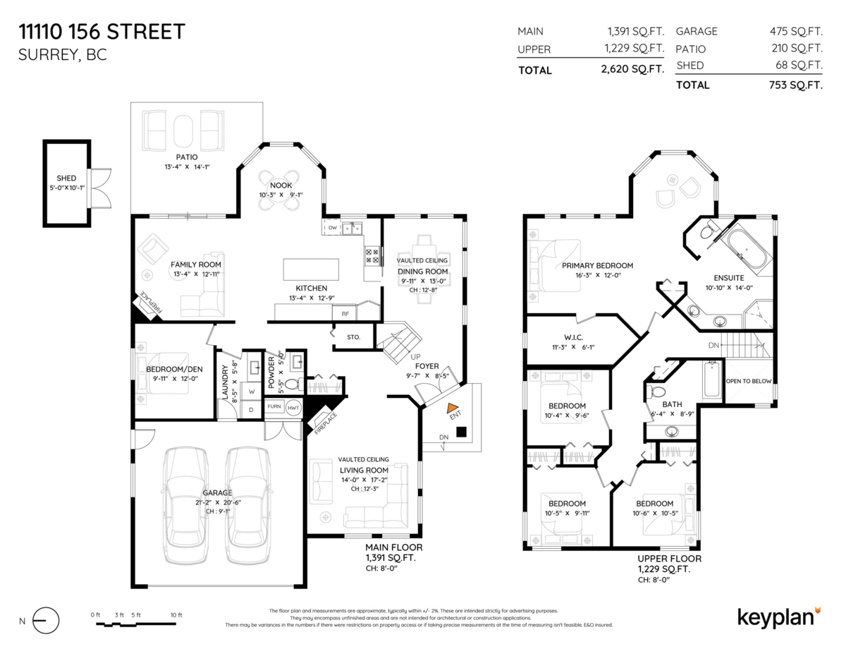 This exceptional 2-storey home in Fraser Heights is situated across from green space and Northview Park, on a quiet corner cul-de-sac lot. The home has been updated and features a chef’s kitchen with ceiling-height cabinetry, quartz countertops, a large island with breakfast bar, and high-end stainless steel appliances, including a dual-fuel range. The spacious main floor offers hardwood flooring throughout, vaulted ceilings, a bright family area open to the kitchen, and access to a cozy backyard—perfect for entertaining. A large den and an updated powder room complete the main level. Upstairs features hardwood flooring in the hallways and a massive primary bedroom with ensuite. Dogwood Elementary and Fraser Heights Secondary catchment. Easy access to Hwy #1 & Fraser Heights Rec Centre.