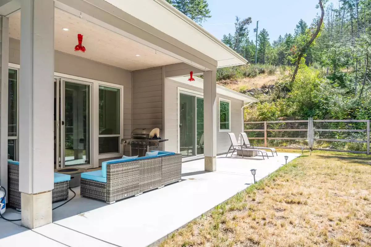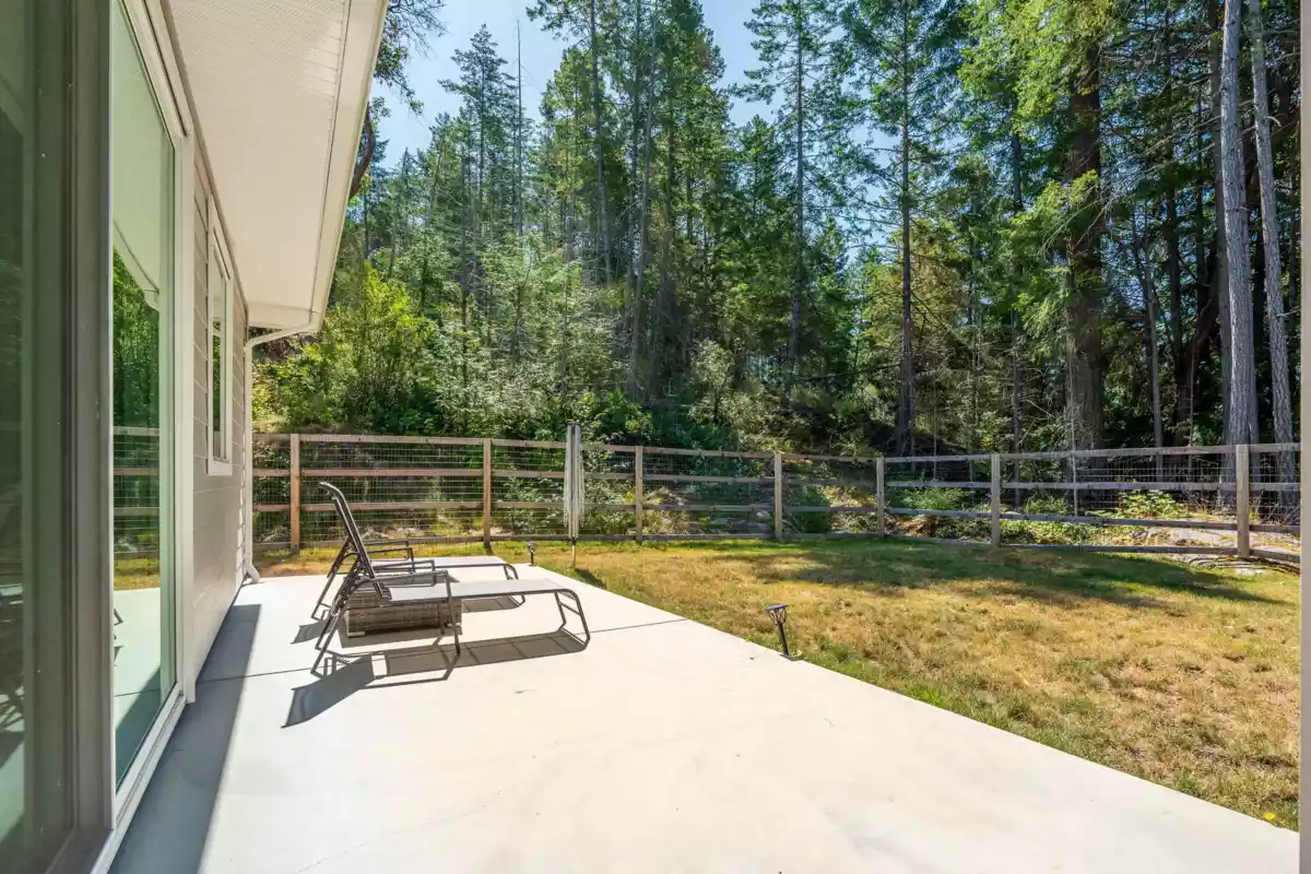 Beautiful new rancher on 2.4 acres with bright open layout, 9' ceilings, A/C, gas stove/fireplace, pantry, covered deck and sunlit fenced yard plus spacious open land. Large primary suite with spa-like ensuite, walk-in closet and sliding door to private yard. Area to add a 3rd bedroom. Lots of space for an outbuilding or RV parking. Peaceful & private setting.