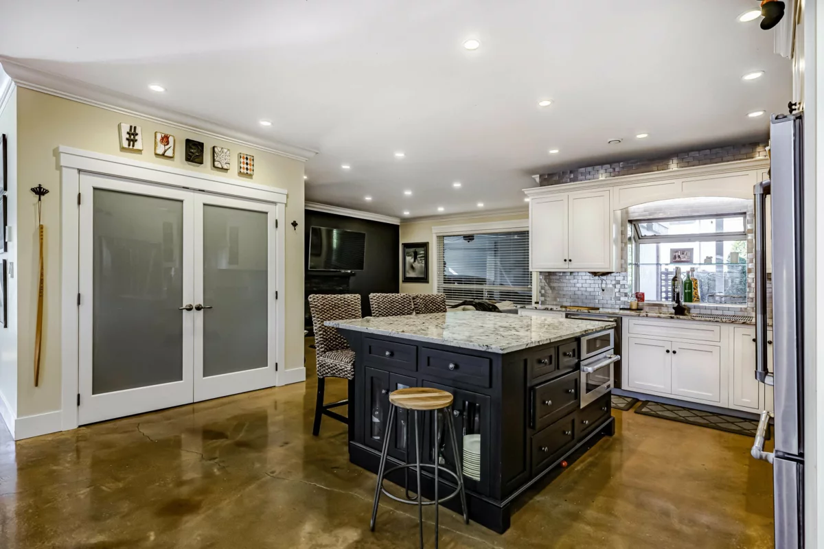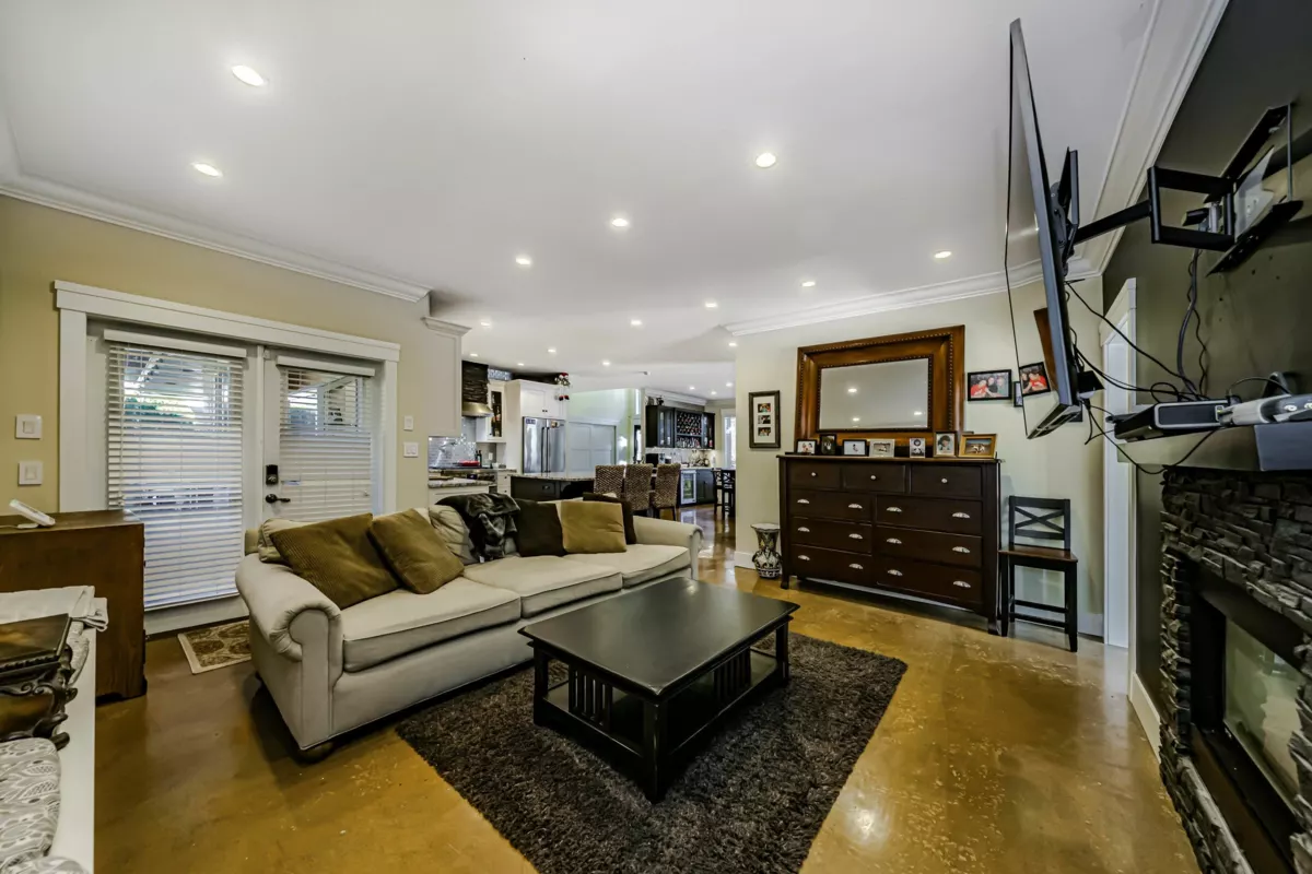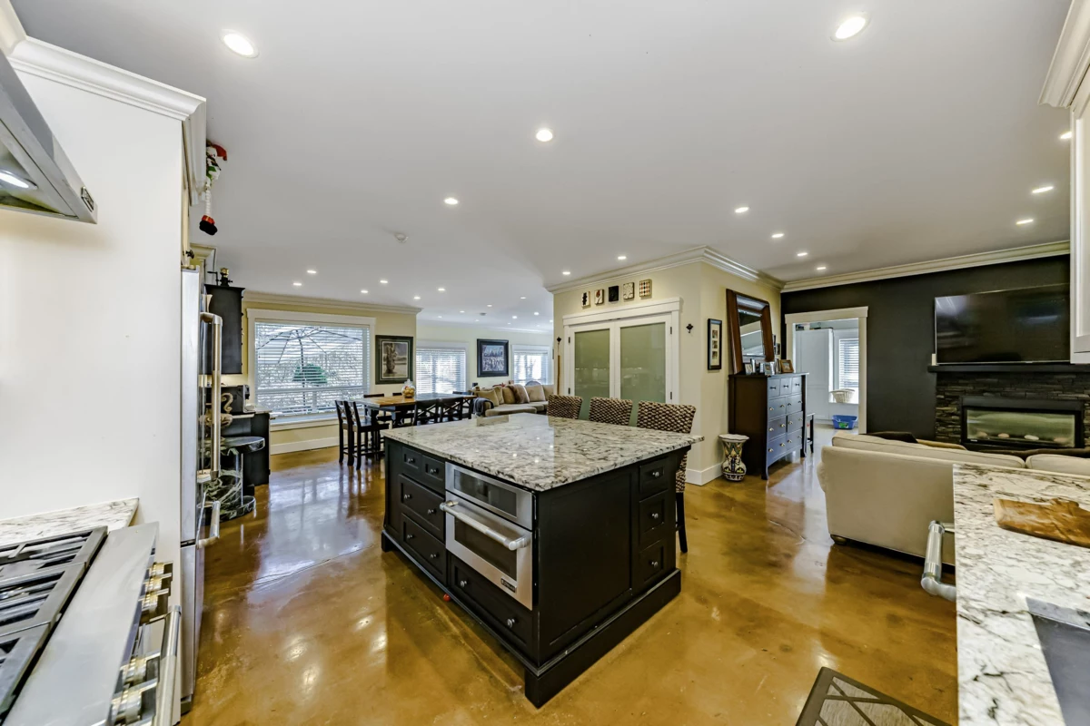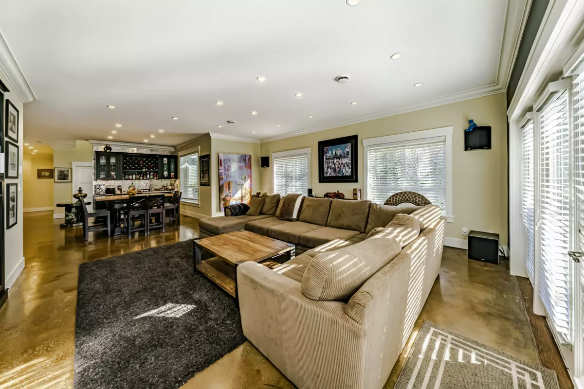 This 2,500 sq. ft. custom rancher sits on an 8,070 sq. ft. landscaped lot on a private road across from Northview Park. Fully renovated with high-end finishes, the home features 9-ft. ceilings, polished epoxy concrete floors, over 90 recessed lights, custom millwork, and built-in furniture throughout. The chef’s kitchen boasts a 6-piece Jenn-Air appliance package, wet bar, and large pantry. Modern upgrades include radiant heating, tankless hot water, heat recovery system, A/C, new roof, EV charger, and surround sound wiring. The primary suite offers a see-through fireplace and a luxurious 5-piece ensuite. The backyard is an entertainer’s dream with a huge deck, BBQ station, and Italian brick pizza oven. A rare opportunity to own a luxury single-level home in sought-after Fraser Heights.