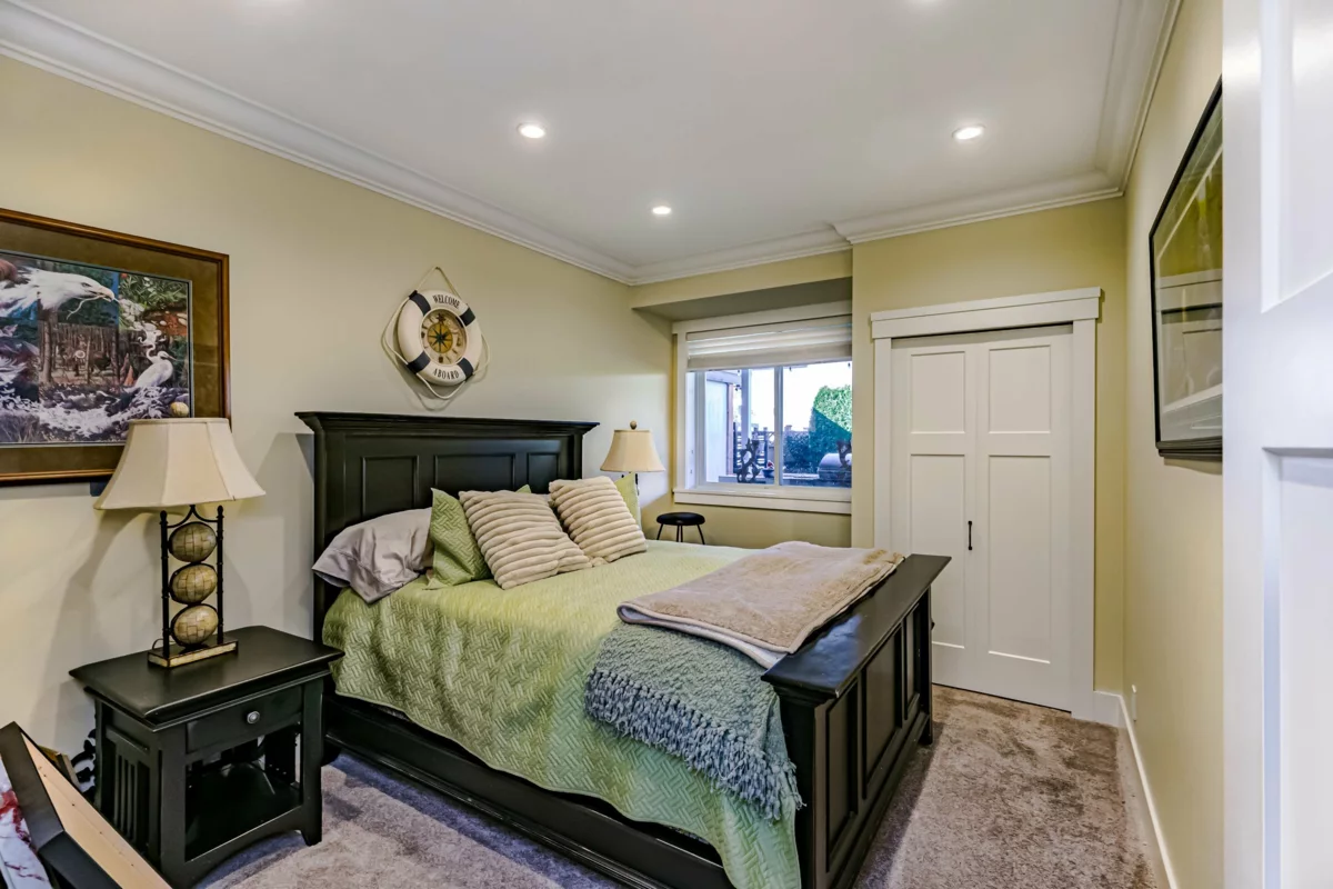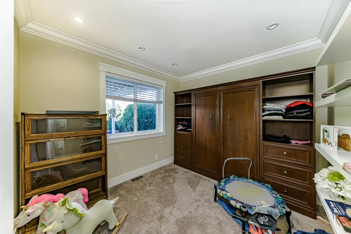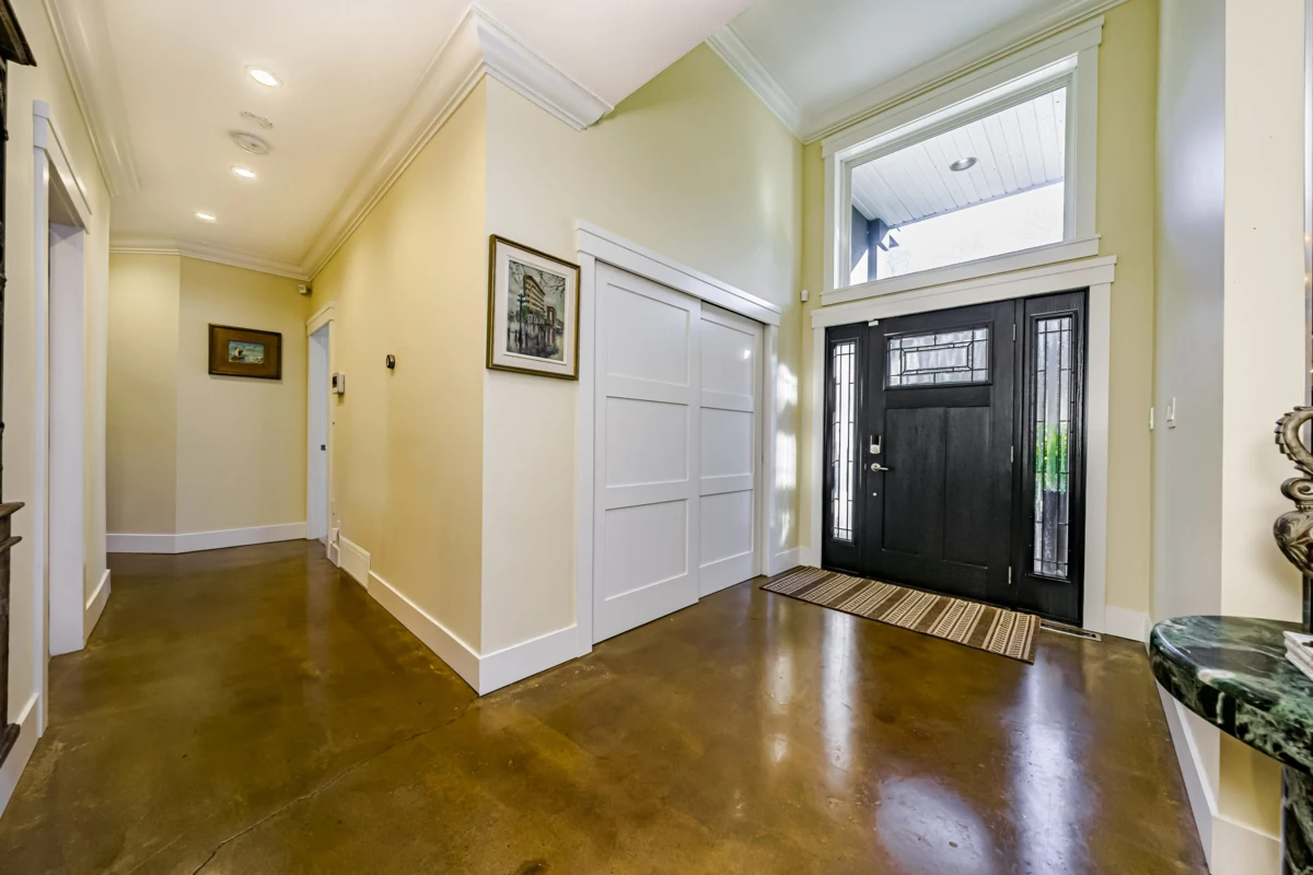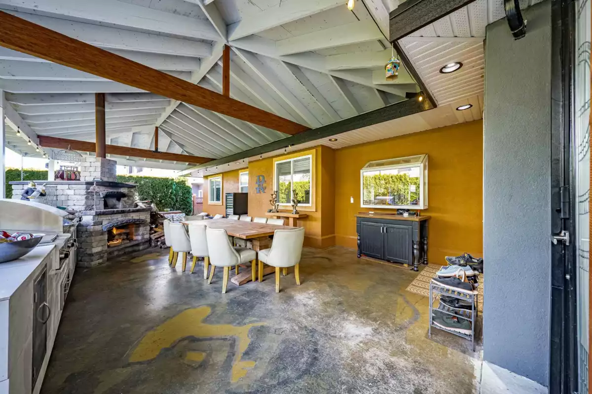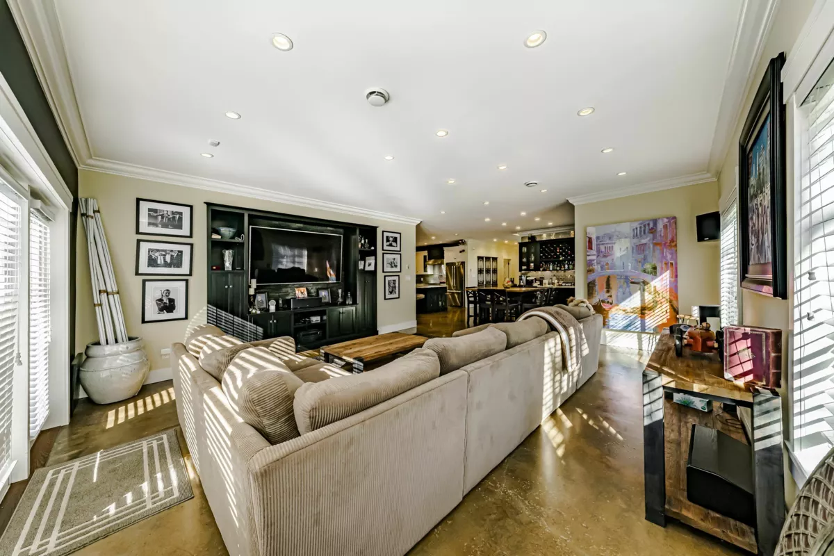 This 2,500 sq. ft. custom rancher sits on an 8,070 sq. ft. landscaped lot on a private road across from Northview Park. Fully renovated with high-end finishes, the home features 9-ft. ceilings, polished epoxy concrete floors, over 90 recessed lights, custom millwork, and built-in furniture throughout. The chef’s kitchen boasts a 6-piece Jenn-Air appliance package, wet bar, and large pantry. Modern upgrades include radiant heating, tankless hot water, heat recovery system, A/C, new roof, EV charger, and surround sound wiring. The primary suite offers a see-through fireplace and a luxurious 5-piece ensuite. The backyard is an entertainer’s dream with a huge deck, BBQ station, and Italian brick pizza oven. A rare opportunity to own a luxury single-level home in sought-after Fraser Heights.