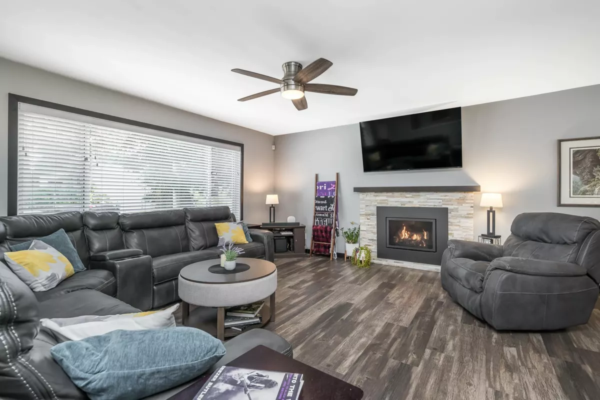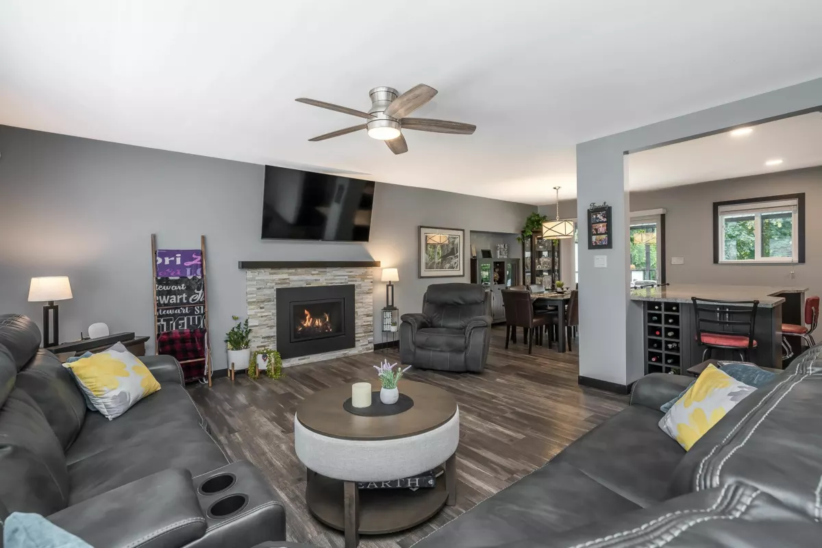 Completely Remodeled home (2022) inside & out including plumbing & electrical & siding upgrades-full alarm system- Prewired for cameras. Roof 1 year. Spacious open plan with full walk out basement. Upstairs kitchen features XL island w/eating areas, granite countertops. All appliances are KitchenAid including stove with double gas oven and 6 drawer fridge. Basement easily ready for 1 or 2 bed suite. A/C, natural gas BBQ and firepit, hot tub, workshop. Plus- home is backing onto private forested greenbelt! Easy to see, easy to move right in! See, offer, move!