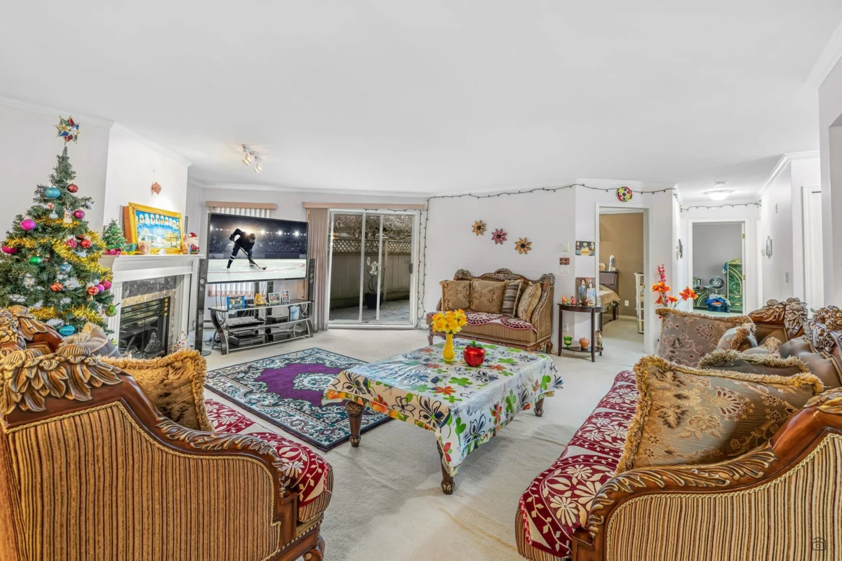 Spacious Ground Floor Apartment | 2 Bed 2 Bath | 1,463 Sq.Ft. | Originally Kept & Well-Maintained. This bright end unit overlooks a peaceful courtyard and offers two parking stalls. The Private Concept kitchen and breakfast area flow into a large living and dining space with a cozy gas fireplace and access to a covered patio—perfect for entertaining. The spacious primary bedroom features a walk-in closet, a luxurious ensuite with a soaker tub and shower, plus private patio access. Great location—close to shopping, transit, and Kwantlen University.