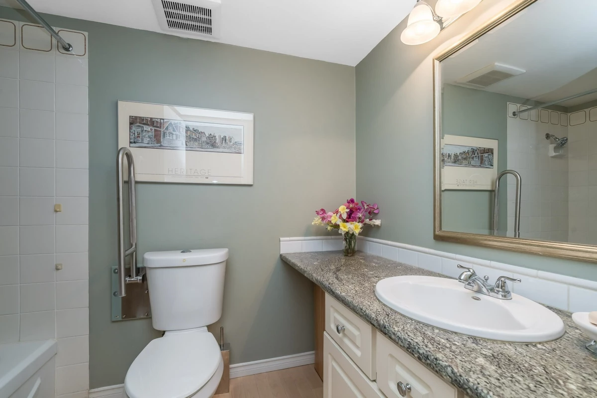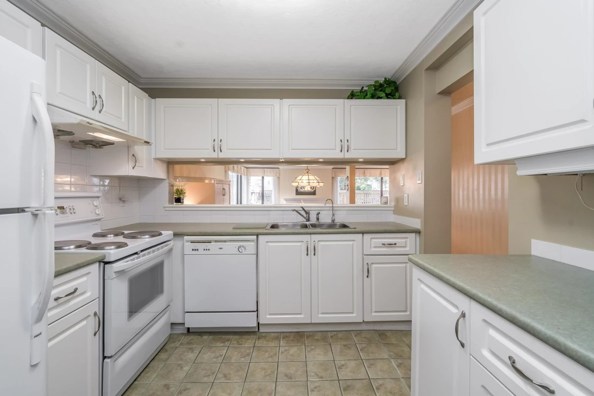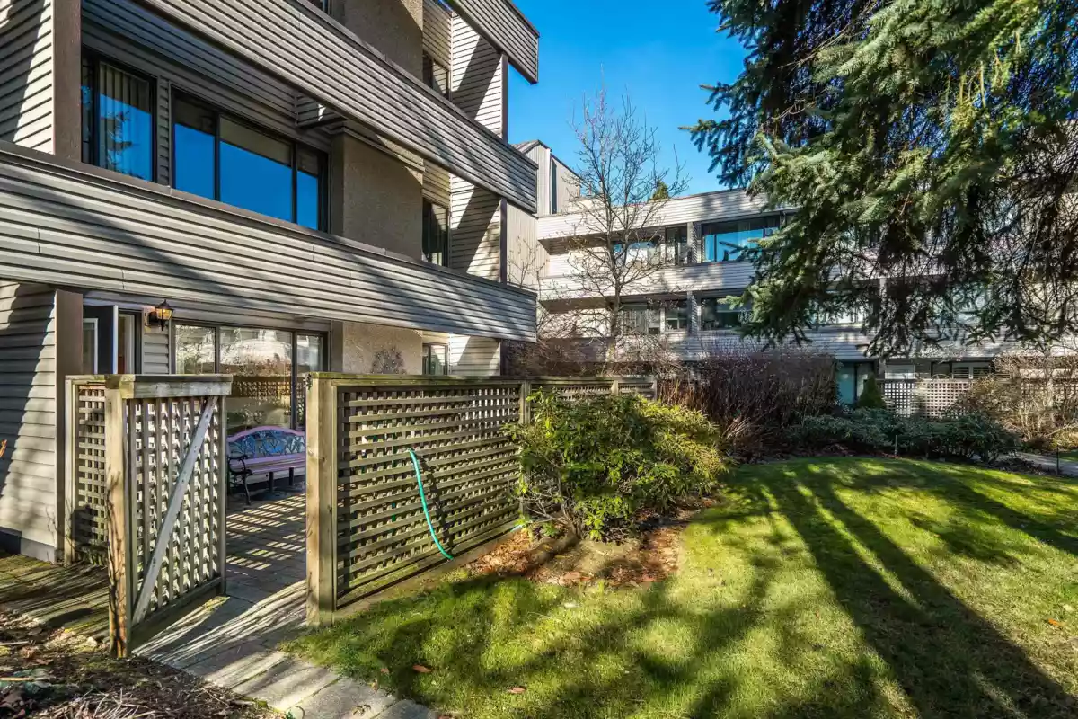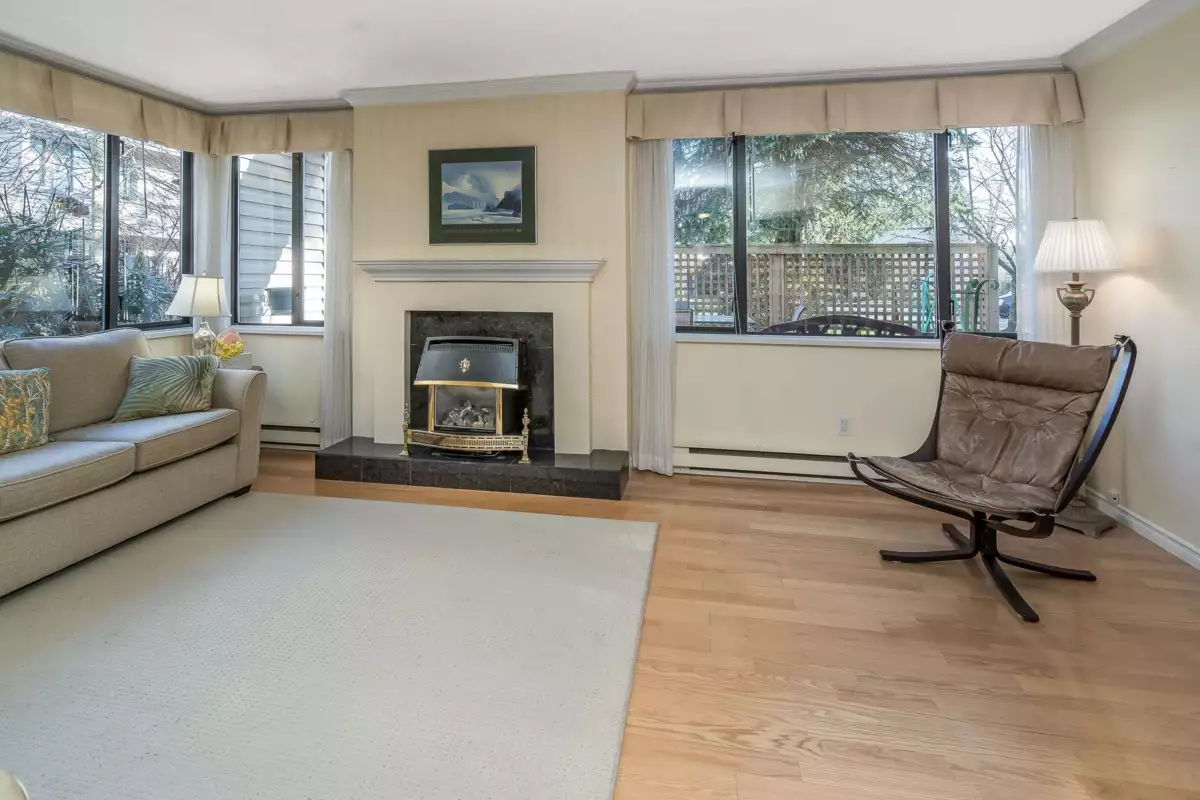 Location, location, Village Terrace in South Surrey / White Rock. Unique style Rancher open floor plan. Sunken living room w/ gas fireplace (gas incl. maint. fees), unique 2 bed, 2 full bath condo with enclosed solarium, can be your Den/office, Yoga room, or double as a 3rd Bedroom. Close to all amenities, backs onto sprawling Bakerview park, White Rock beach within walking distance, golf, features in-suite laundry, ample-sized rooms and closet space, kitchen pantry, 1 parking stall #70 & storage locker #112. An extra parking spot can be rented. Complex includes a workshop, amenities room with billiards and shuffleboard tables, bike area, and 2 community barbecues. Updated landscaping, fences, walkways and lighting. Extra parking is available for rent. Easy to show anytime.