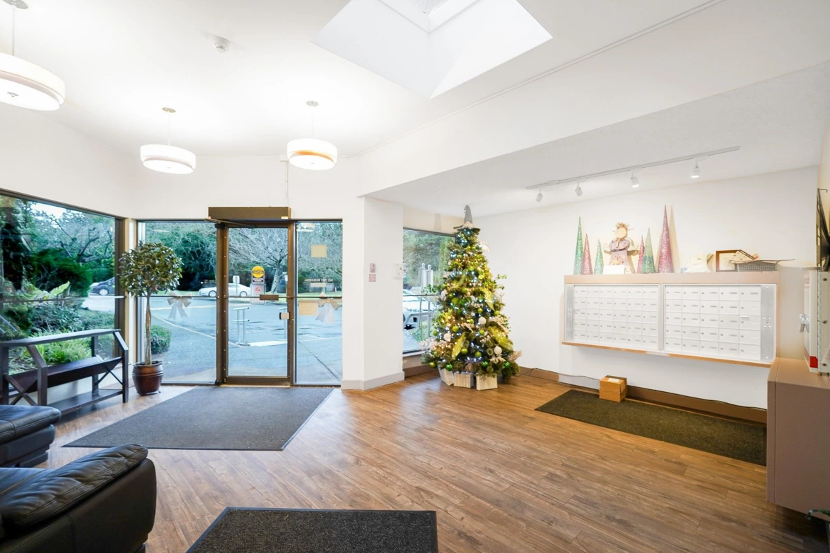 Amazing Location Steps to transit, shops, restaurants, parks, and directly across from Semiahmoo Shopping Centre. Walk to Semiahmoo Secondary, bike to the beach, and drive to the U.S. border in minutes. First-floor (above ground) unit with a large north-facing balcony backing onto greenery and nearby elevator access. Updates include roof (2018), paint, in-suite laundry, and appliances. 2 bedrooms, 1 bath with cheater ensuite. Heat and hot water included. OPEN HOUSE Sun 25th Dec 2:00 PM - 4:00 PM