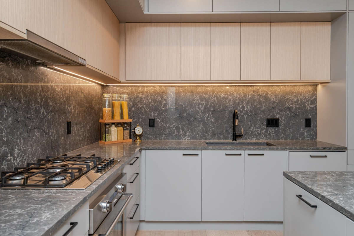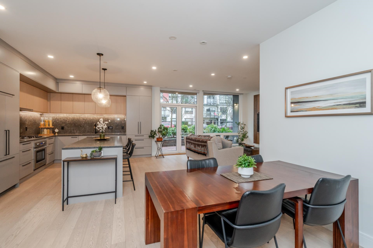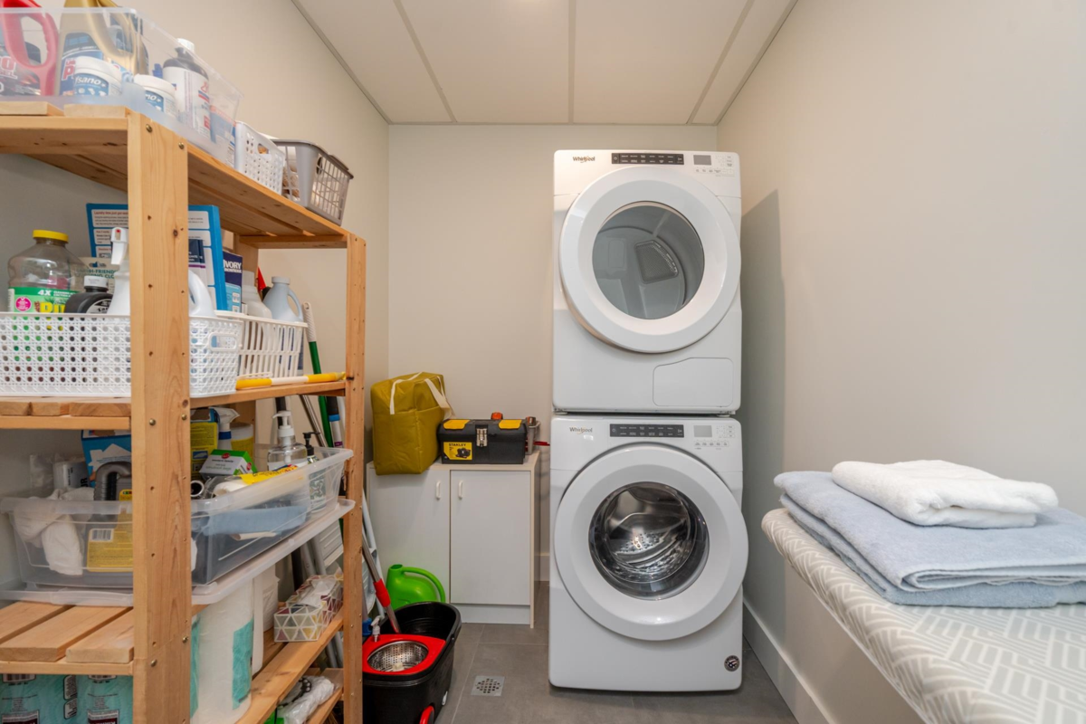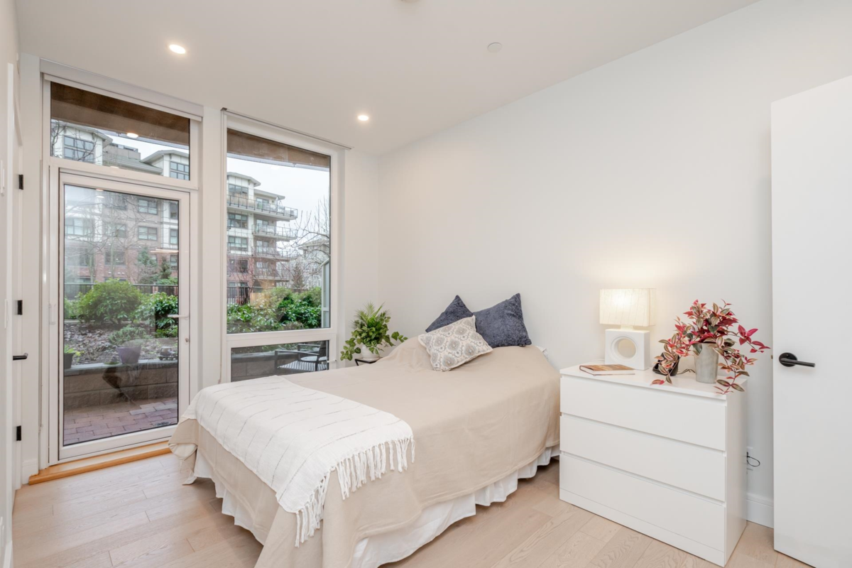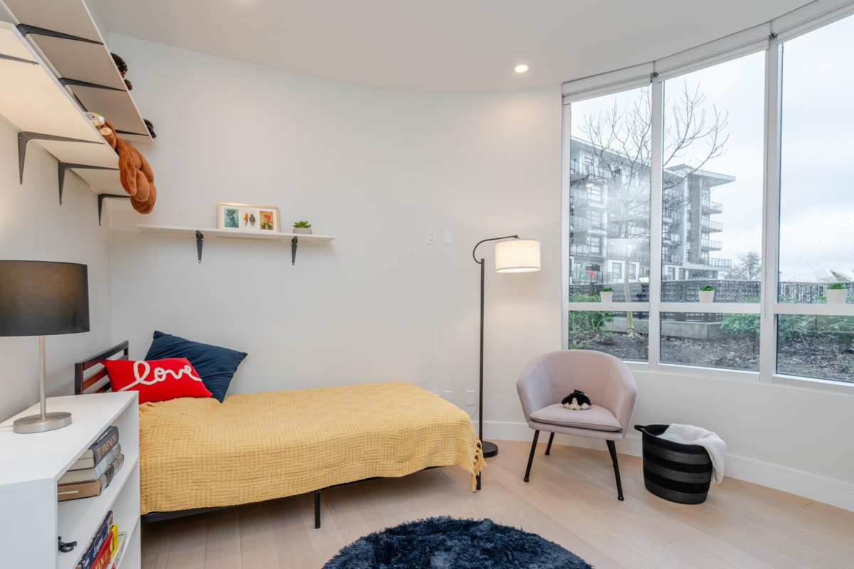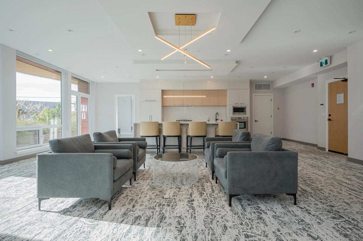 Legacy on Park Avenue! Extra-wide ground-floor corner home with garden space, offering 2 beds & 2 baths with floor-to-ceiling windows throughout. Featuring sound-insulated interiors, air conditioning, 9-ft ceilings, composite hardwood flooring, high-end millwork, this home stands well beyond anything else in Langley. Kitchen boasts Caesarstone countertops and backsplash, modern cabinetry w lighting, undermount sink, & Fisher & Paykel appliances. Striking curved architecture creates an extra-large covered patio, + a bonus 2nd patio off the guest bed, perfectly positioned to enjoy the morning sun. Full concierge building with a two-storey grand lobby, deluxe fitness centre, & an impressive residents’ lounge. Steps to shops, parks + community centre, and just an 8-min walk to future skytrain.