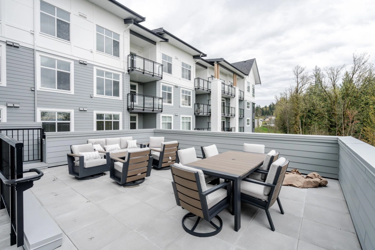 Welcome to Vista at Westminster Plateau, a stunning corner 2-bedroom, 2-bath home offering 937 sq. ft. of bright, modern living and a large balcony designed to take in the surrounding beauty. This well-laid-out Plan H is set in a vibrant new community beside the historic Westminster Abbey, with scenic views toward the Matsqui Valley and lush green landscapes. Enjoy a west-facing exposure that fills the home with natural light, complemented by upgraded laminate flooring, sleek Samsung appliances, and custom wood shelving in the primary bedroom for added style and function. Parking is included for your convenience. Residents enjoy access to premium amenities including a rooftop deck, co-working space, gym and fitness studio, kids’ play zone, and a fully equipped clubhouse—perfect for enter