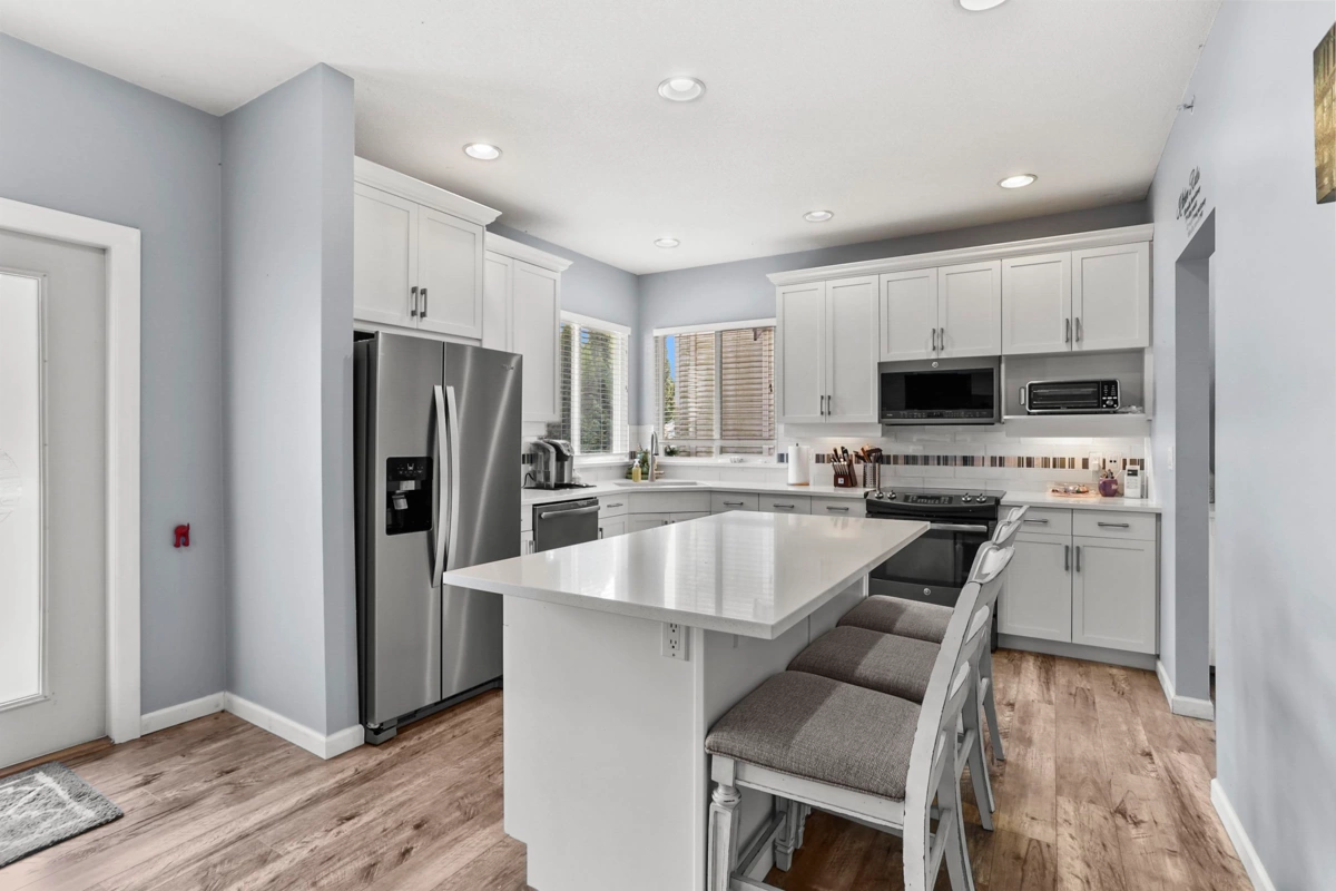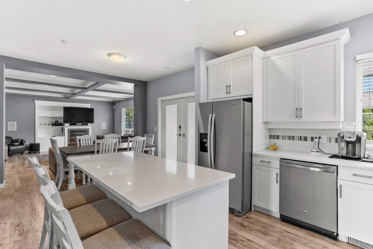 Welcome to Bonson’s Landing! This beautifully updated 2-storey home offers space, comfort and style in an ideal family setting. Featuring 3 generous bedrooms up, the primary suite impresses with a dream walk-in closet and ensuite with soaker tub and shower. The kitchen has refurbished cabinets and new quartz countertops, while fresh exterior paint enhances curb appeal. Enjoy year-round comfort with forced air heating and A/C. The backyard is fully renovated with irrigation, artificial turf, paved walkway and gazebo, creating a private retreat for relaxing or entertaining. A long flat driveway and double garage add convenience, and the location is unbeatable—close to the Golden Ears Bridge, walking distance to Osprey Village and in one of Pitt Meadows’ most desirable neighbourhoods.