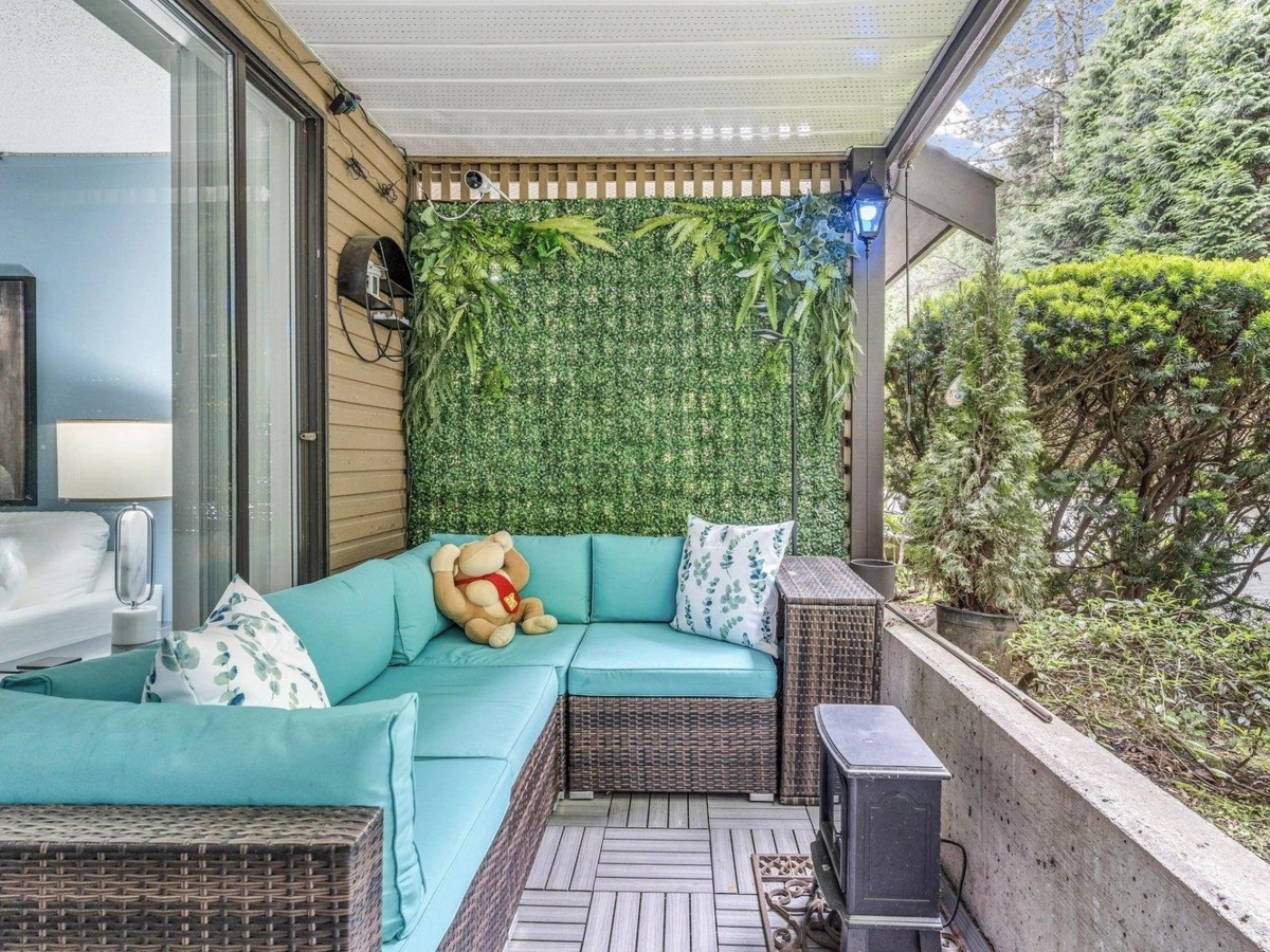 Charming 1 bedroom CORNER UNIT, GROUND FLOOR of the desirable Lincolns Hill Complex. Discover your new home or investment opportunity with this spacious 725 sq ft 1 bedroom. This unit offers exceptional privacy and tranquility, featuring a cozy patio surrounded by trees. Key Features include easy access and added privacy; this unit provides ample living space; Relax on your private patio, perfect for enjoying the lush surroundings; Heat and hot water are covered in the maintenance fee; Indulge in the stunning water fountain and gardens within the complex. Short walking distance to Guildford Community Centre, Guildford Mall, transit, library, and the rec centre. Easy access to the Port Mann Bridge for Highway 1 commuters. Call today before it's too late!