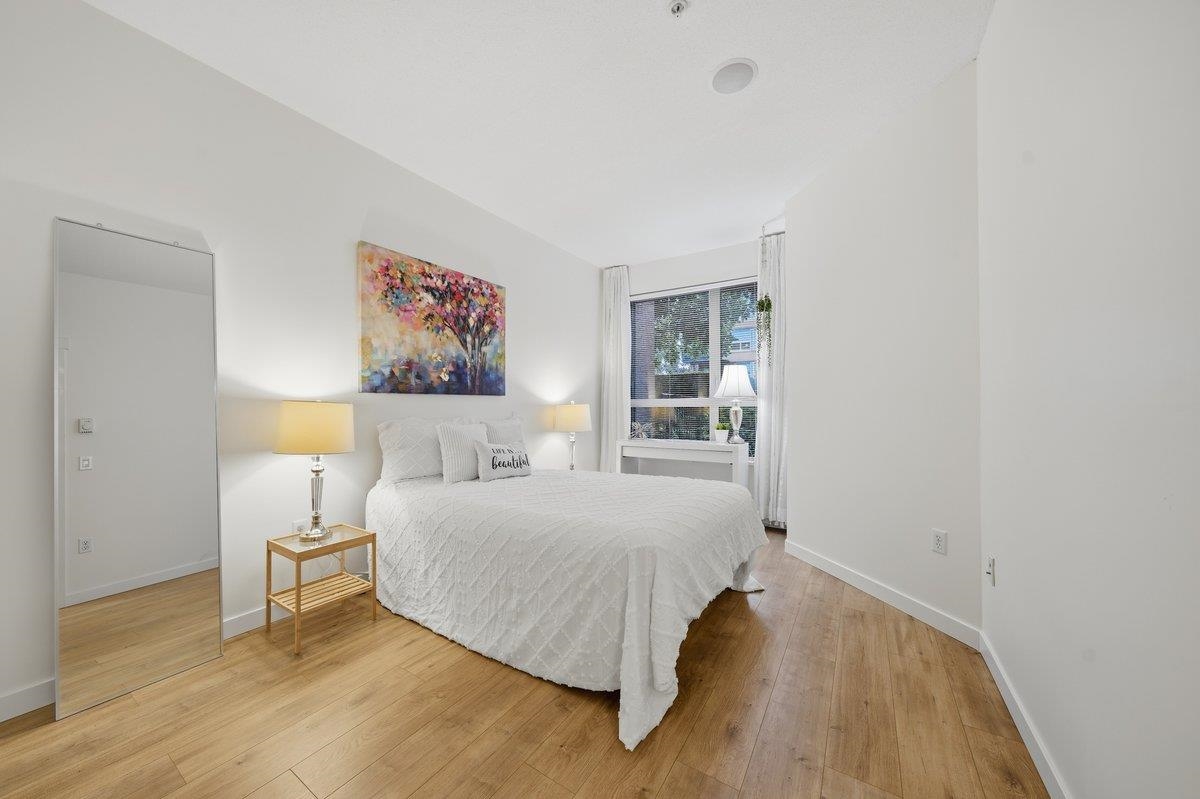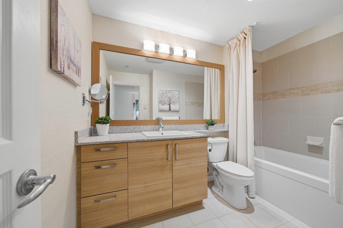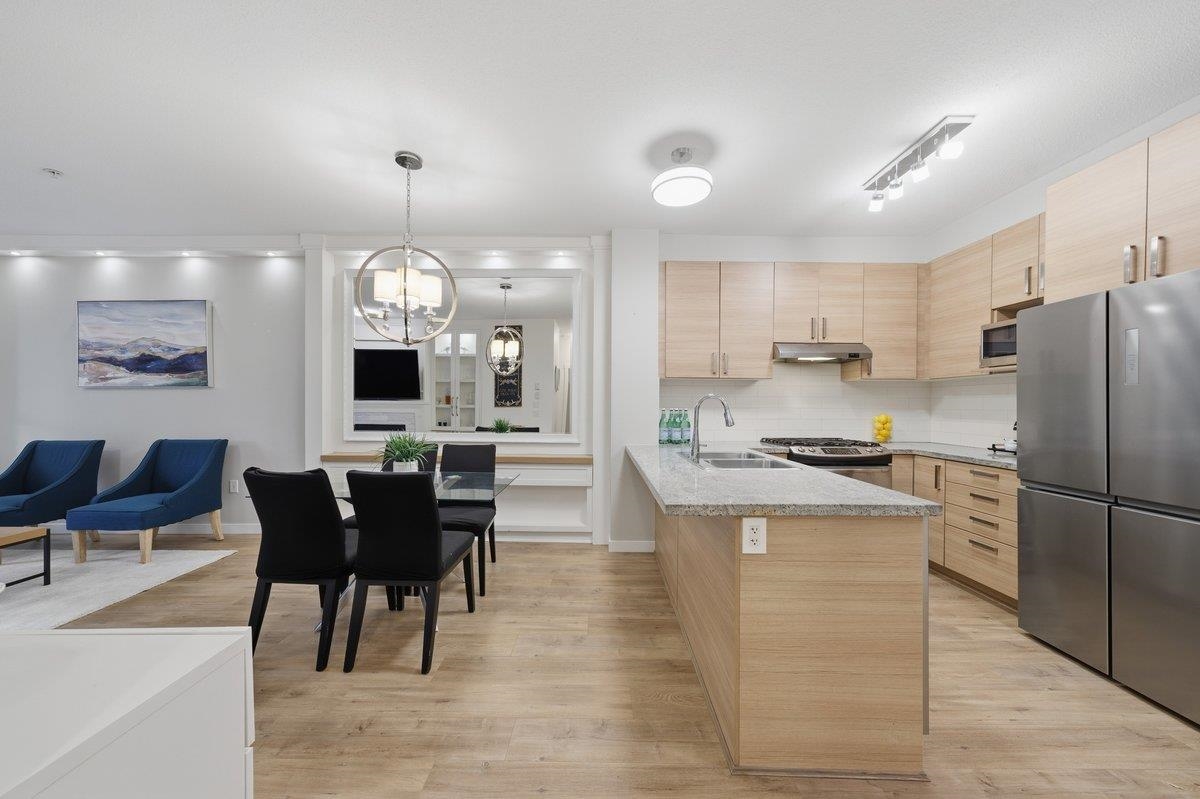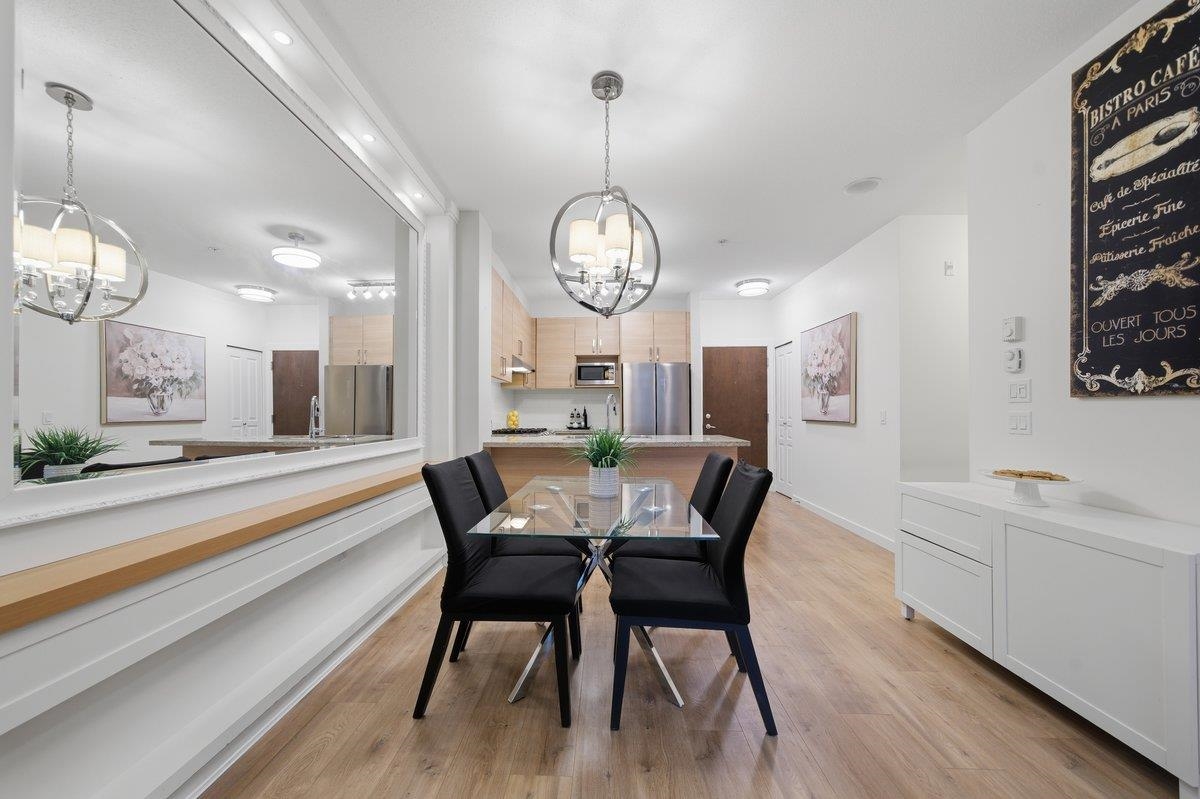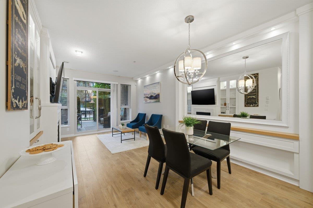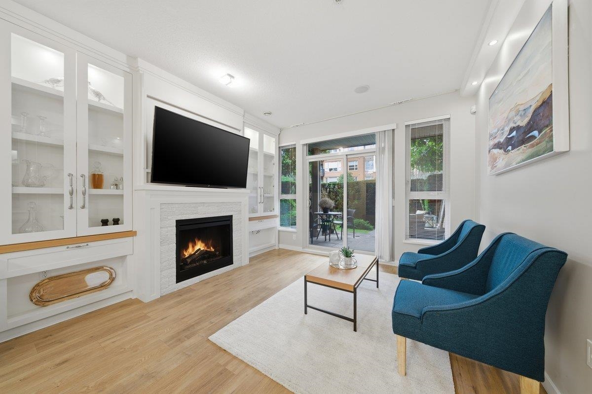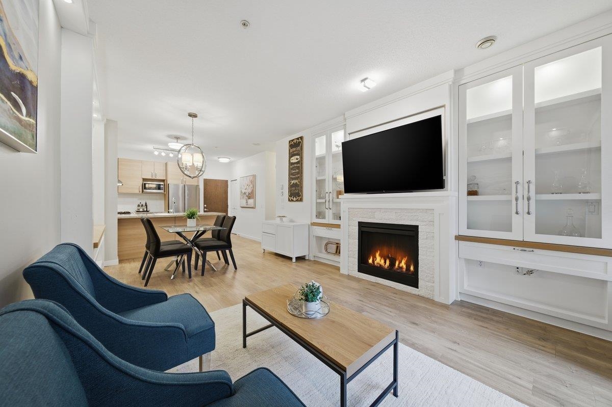 This STUNNING former "Show Home" is MOVE IN READY!! The "Thomas house" built by Polygon is a 2 bed/2 bath ground floor home featuring upgrades throughout: sophisticated built-ins, natural wood highlights, designer wallpaper, large framed mirrors, new flooring and more! BONUS: 9' ceiling, gas stove, storage locker, EV charging, LARGE patio w/ fenced yard - perfect for pets/kids! Residents also have access to the private Nakoma Clubhouse, which features over 18,000 sq. ft. of resort-style amenities: basketball/badminton court, outdoor pool, gym, guest suites, & yoga area. Located near trails, schools, parks, Skytrain, & more. Open house: Saturday, February 7th from 2:30 - 4:30pm.