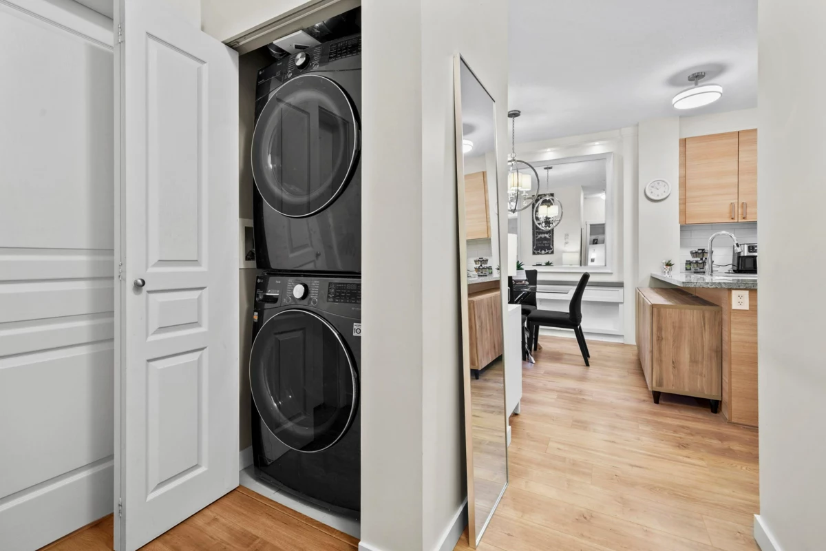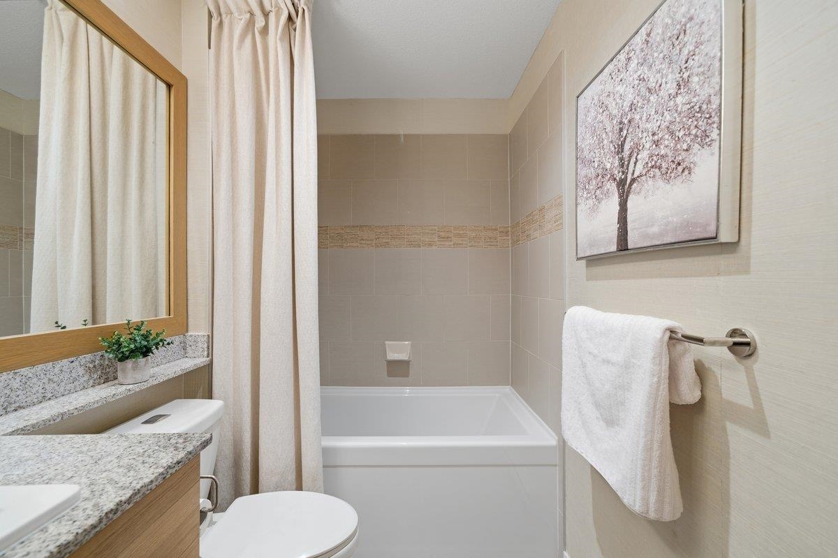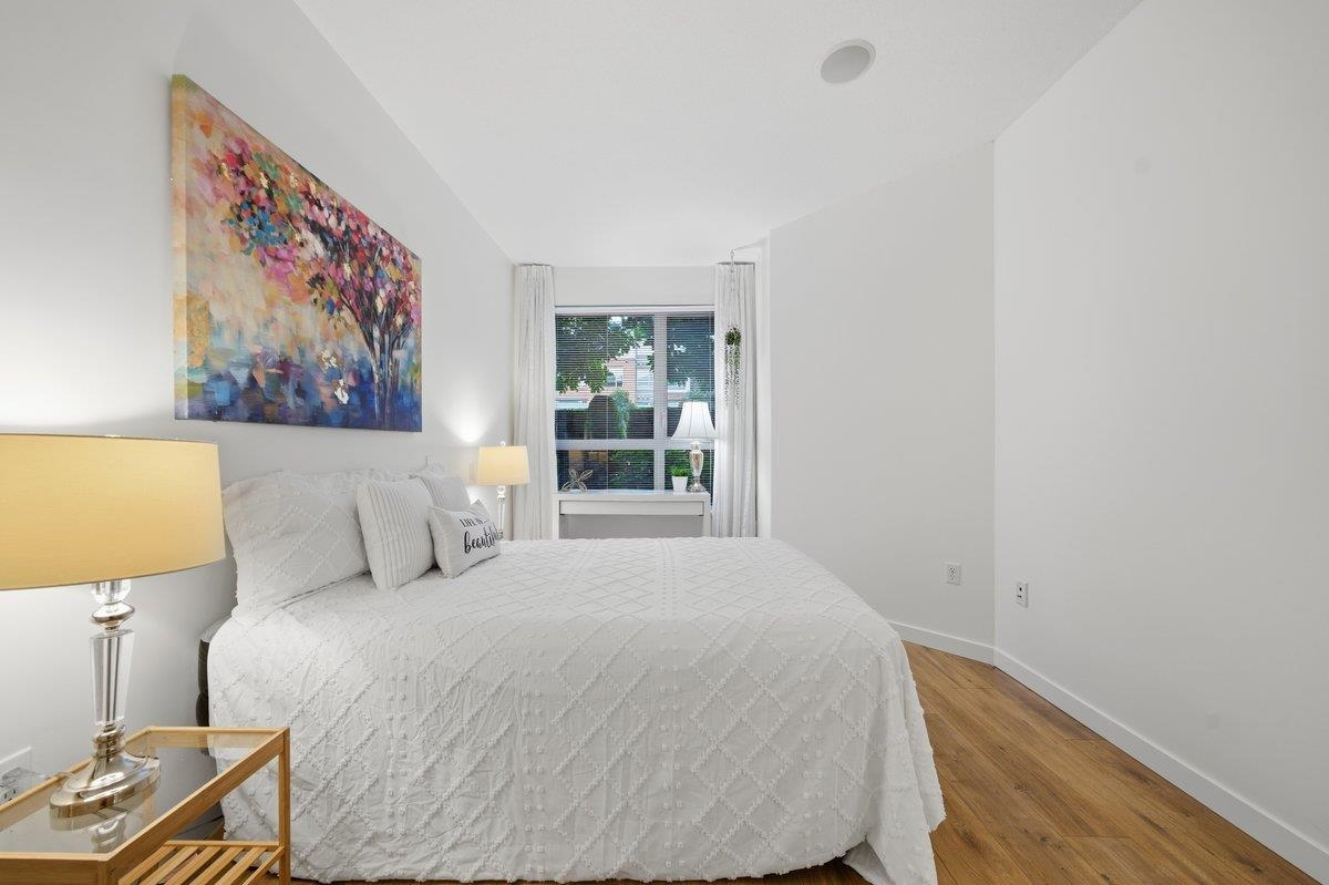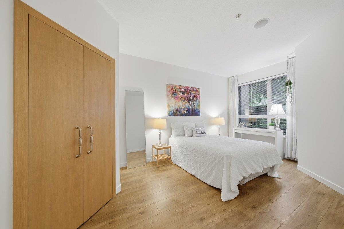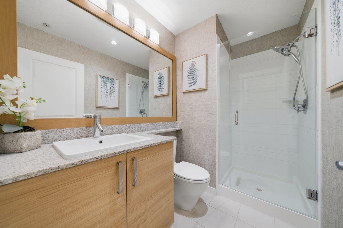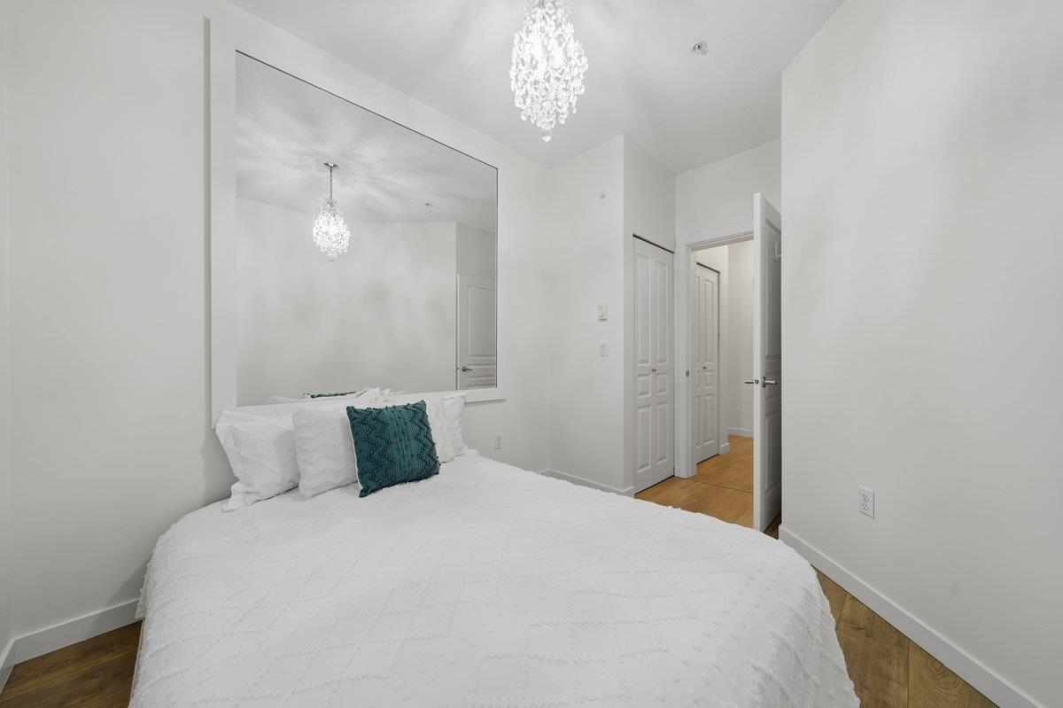 This STUNNING former "Show Home" is MOVE IN READY!! The "Thomas house" built by Polygon is a 2 bed/2 bath ground floor home featuring upgrades throughout: sophisticated built-ins, natural wood highlights, designer wallpaper, large framed mirrors, new flooring and more! BONUS: 9' ceiling, gas stove, storage locker, EV charging, LARGE patio w/ fenced yard - perfect for pets/kids! Residents also have access to the private Nakoma Clubhouse, which features over 18,000 sq. ft. of resort-style amenities: basketball/badminton court, outdoor pool, gym, guest suites, & yoga area. Located near trails, schools, parks, Skytrain, & more. Open house: Saturday, February 7th from 2:30 - 4:30pm.