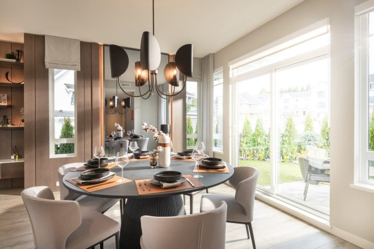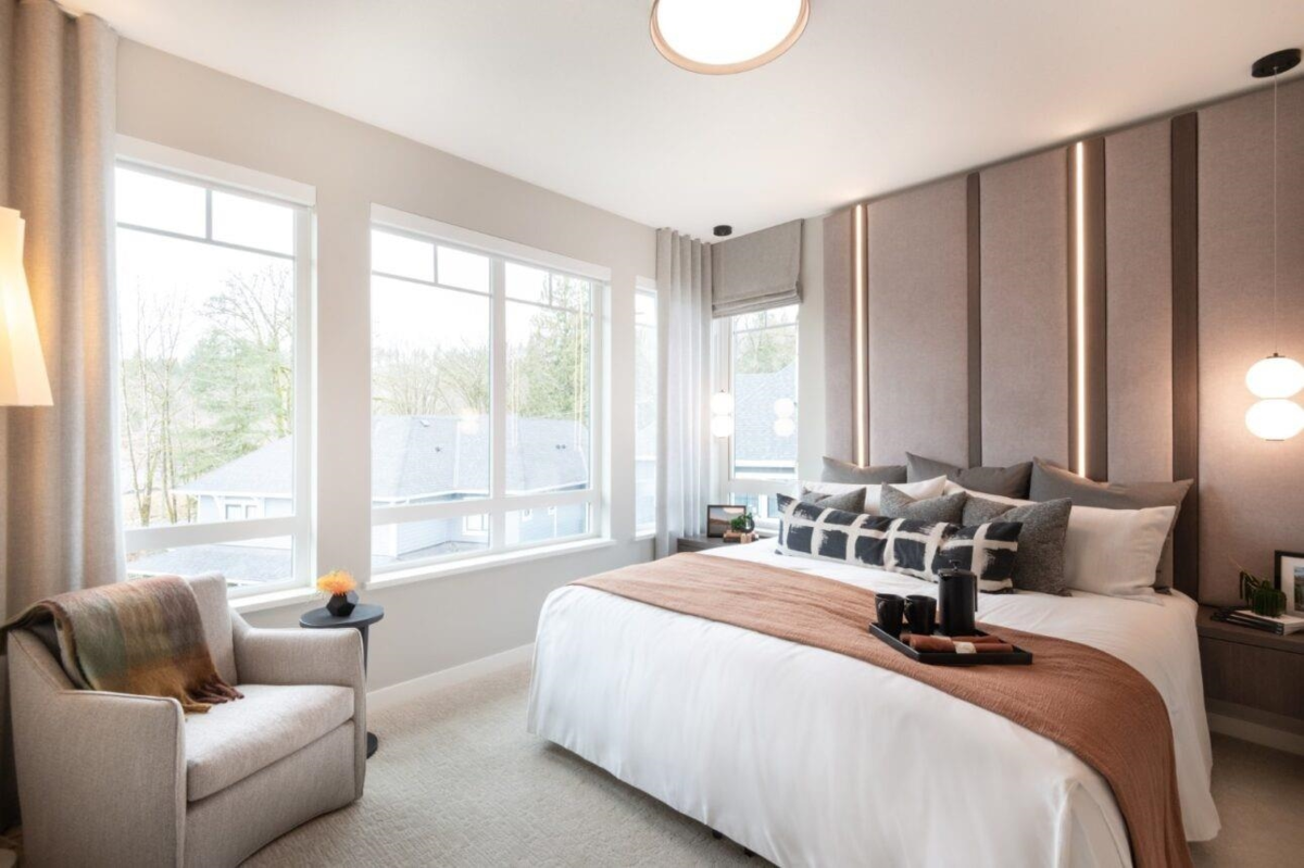 This 3 bed 2.5 bath corner townhome at Polygon's Partington Creek belongs to a new collection of townhomes nestled in Coquitlam's Burke Mountain neighbourhood. Enjoy 1,519 sq. ft. of living space with overheight main floor ceilings, laminate wood flooring, expansive windows, and den off the kitchen. The kitchen boasts custom cabinetry, stone countertops, full-height marble tile backsplash, and a generous island. The master ensuite features a spa shower with built in bench. Plus, enjoy the convenience of a double car garage equipped with level 2 EV outlet, access to the Creekside Cub - a resident's only clubhouse with amenities for the whole family. Visit our sales office and three display homes at 3674 Victoria Drive to learn more.