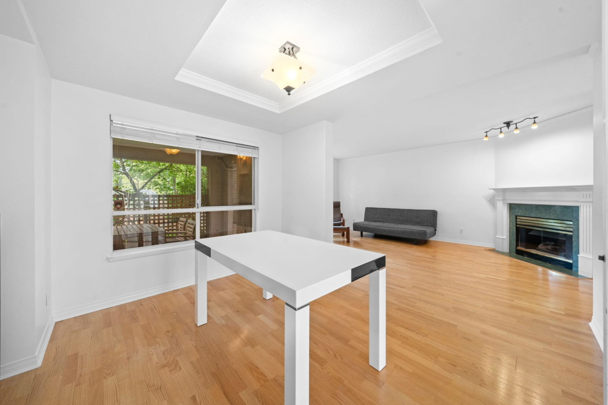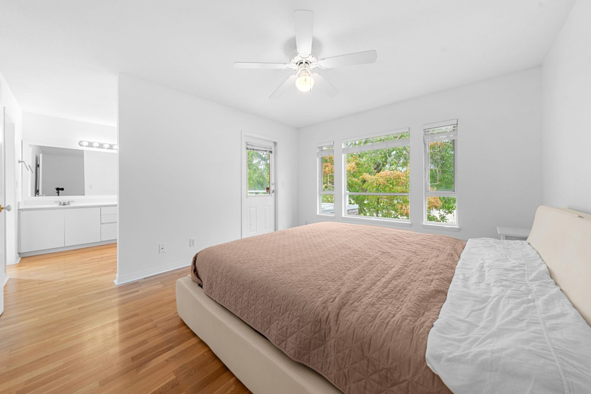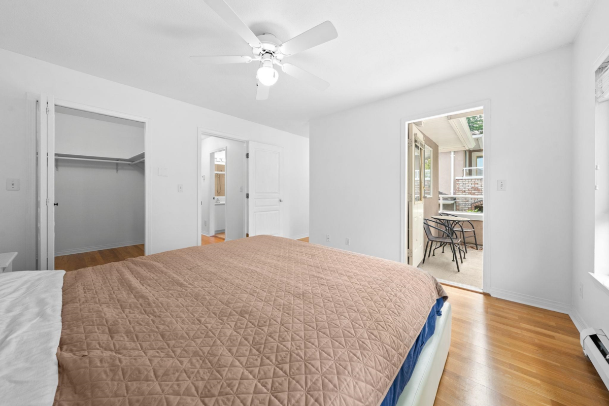 Welcome to this private corner unit townhouse in the sought-after Sunnyside Gate complex! This beautiful 3 bed, 3 bath townhome offers a smart 2-storey layout. The main floor features a bright kitchen with skylight and eating nook, separate dining, powder room and cozy living room with gas fireplace opening to a large covered deck and fully fenced patio surrounded by lush landscaping - perfect for year-round enjoyment. Upstairs offers a spacious primary suite with walk-in closet, large ensuite and private balcony overlooking the park, plus 2 more spacious bedrooms, office nook and laundry. Single garage + extra parking. Pet friendly (2 dogs + 2 cats). Freshly painted and move-in ready. Across from Sunnyside Park, pool, tennis & ball courts, and near Morgan Crossing, shops, schools & more.