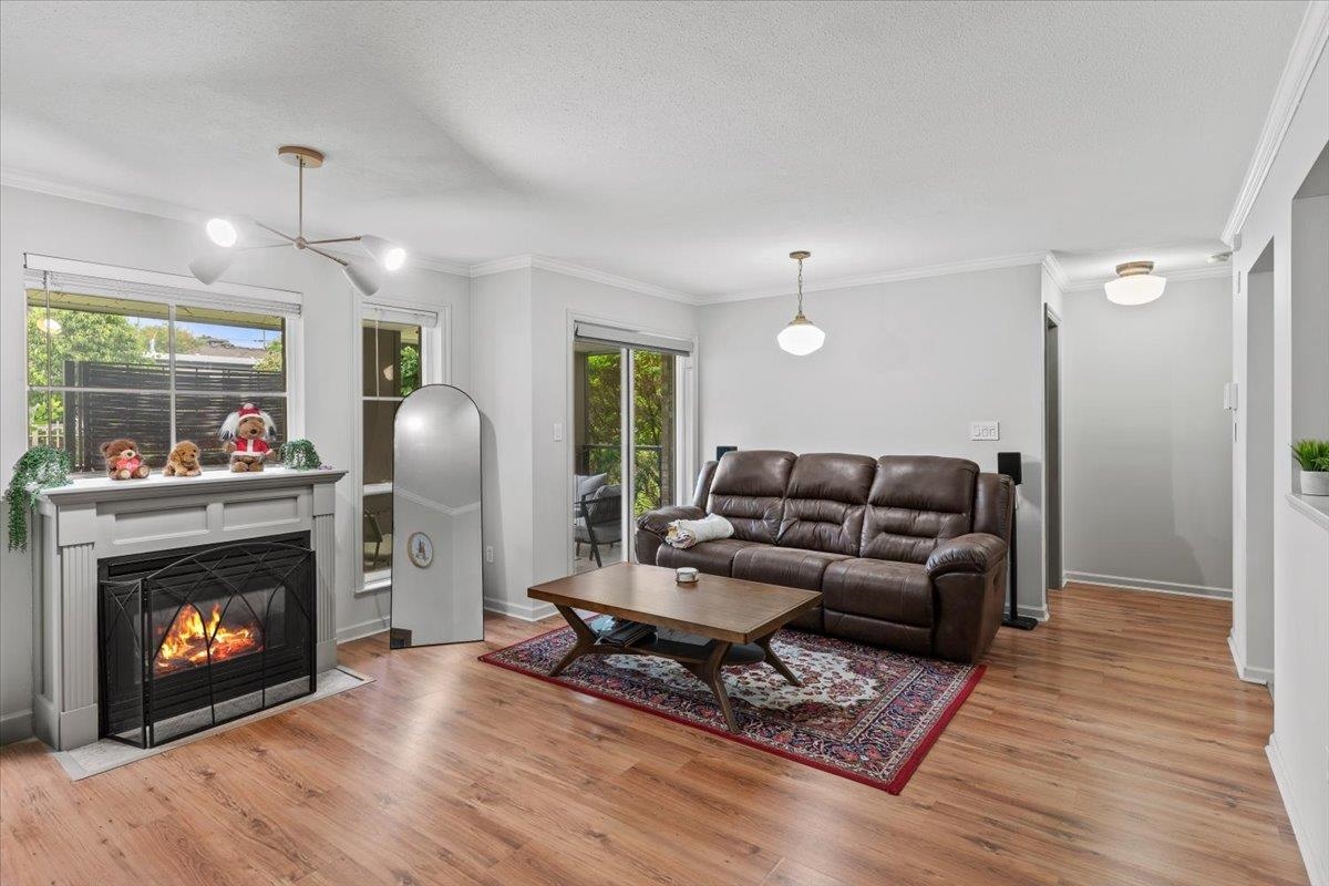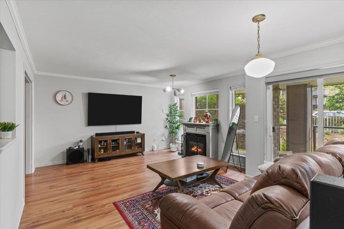 Welcome Home to Comfort & Convenience at Kathleen Court!Discover this beautifully refreshed, bright 1-bdrm +den ground-level unit. Enjoy modern living w/ recent updates includes elegant laminate floors,contemporary light fixtures, stylish bthrm vanity,refreshed countertops, & new kitchen floor & sink. Peace of mind w/ a newer roof (2018) & fresh paint thruout.A versatile den offers flexible space (easily convertible to a 2nd bdrm!) & cozy living room features gas fireplace, (gas included in strata fees). A tranquil outdoor oasis offers a cool retreat on summer days, perfect for relaxing amidst beautifully maintained gardens.2 side-by-side parking spots. Walk to Mission Rec Centre, Fraser River Heritage Park. Experience the perfect blend of comfort, style, & walkability don't miss this gem!