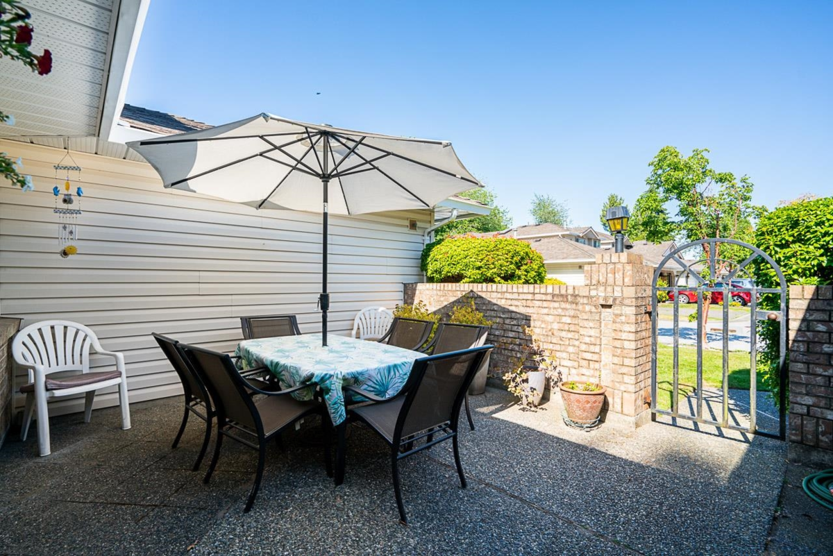 Rancher style semi-detached Townhome in Chelsea Gate has a private yard with over 1,600 sq ft of living space on 1 level. Located in a gated community in Guildford. Enjoy the open layout with kitchen, eating area & family room bringing in lots of natural lights from the large windows. Large primary bedroom with WIC & large 5 pc master bath plus private yard view. Main living/dining room has open layout & opens onto the peaceful, serene space of your private, fenced backyard & large patio. Lots of parking with w/ double garage/storage & large driveway. Feels like a single family home in a quiet community. Close to Guildford Shopping Centre, T&T, restraunts, Skytrain, buses & easy access to Hwy 1.