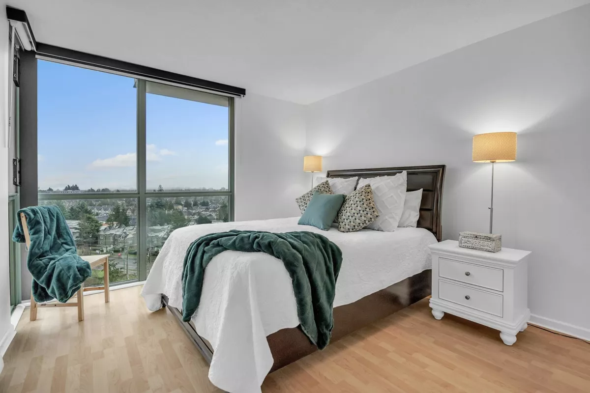 Wake up to beautiful Mt. Baker Views in this large 1104 sq.ft. 2-bedroom, 2-bathroom corner suite w/ wraparound covered balcony & bright NE exposure. The open-concept living & dining areas offer abundant natural light & a gas fireplace included in the strata fees. Bedrooms are generously sized, w/the primary featuring a walk-in closet & updated ensuite. Freshly painted & move-in ready w/ in-suite laundry & storage/flex, 1 parking & 1 storage locker. Located in a well-maintained, rainscreened building w/only four homes per floor. Just steps to Highgate Village, Save-On-Foods, SkyTrain, the Highland Park Line Trail & minutes to Metrotown. ***** Call to book your Appointment. 24 hour notice is preferred.