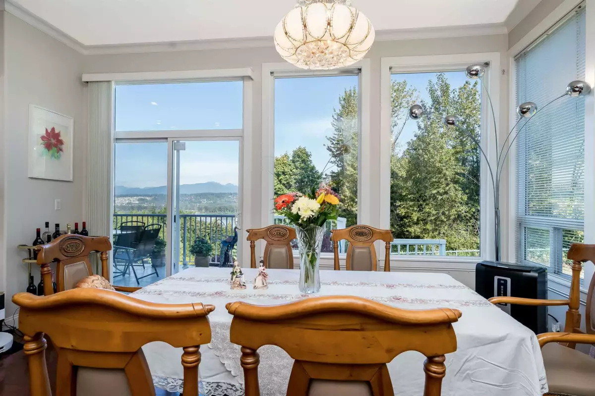 Panoramic Water, Mountain & Park Views in Fraser Heights! This beautifully crafted 5-bedroom, 4-bath residence built by Morning Star offers sweeping views from every level. The impressive 18’ great room showcases five picture windows, a Tuscany-inspired gas fireplace, and engineered oak flooring, creating a warm and elegant living space. The gourmet kitchen features a granite island, designer cabinetry, and 10’ ceilings, with an adjacent den for added versatility. The vaulted primary suite includes a picture window framing stunning views, along with a spa-like 5-piece ensuite. The walk out fully finished basement is complete with a bedroom, full bath, movie room, and spacious living area. A private courtyard entry with stone pillars adds charm and curb appeal. Move in ready. Shows AAA+++