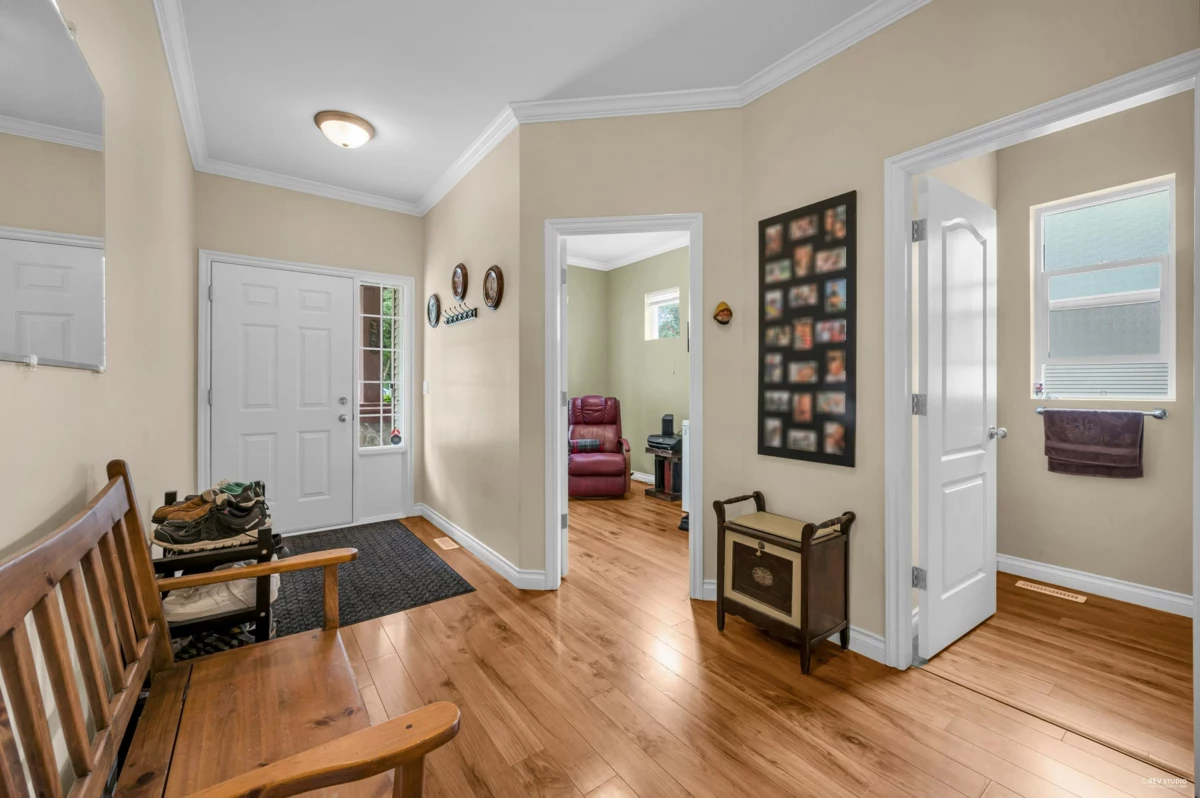 Welcome to Heritage Ridge. Check out this fabulous 4 bedroom, 3 bath Rancher with a fully finished walk out basement backing onto GREENBELT. With 2,454 sq ft this home has an open floorplan that's perfect for entertaining. The main floor features a huge great rm with gas fp, laminate flooring, big open kitchen with plenty of cabinets, gas stove, large island & beech counter tops. You’ll also find 2 bdrms including the large primary bdrm with ensuite & W/I closet. The lower level features 2 more bdrms, full bath, media room & large family room with gas fp.The fenced backyard is really private with a lower patio and upper deck & you'll stay cool in the summer with CENTRAL AIR CONDITIONING (2024). Great location with easy access to transit, West Coast Express, Bypass, shopping and much more.