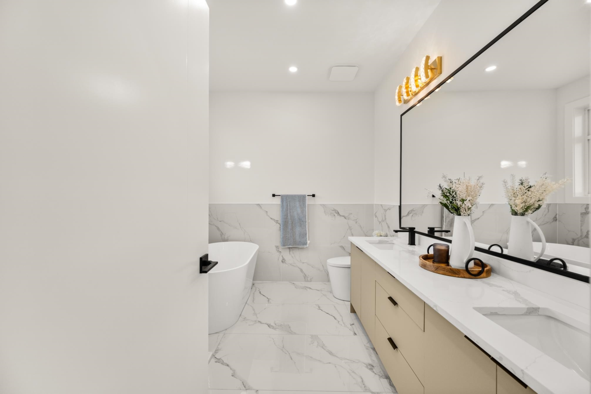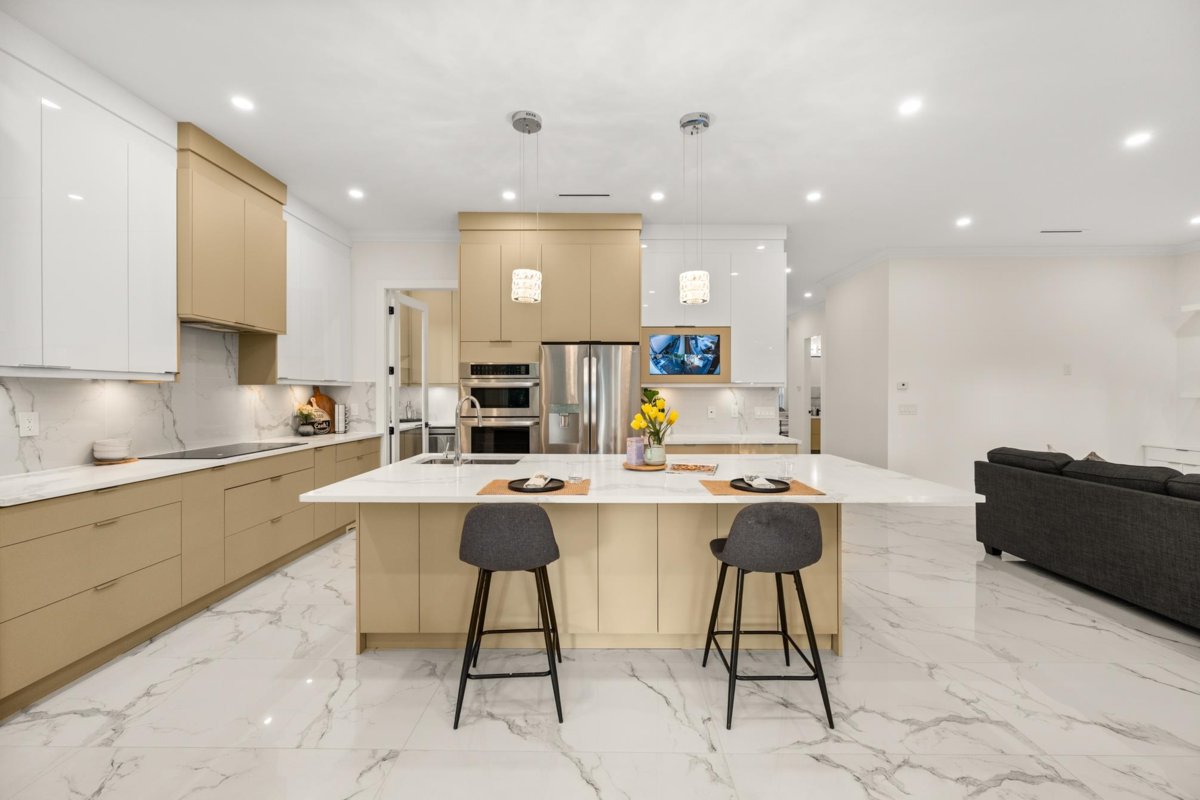 Welcome to this brand-new custom-built home offering 8 bedrooms, 6 bathrooms, and nearly 4,000 sqft of luxurious living space. Designed with soaring ceilings and expansive windows, the home is filled with natural light. The chef’s kitchen features quartz countertops, stainless steel appliances, a built-in wall oven and microwave, plus a spacious wok kitchen. Elegant tiling, cozy electric fireplaces, built-in vacuum, and security cameras add comfort and peace of mind. Two mortgage-helper suites provide excellent value and flexibility. Ideally located near King George Hub, Save-On-Foods, restaurants, transit, and major routes, with breathtaking mountain, water, and city views. In James Ardiel Elementary and Kwantlen Park Secondary catchments. Book your showing today!