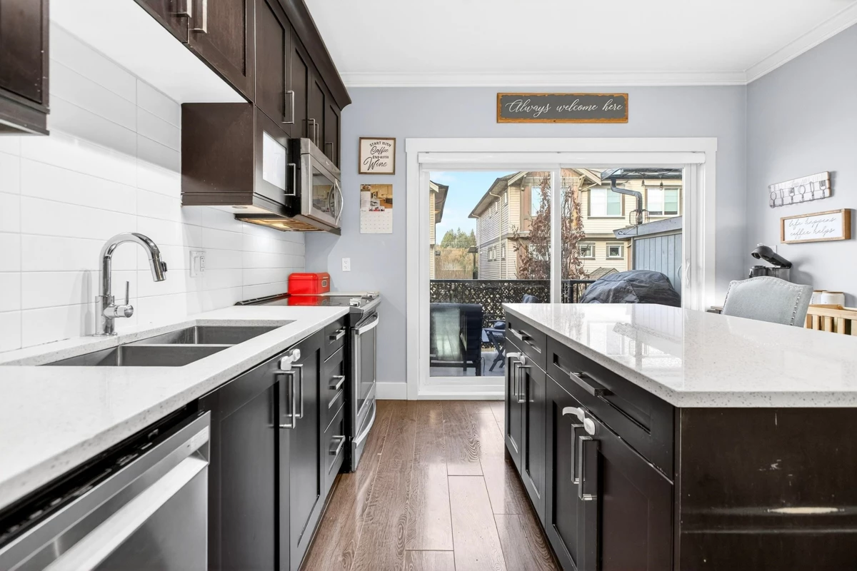 Welcome to Albion Station! A lovely 2 Bedroom / 3 Bathroom END UNIT Nestled in the complex backing onto a common green space! This family townhome is perfect for First Time Buyers, Investors or Growing Families! A Spacious Floor Plan with Modern Finishings including Stainless-Steel Appliances & Quartz Counter Tops! Upstairs features 2 generously sized Bedrooms and 2 Bathrooms! The basement features a bathroom off of the entrance, perfect for kids or pets and a Large Single Car Garage as well as driveway space for 2 PARKING!! All of this located in a Well-Managed Pet & Rental Friendly Complex! Close to Albion Elementary, Samuel Robertson Secondary School, Planet Ice Arenas, Bruce's Market, and Kingfisher's Pub, plus minutes from the West Coast Express & Transit!