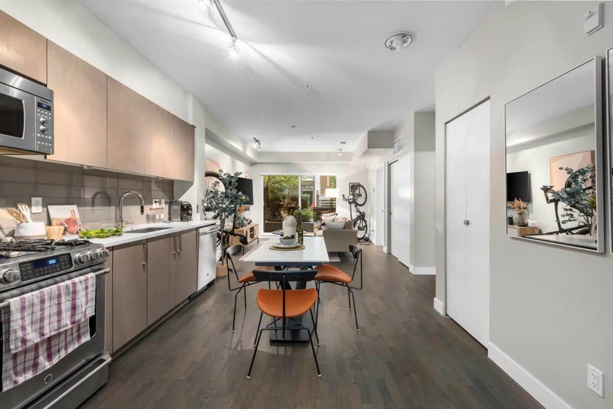 Welcome to Parc Rivera - This well maintained 1 bed 1 bath south facing unit features an open concept layout with 9’ ceilings and the kitchen equipped with stainless steel appliances. This home is also equipped with geothermal heating and cooling for year-round comfort. Enjoy a range of amenities, including a clubhouse, indoor pool & hot tub, fitness centre, lounge, and a daycare centre. Explore a thoughtfully designed riverfront community featuring over 4,000 sq. ft. of dyke trails, 5 acres of parkland, and dedicated playground and picnic areas. Discover the vibrant North Richmond neighbourhood, just a quick 5-minute drive from the Oak St Bridge, Costco, YVR airport, and the Bridgeport Canada Line Station. Unit comes with 1 parking.