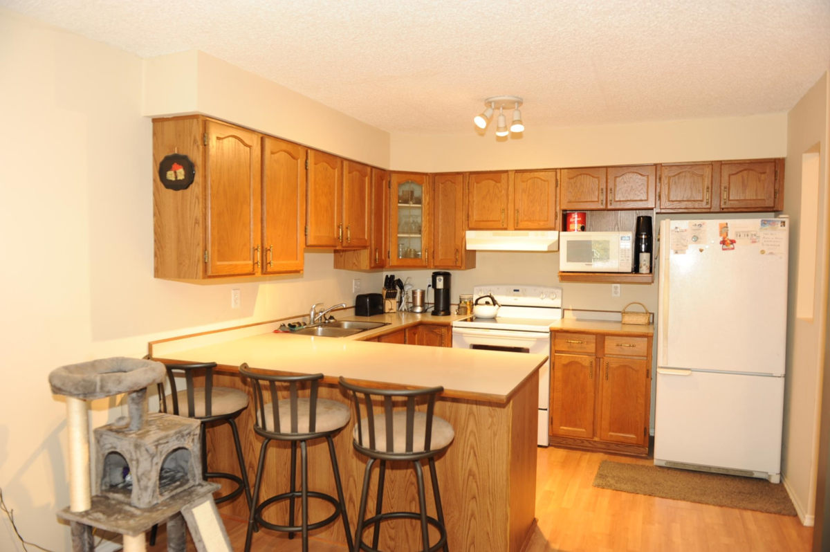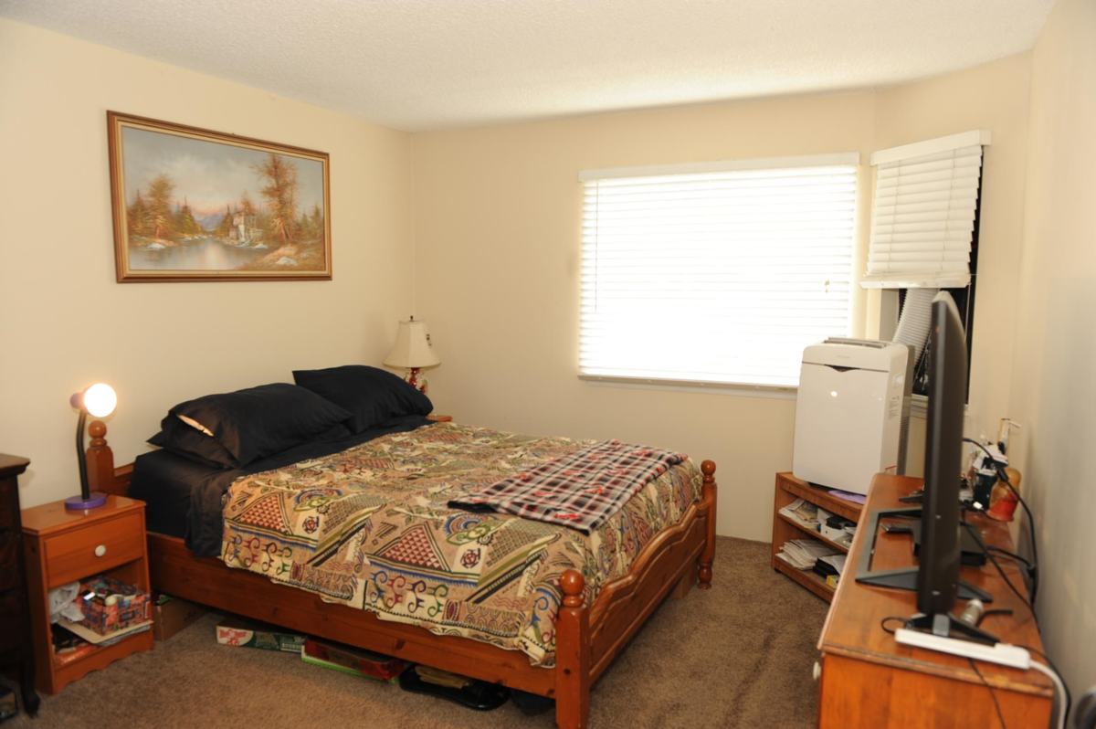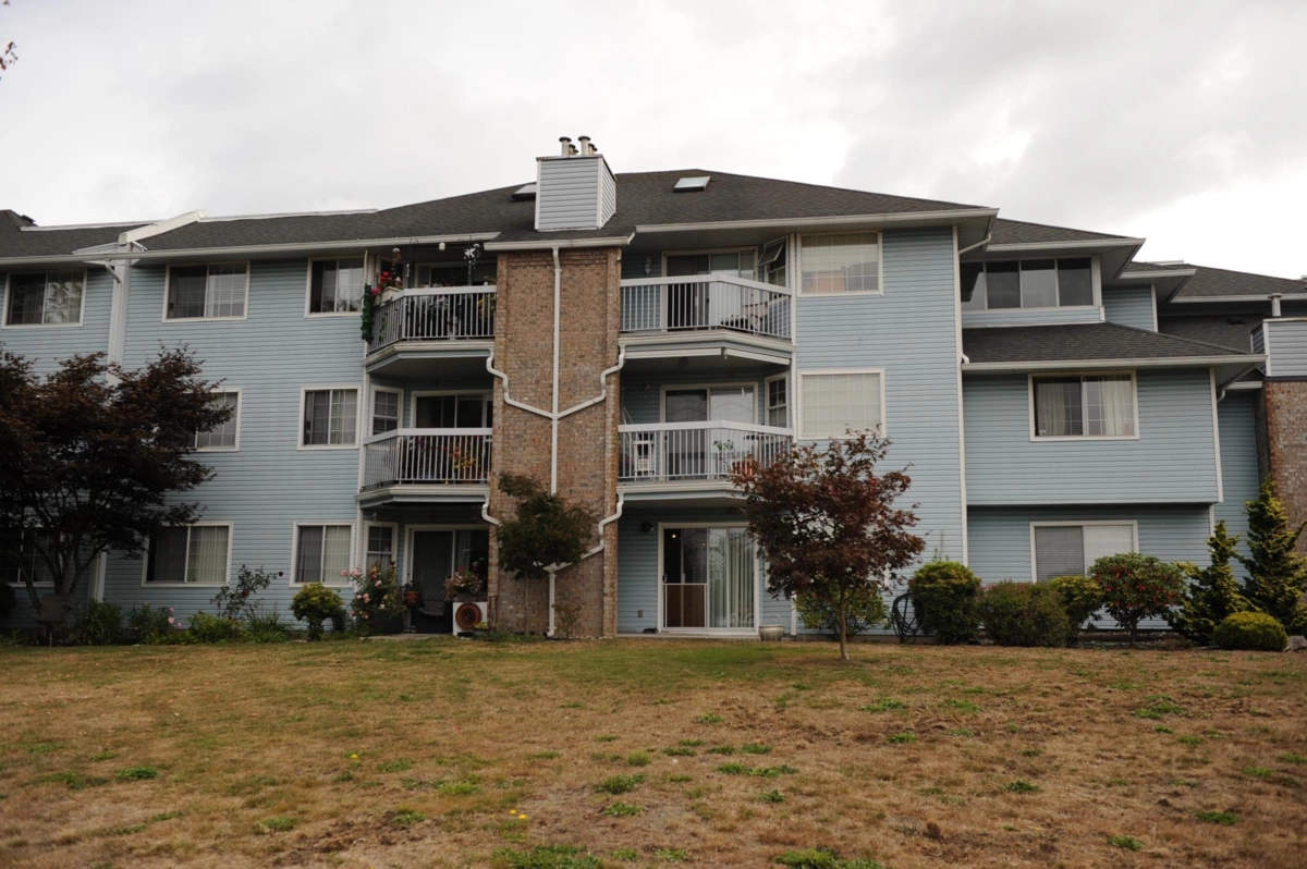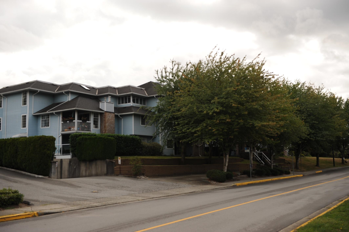 Fraser view at Riverside. Large 1 Bdrm, 1 Bathrm ground level unit with a view of Fraser River. Kitchen with oak cabinets, dining rm, living rm with gas fireplace & sliding door to patio with view of the Fraser River, adult 55+ complex. Unit has its own laundry, storage room which could be used as a den. Pet friendly, guest suite and activity room for parties. Close to shopping, West Coast Express, transportation & across from Brickwood Park & tennis courts.