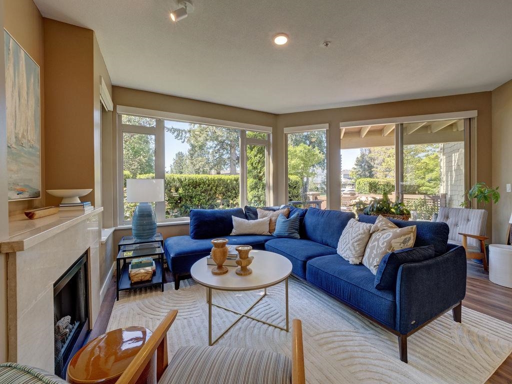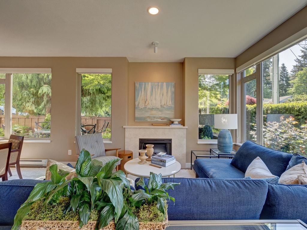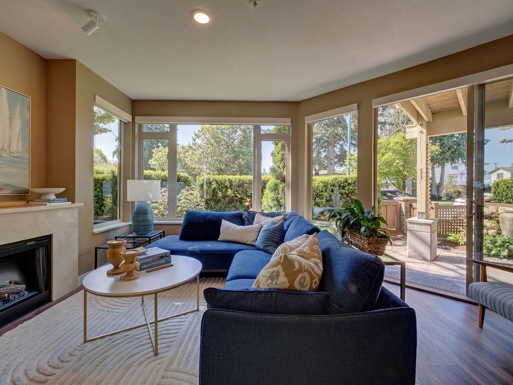 Enjoy one-level living in this beautiful ground floor corner unit, in the heart of Davis Bay. With a unique and spacious floor plan, this 2-bed, 2-bath condo combines the perfect blend of comfort, style, and seaside charm. Experience nine-foot ceilings, an updated kitchen, modern flooring, and an abundance of natural light throughout. The open-concept layout creates a seamless flow between living, dining, and kitchen spaces, and a primary suite featuring a five-piece ensuite with in-floor radiant heat. Outside, the home is complemented by an expansive, fully fenced yard with mature gardens perfect for relaxing, entertaining, or soaking up the coastal air. Steps from the ocean to stroll the scenic seawall, or watch the sunset from the iconic Davis Bay pier.